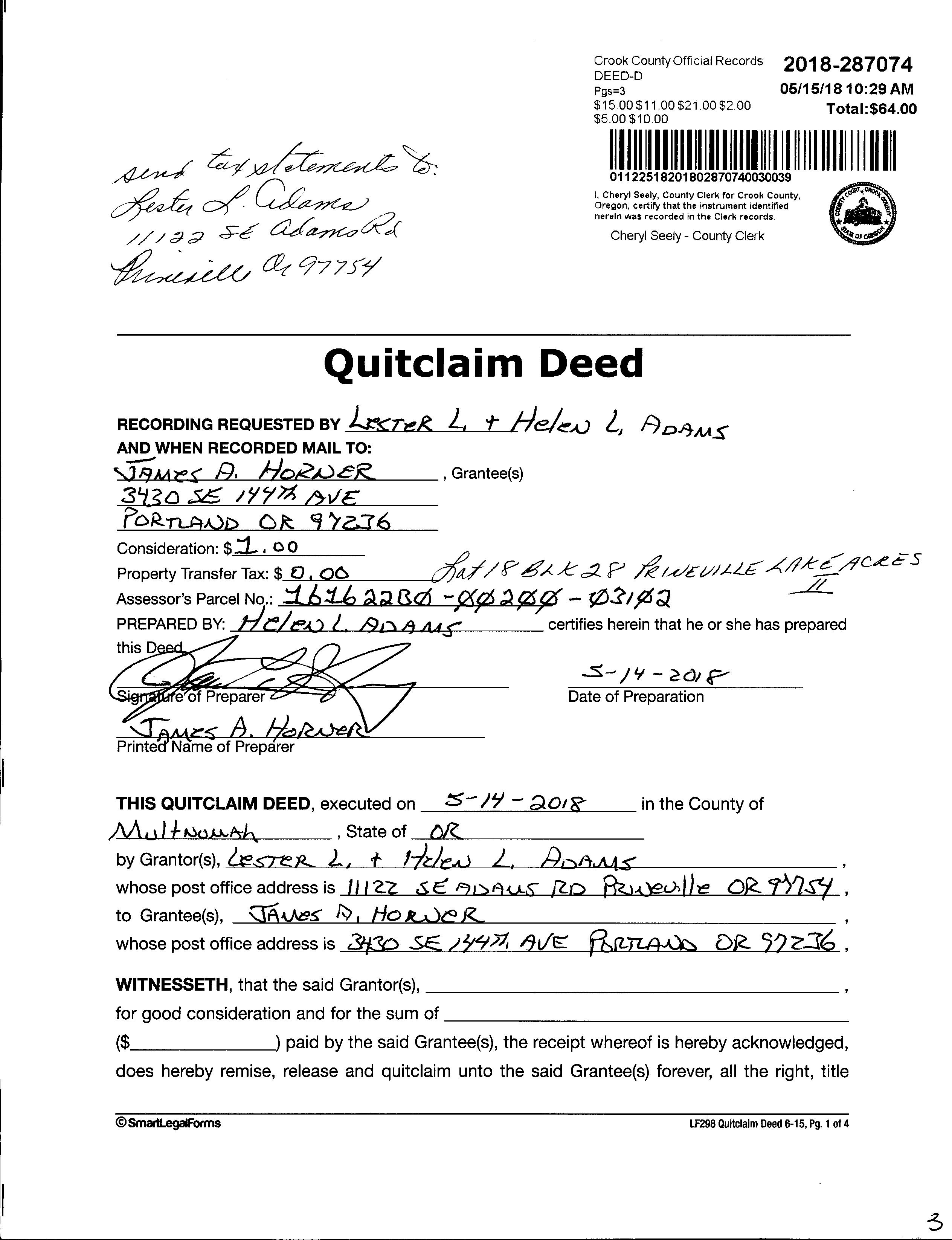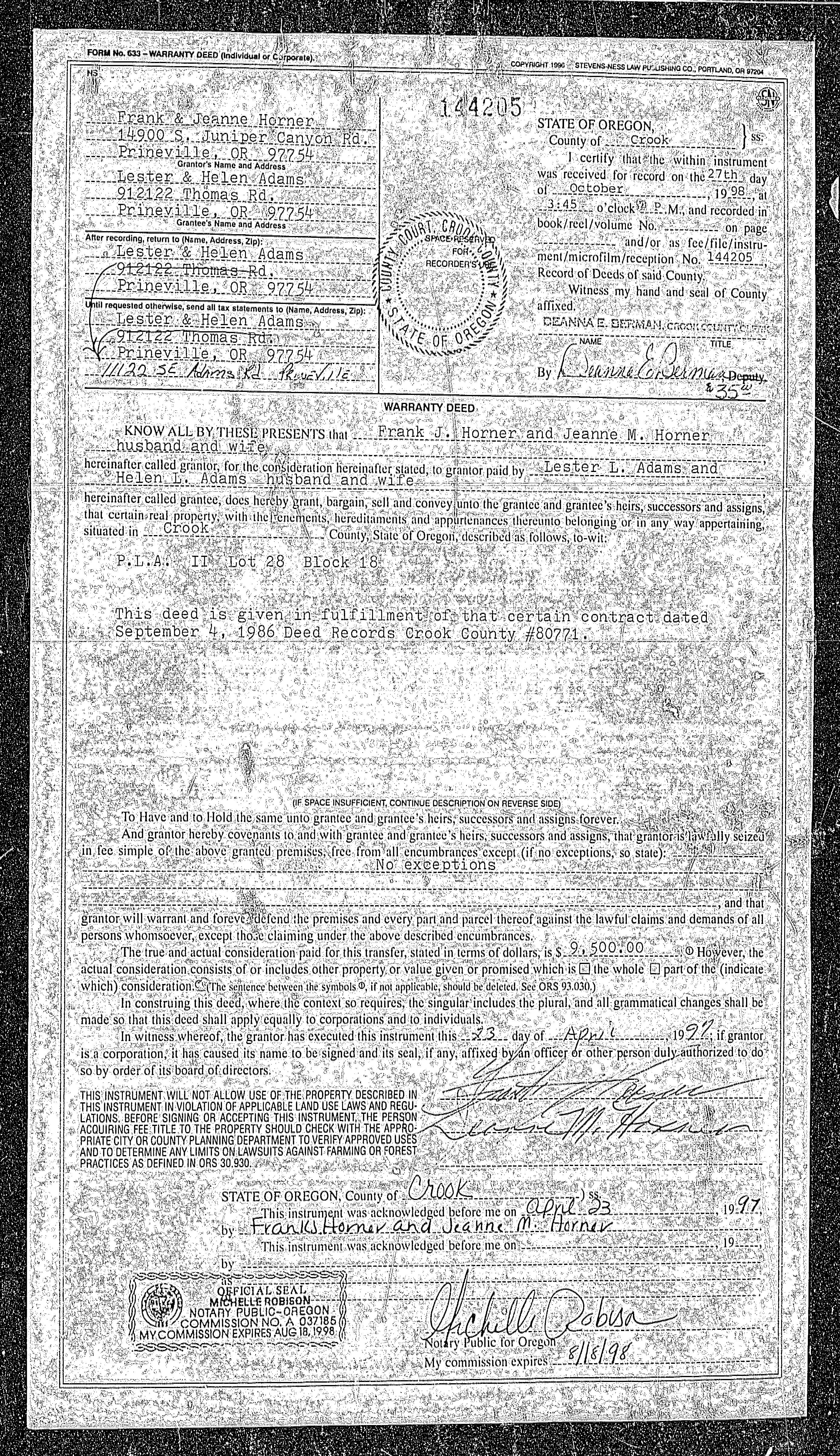 Legal:PRINEVILLELAKEACRESLot:28,Block:18,Township:16S,Range:16E,Section:22 Twn/Rng/Sec:T:16SR:16ES:22Q:NWQQ: