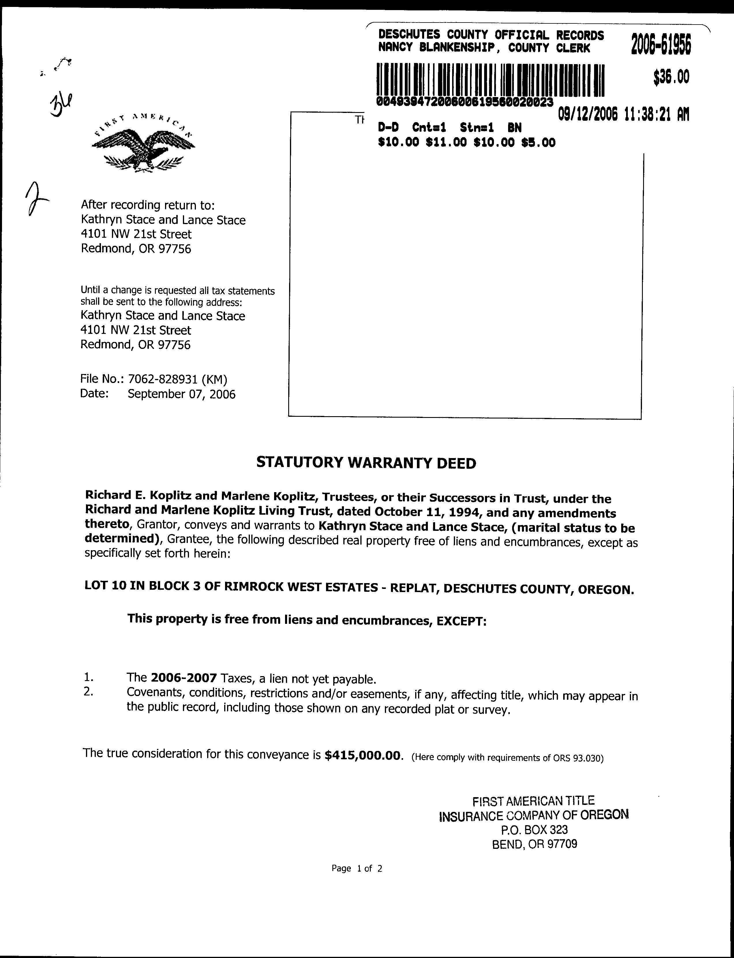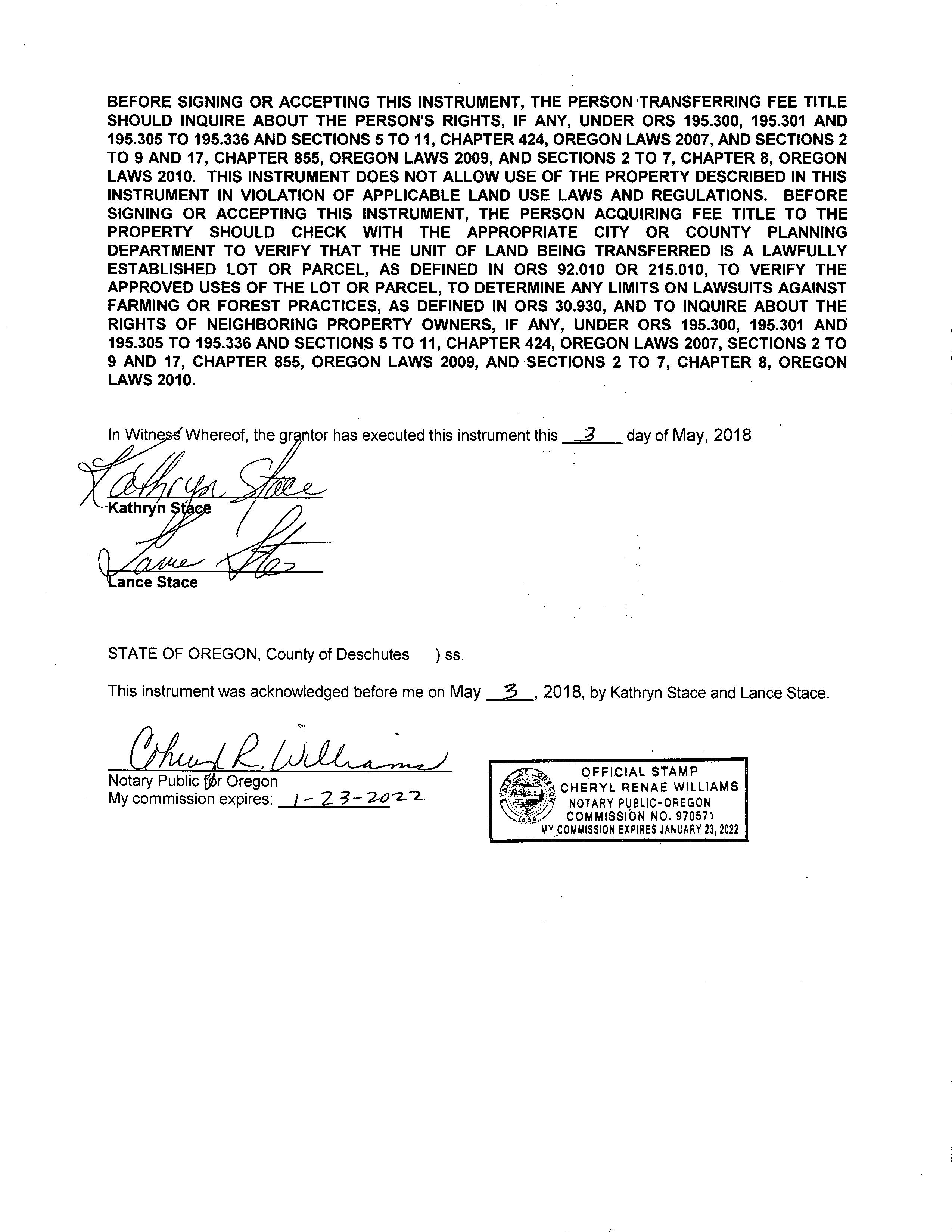Review of digital records maintained by the Deschutes County Assessor’s Office, Tax Office, Finance Office, and the Community Development Department indicates that there are no special tax, assessment or property development related notations associated with this account. However, independent verification of the presence of other Deschutes County tax, assessment, development, and additional property related considerations is recommended. Confirmation is commonly provided by title companies, real estate agents, developers, engineering and surveying firms, and other parties who are involved in property transactions or property development. In addition, County departments may be contacted directly to discuss the information.