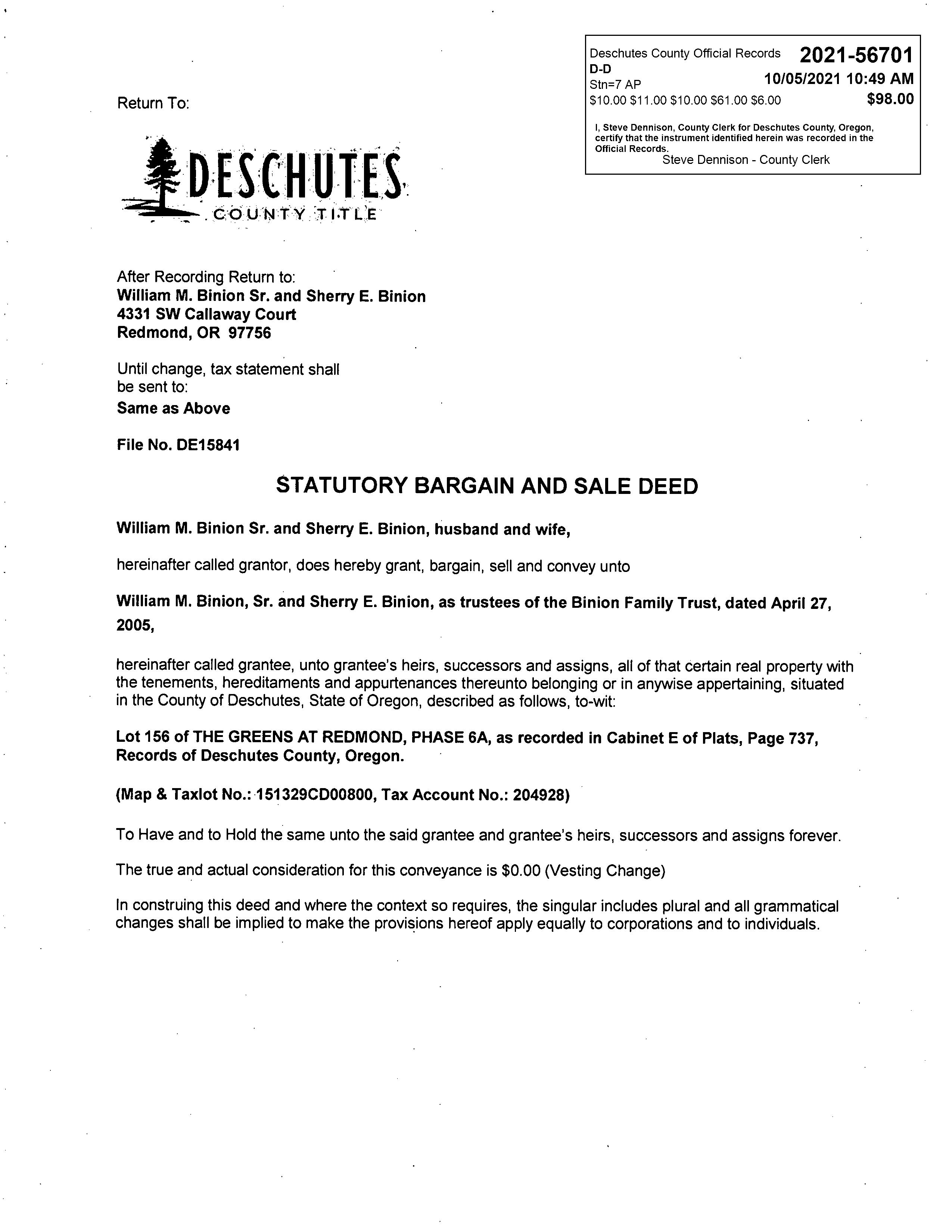 PREPAREDBY DanettaRider danettar@deschutestitle.com