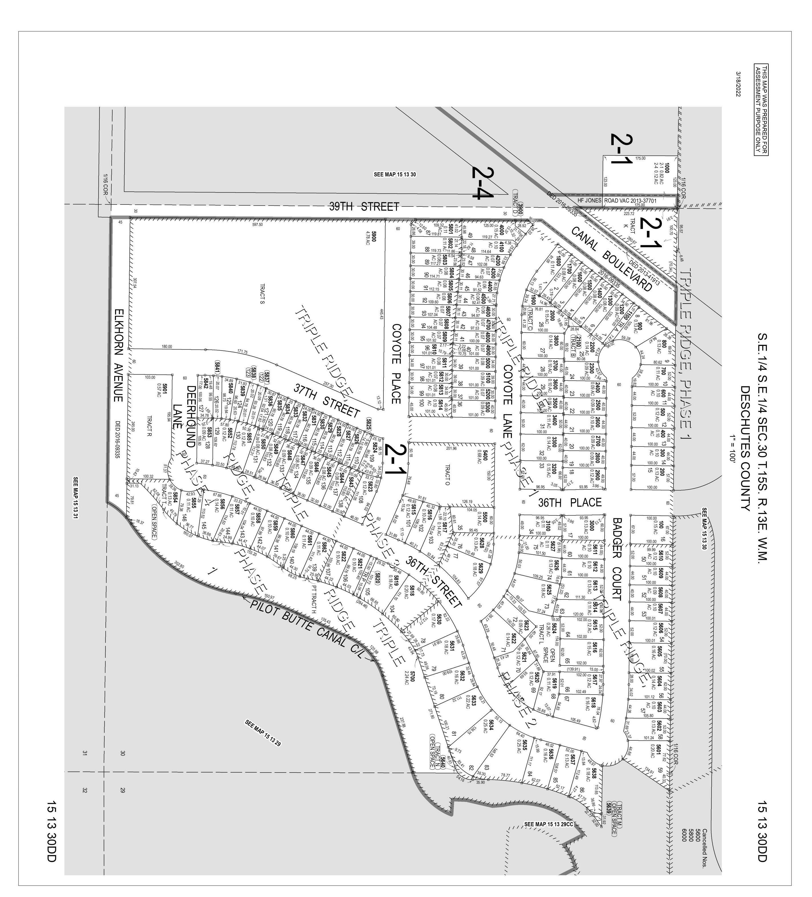 B-2-4-0 B-0-4 B-3-1 B31b C1 9 B-2-3-2 B-2-6-2 C-1-2 B-2-5 B 0 2 C-1-5 B-3-1a Pbc 11-1 B 1 1 B 0-1 B-2-4-1 2 0B 3 B245 B 2 6 Pbc-14 Pbc-11-3 B 24 1 B2410 B-2-3-1 Pbc-13 B 2 4 Na B 2-5-1 Pb c 1 12 a Pb2:Pbc18 C 2 1 Pb2:C-1 P b 2: B3 C-1 Pb2:C-2-1 B 243 B-2-4-2 Pbc 12 Pbc 11 2 C Lat B3 Pbc 14 B 1 B-2 BLat Pilot Butte Canal Water Course Map 44 8 5 SW 3 6 TH ST BEND LA P INE SISTER S RED MON D SUN RIVE R ¬ « 20 ¬ « 97 ¬ 126 ¬ 20 ¬ 20 ¬ « 97 Map D ata is deemed reliable but not guaranteed Deschutes County Title accepts no responsibility for accuracy 0 1,200 2,400 600 Fee t I 151330-DD -05815