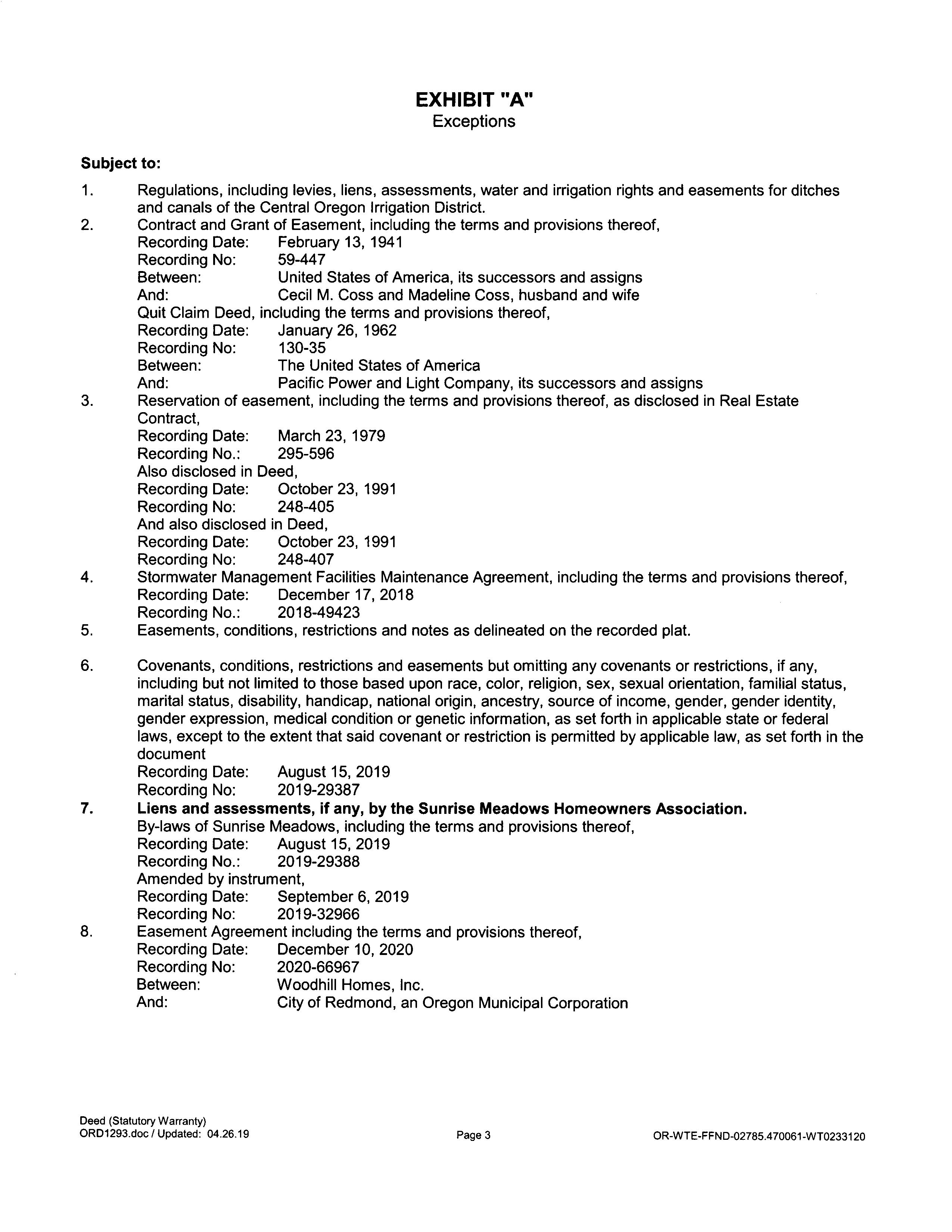 Note: Until a full Title search has been done, there may be updated CC&R’s.