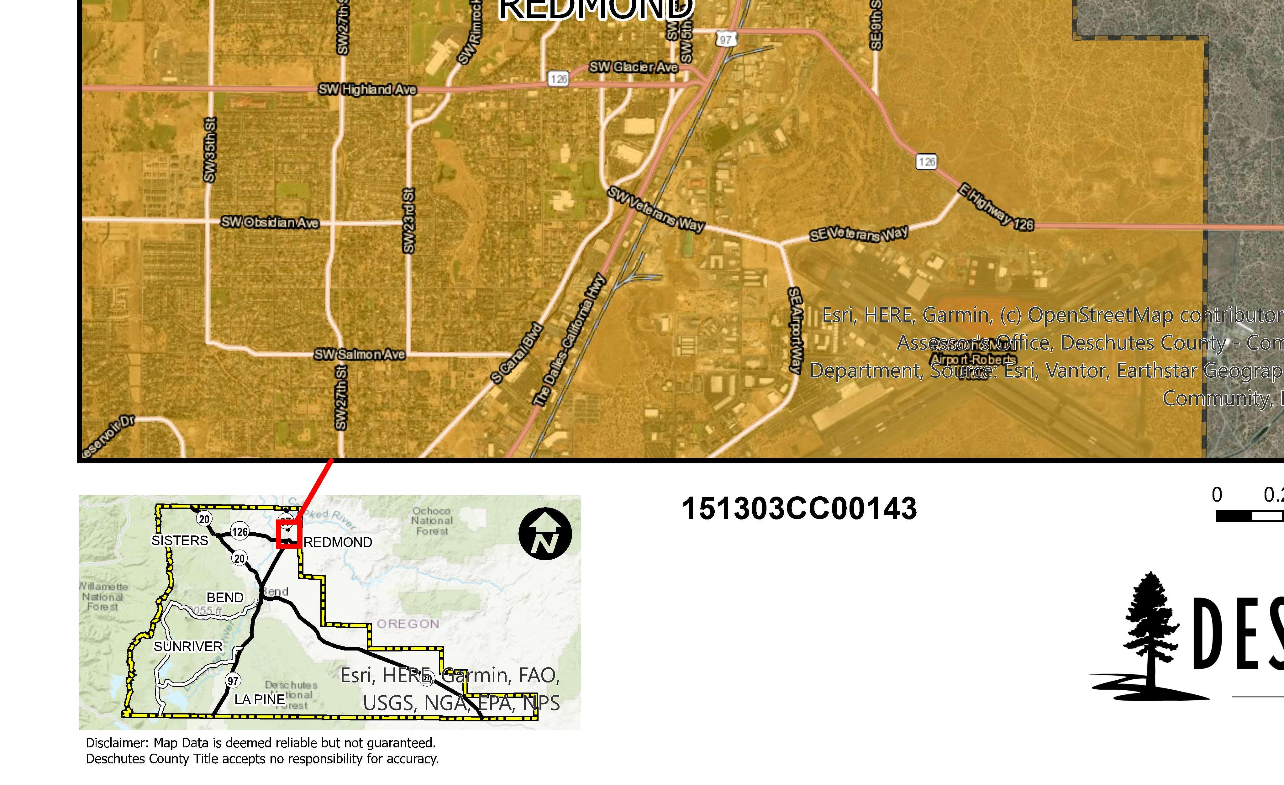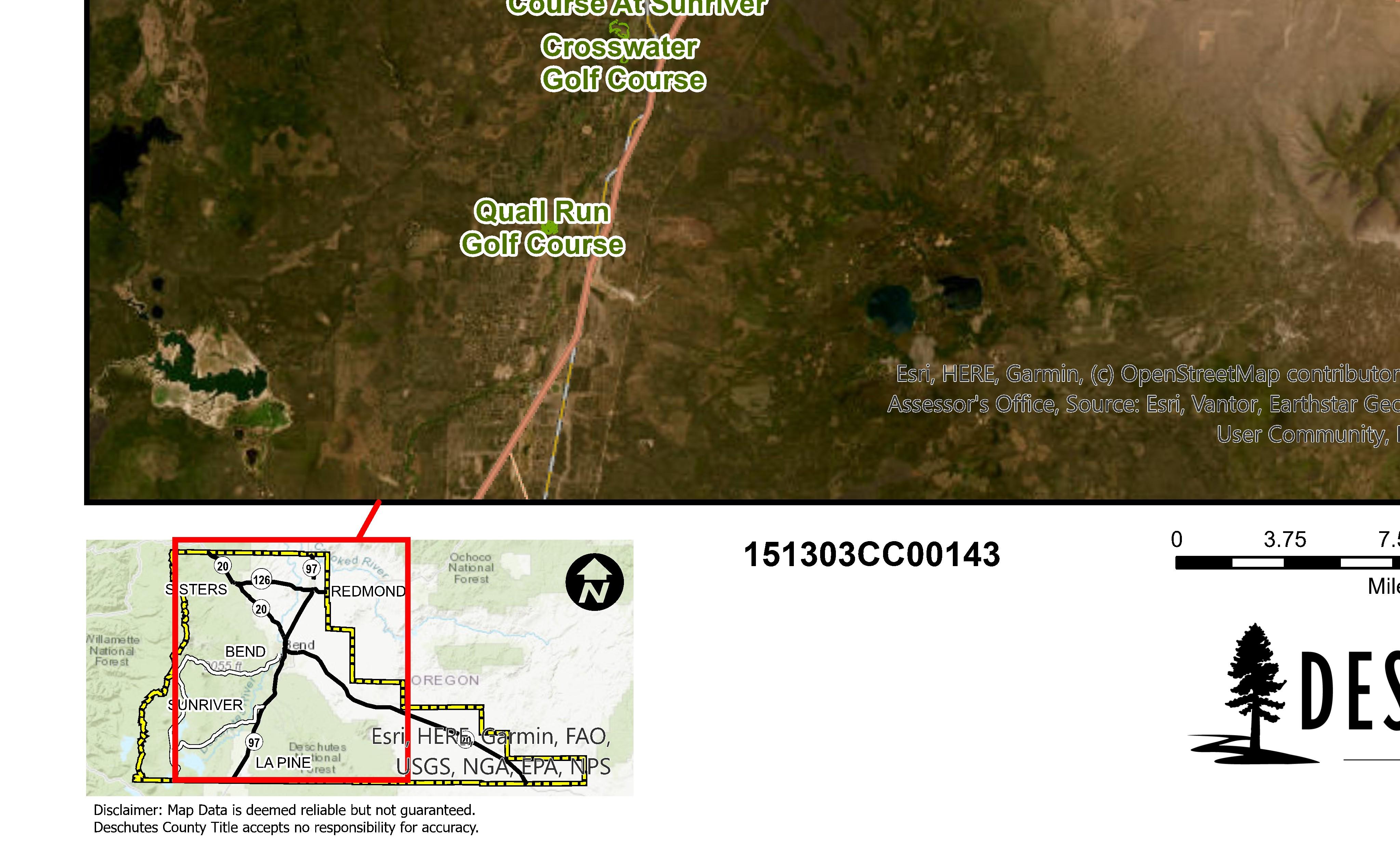 The information and maps presented in this report are provided for your convenience. Every reasonable effort has been made to assure the accuracy of the data and associated maps. Deschutes County makes no warranty, representation or guarantee as to the content, sequence, accuracy, timeliness or completeness of any of the data provided herein. Deschutes County explicitly disclaims any representations and warranties, including, without limitation, the implied warranties of merchantability and fitness for a particular purpose. Deschutes County shall assume no liability for any errors, omissions, or inaccuracies in the information provided regardless of how caused. Deschutes County assumes no liability for any decisions made or actions taken or not taken by the user of this information or data furnished hereunder.