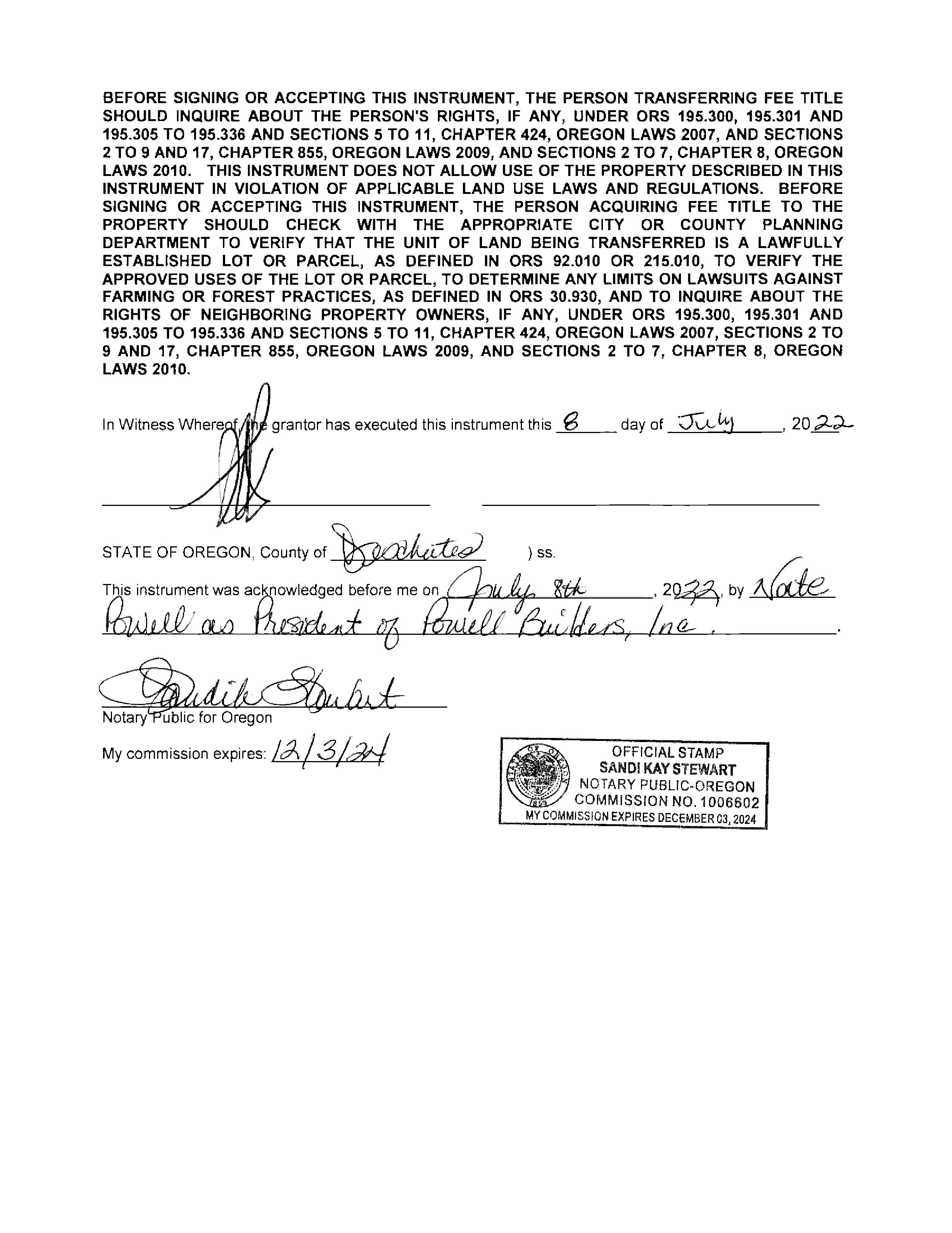 10/30/2008 LAF GC EXPIRATION LETTER RETURNED BY MAIL, CALLED OWNER, LEFT MESS. FOR CURRENT ADDRESS. REMAILED TO FORWARDED ADDRESS: 4800 NW 57TH ST., REDMOND, OR. 97701