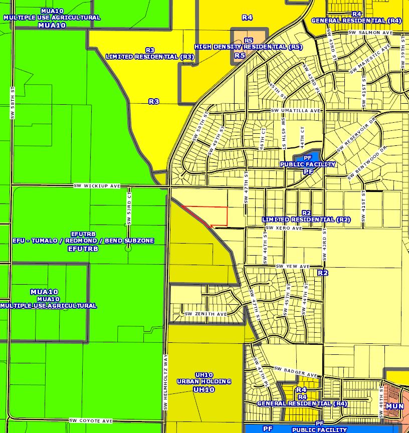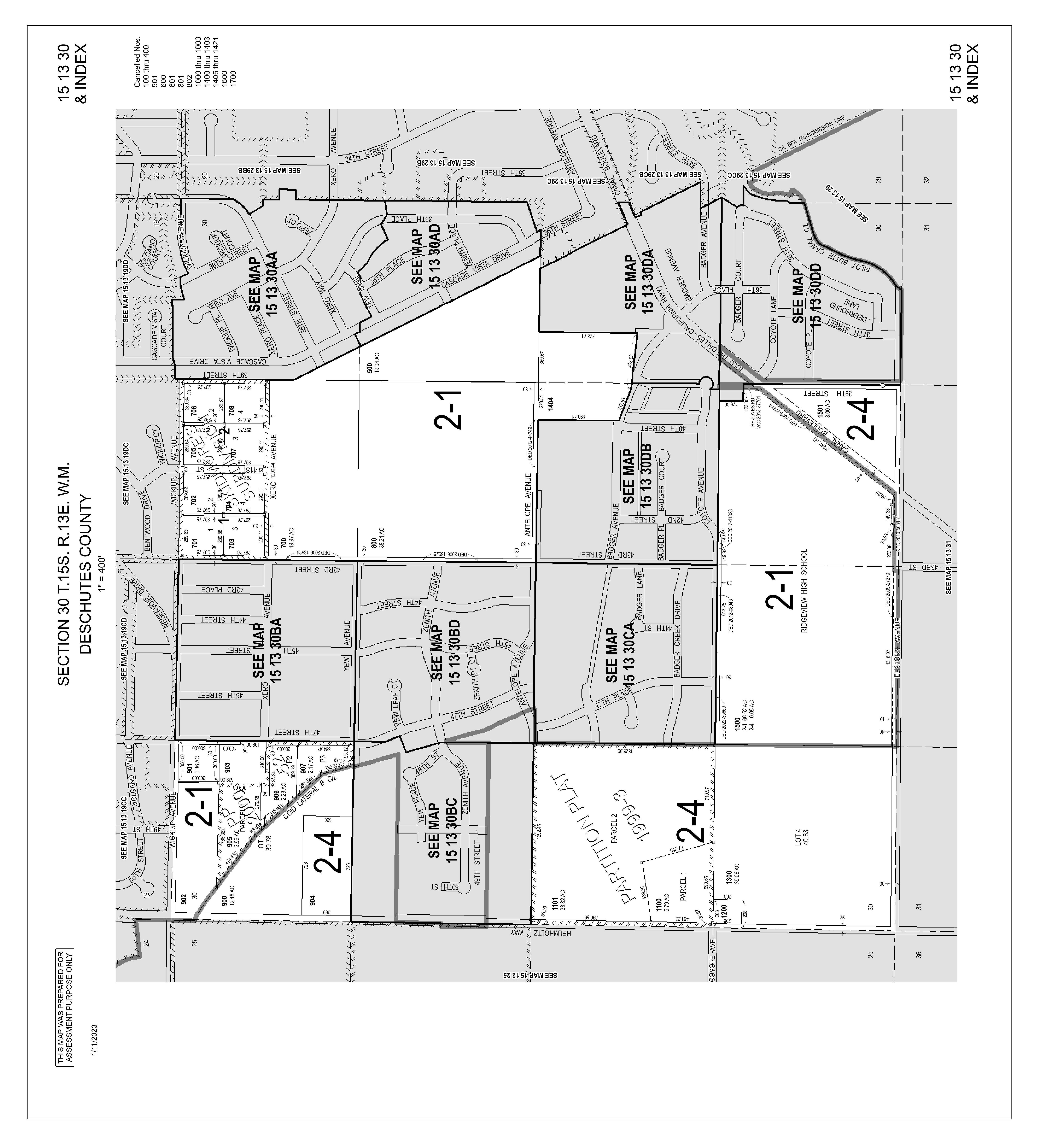 Review of digital records maintained by the Deschutes County Assessor’s Office, Tax Office, Finance Office, and the Community Development Department indicates that there are no special tax, assessment or property development related notations associated with this account. However, independent verification of the presence of other Deschutes County tax, assessment, development, and additional property related considerations is recommended. Confirmation is commonly provided by title companies, real estate agents, developers, engineering and surveying firms, and other parties who are involved in property transactions or property development. In addition, County departments may be contacted directly to discuss the information.