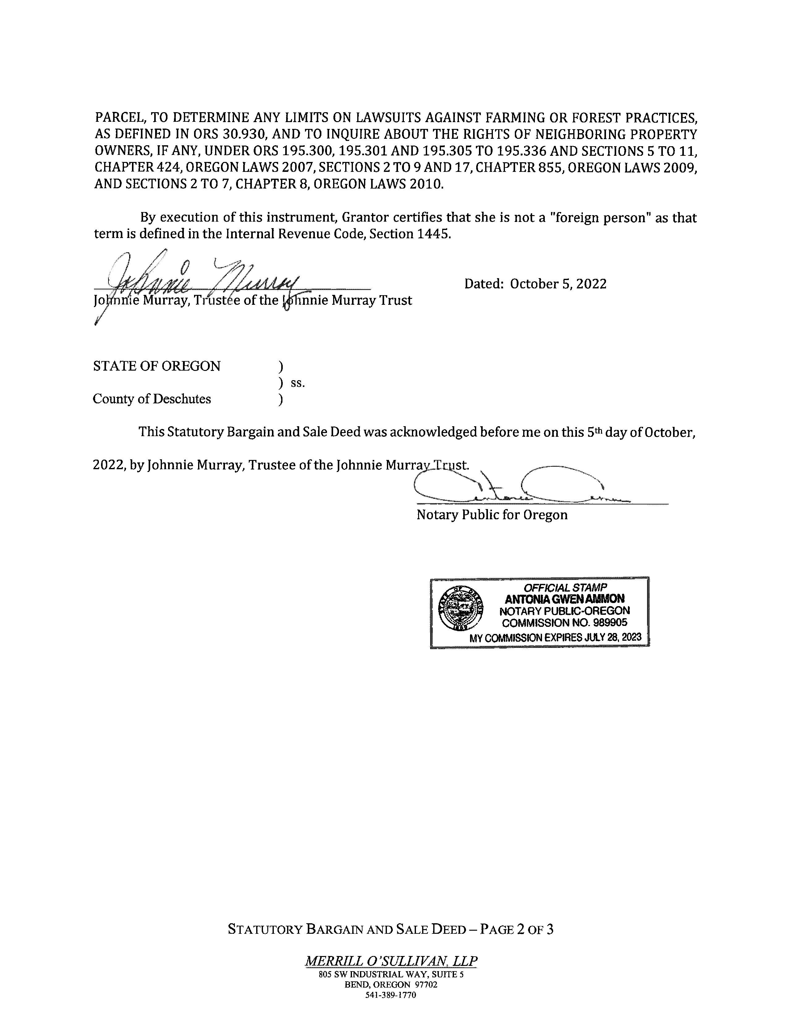 JOHNNIE MURRAY FAMILY TRUST 3632 SW ZENITH PL REDMOND, OR 97756 Ownership