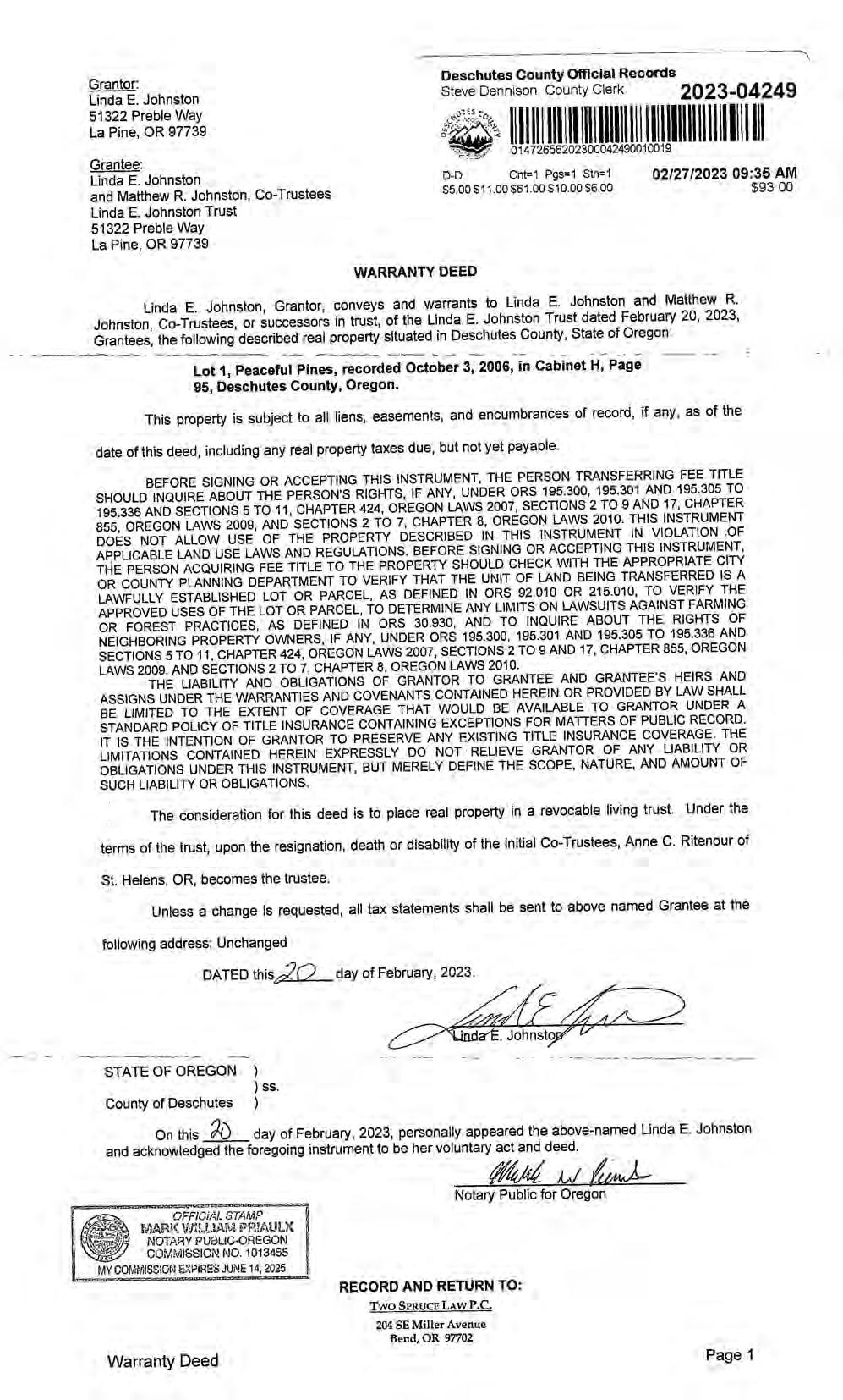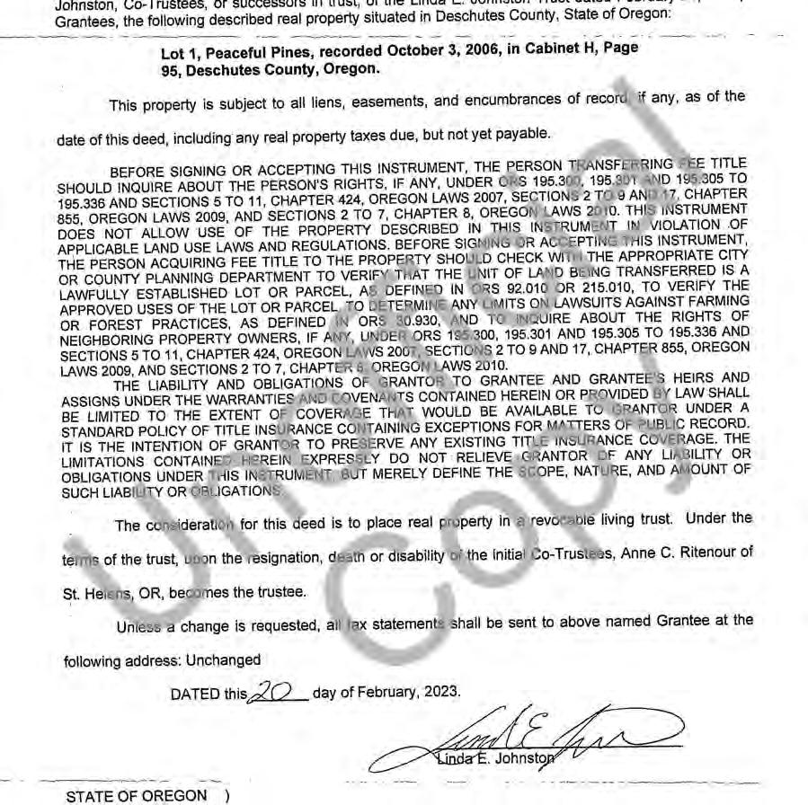 ClickonhyperlinkbelowtoviewCC&R’s PeacefulPines-CC&R's: https://issuu.com/info-deschutestitle/docs/peaceful_pines__cc_r_s?fr=xKAE9_zMzMw