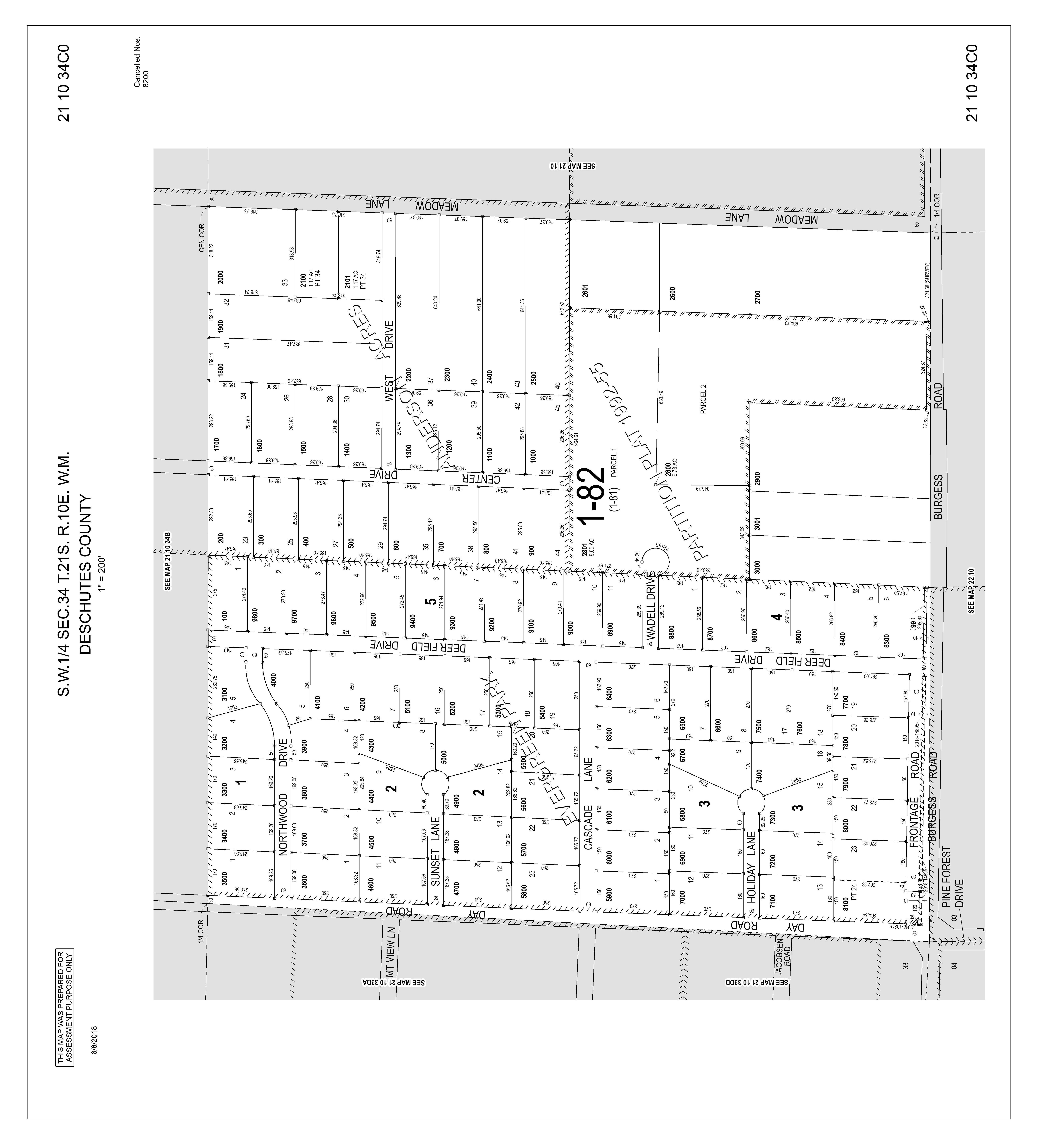 Review of digital records maintained by the Deschutes County Assessor’s Office, Tax Office, Finance Office, and the Community Development Department indicates that there are County tax, assessment, or property development related notations associated with this account and that have been identified above. Independent verification of the presence of additional Deschutes County tax, assessment, development, and other property related considerations is recommended. Confirmation is commonly provided by title companies, real estate agents, developers, engineering and surveying firms, and other parties who are involved in property transactions or property development. In addition, County departments may be contacted directly to discuss the information.