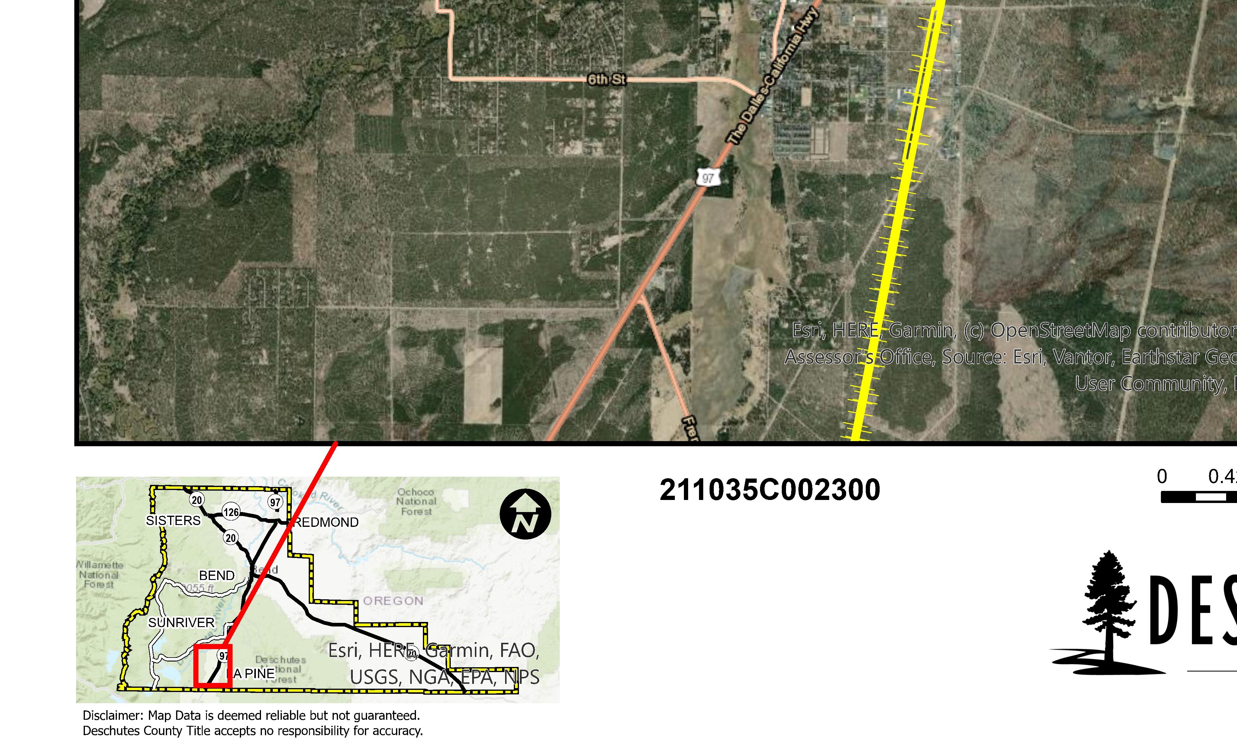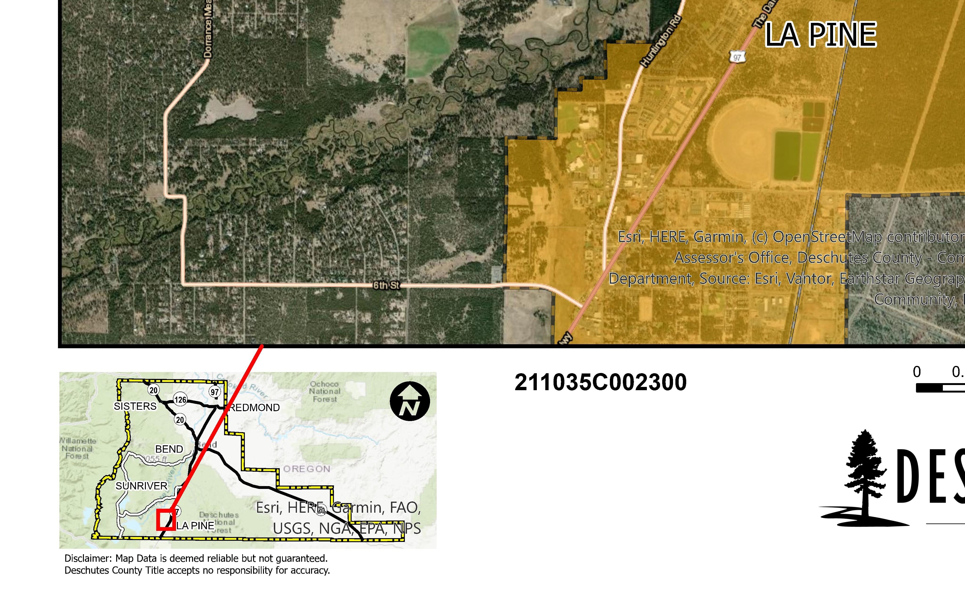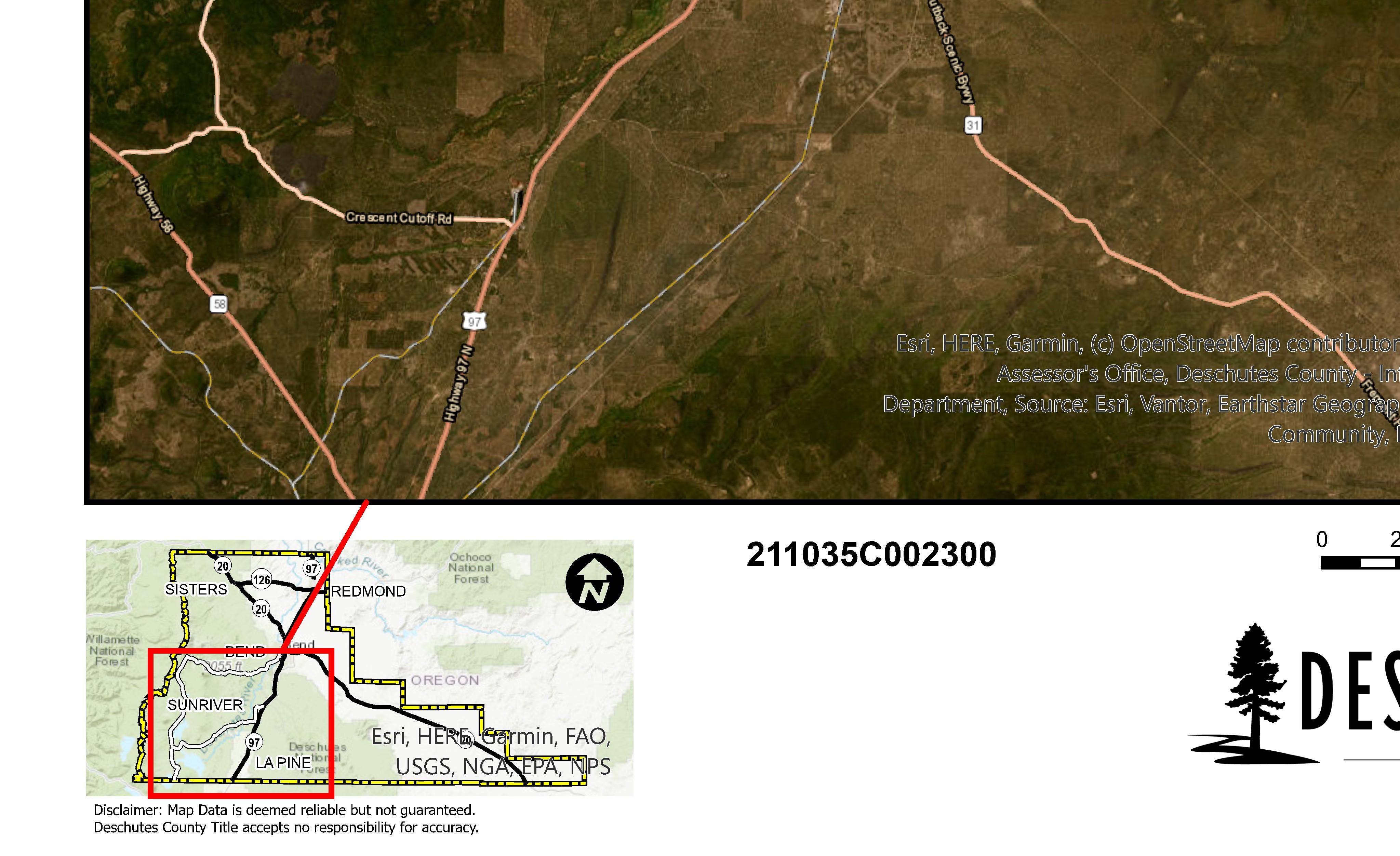 The information and maps presented in this report are provided for your convenience. Every reasonable effort has been made to assure the accuracy of the data and associated maps. Deschutes County makes no warranty, representation or guarantee as to the content, sequence, accuracy, timeliness or completeness of any of the data provided herein. Deschutes County explicitly disclaims any representations and warranties, including, without limitation, the implied warranties of merchantability and fitness for a particular purpose. Deschutes County shall assume no liability for any errors, omissions, or inaccuracies in the information provided regardless of how caused. Deschutes County assumes no liability for any decisions made or actions taken or not taken by the user of this information or data furnished hereunder.