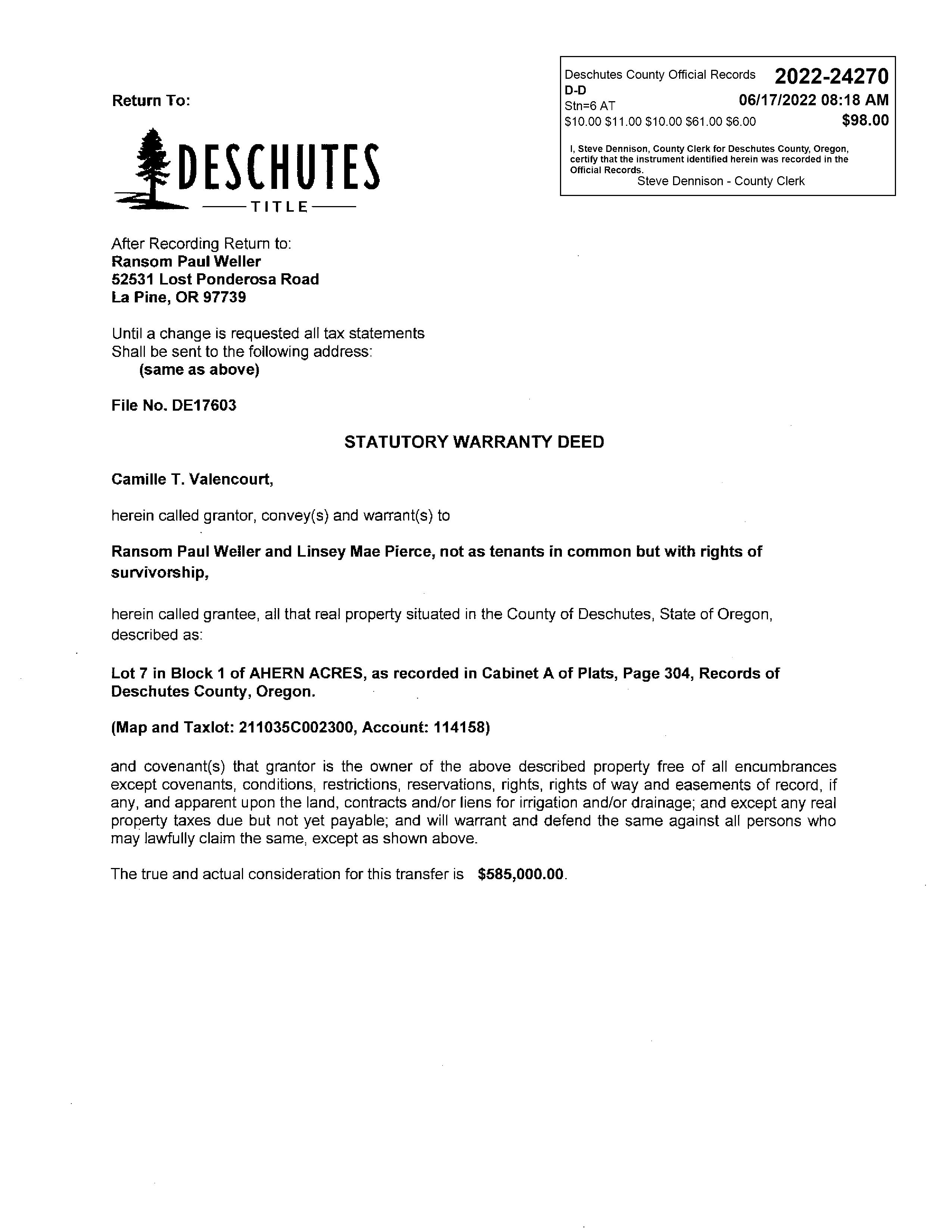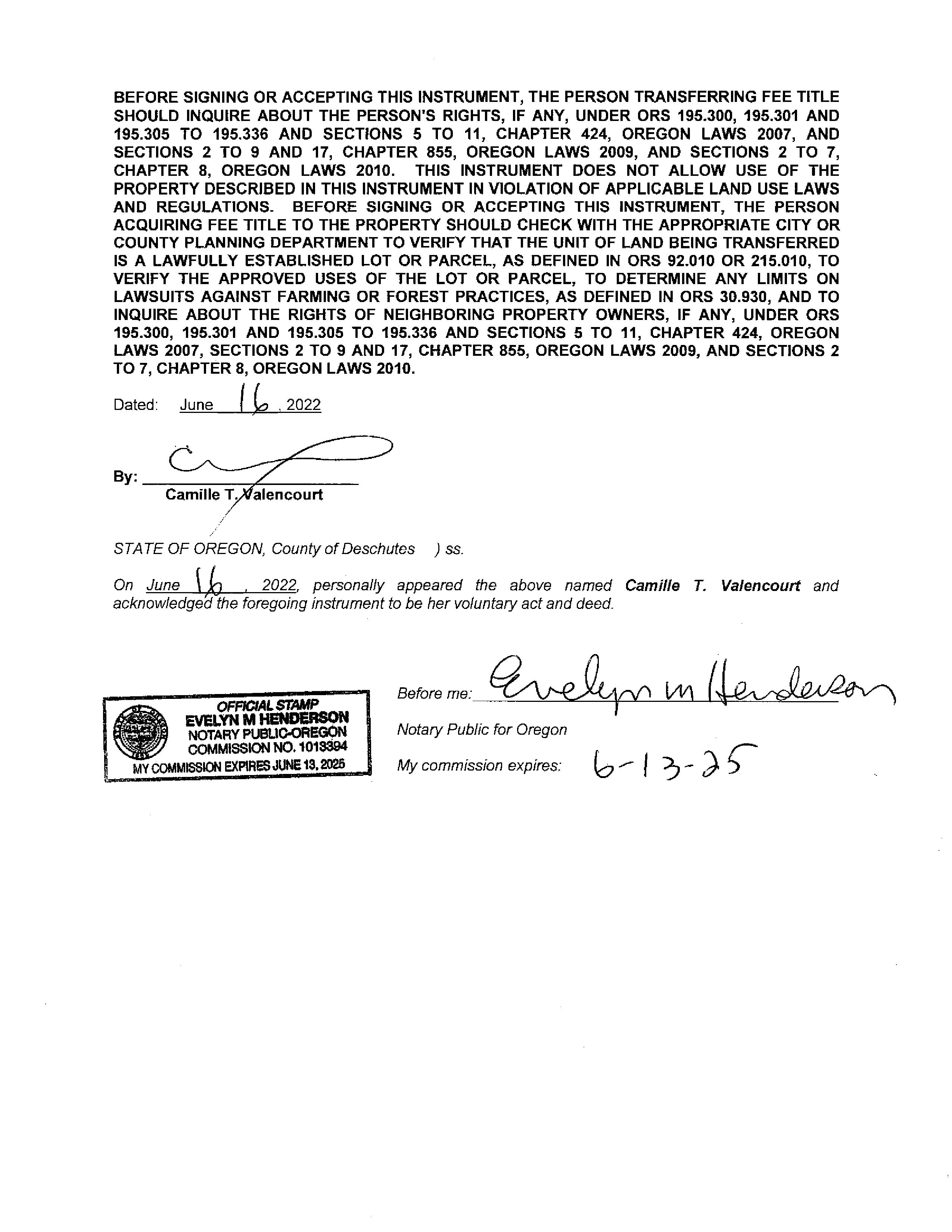 Review of digital records maintained by the Deschutes County Assessor’s Office, Tax Office, Finance Office, and the Community Development Department indicates that there are County tax, assessment, or property development related notations associated with this account and that have been identified above. Independent verification of the presence of additional Deschutes County tax, assessment, development, and other property related considerations is recommended. Confirmation is commonly provided by title companies, real estate agents, developers, engineering and surveying firms, and other parties who are involved in property transactions or property development. In addition, County departments may be contacted directly to discuss the information.