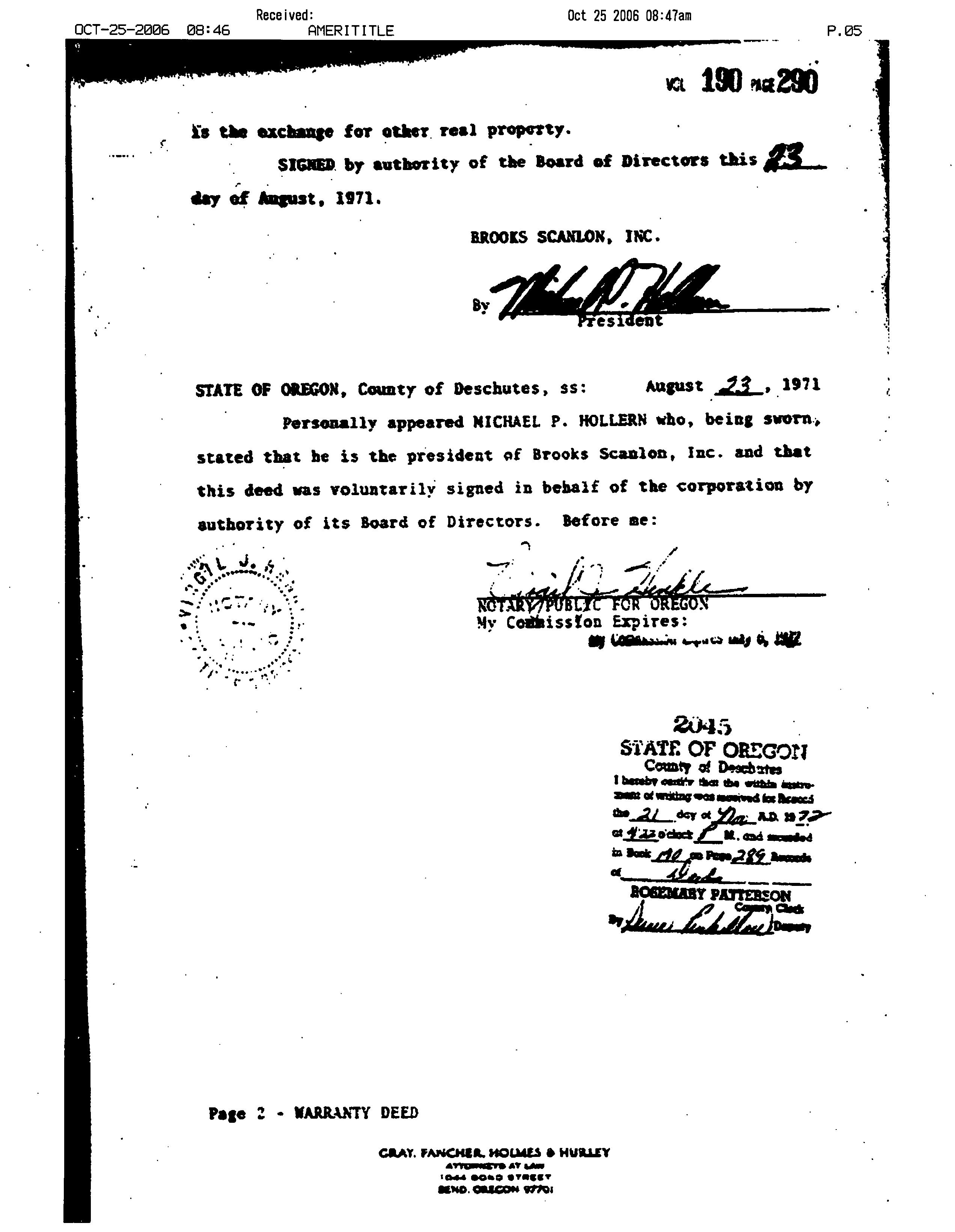 Personally appeared before me the above-named Stephen E. Thompson and acknowledged the foregoing instrument to be his voluntary act and deed. Before me this day of , 2008. OF ECIALSEAL EARLY NOTARY 3iJ3LIC- OREGON co.;;;;. r ) N NO. 394753 MY COMMIS IO , > , JULY 11, 2009