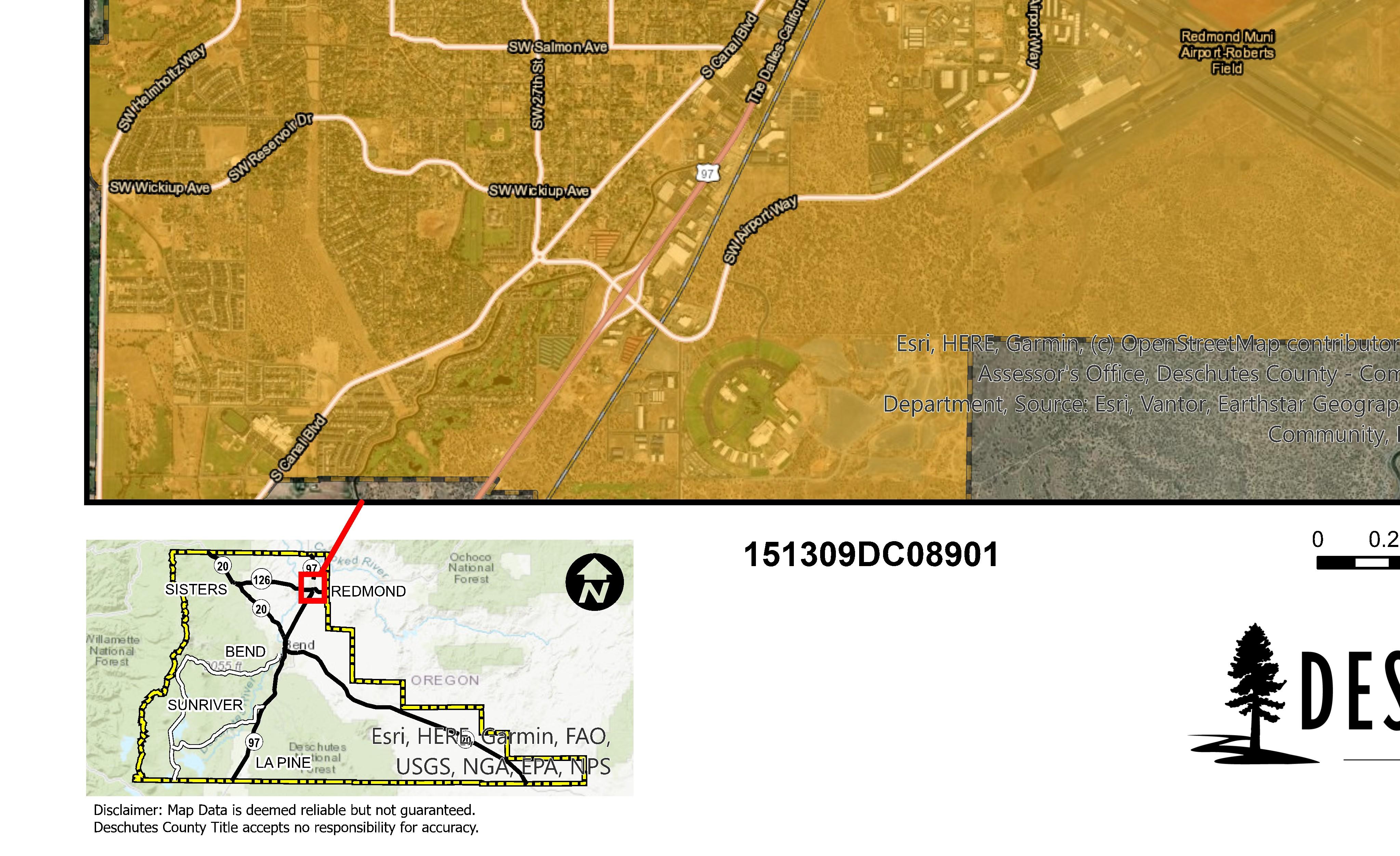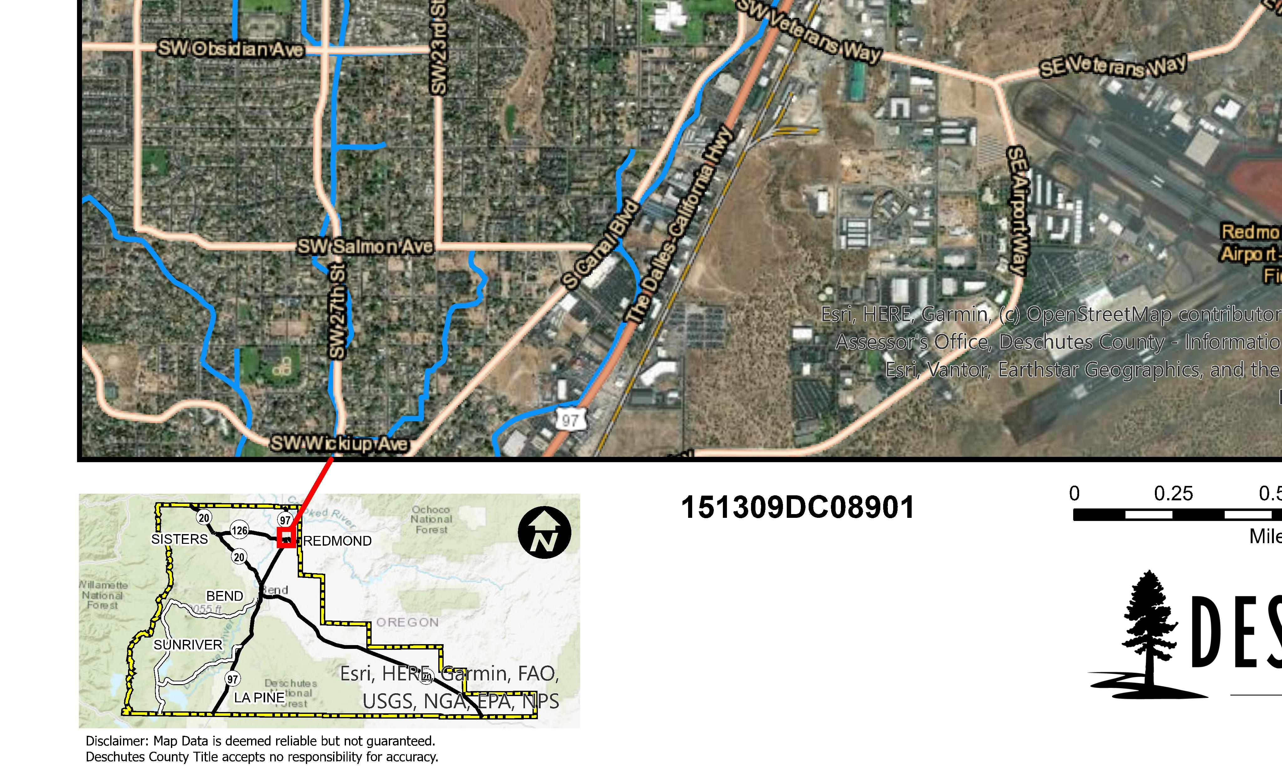 The information and maps presented in this report are provided for your convenience. Every reasonable effort has been made to assure the accuracy of the data and associated maps. Deschutes County makes no warranty, representation or guarantee as to the content, sequence, accuracy, timeliness or completeness of any of the data provided herein. Deschutes County explicitly disclaims any representations and warranties, including, without limitation, the implied warranties of merchantability and fitness for a particular purpose. Deschutes County shall assume no liability for any errors, omissions, or inaccuracies in the information provided regardless of how caused. Deschutes County assumes no liability for any decisions made or actions taken or not taken by the user of this information or data furnished hereunder.