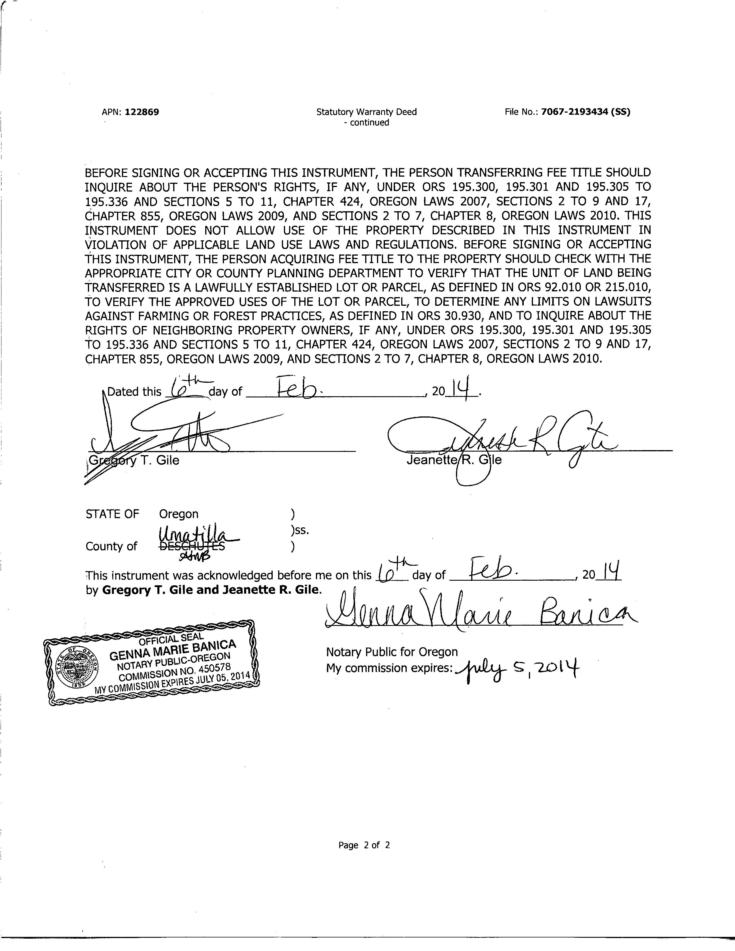 GILE,GREGORY T & JEANETTE R