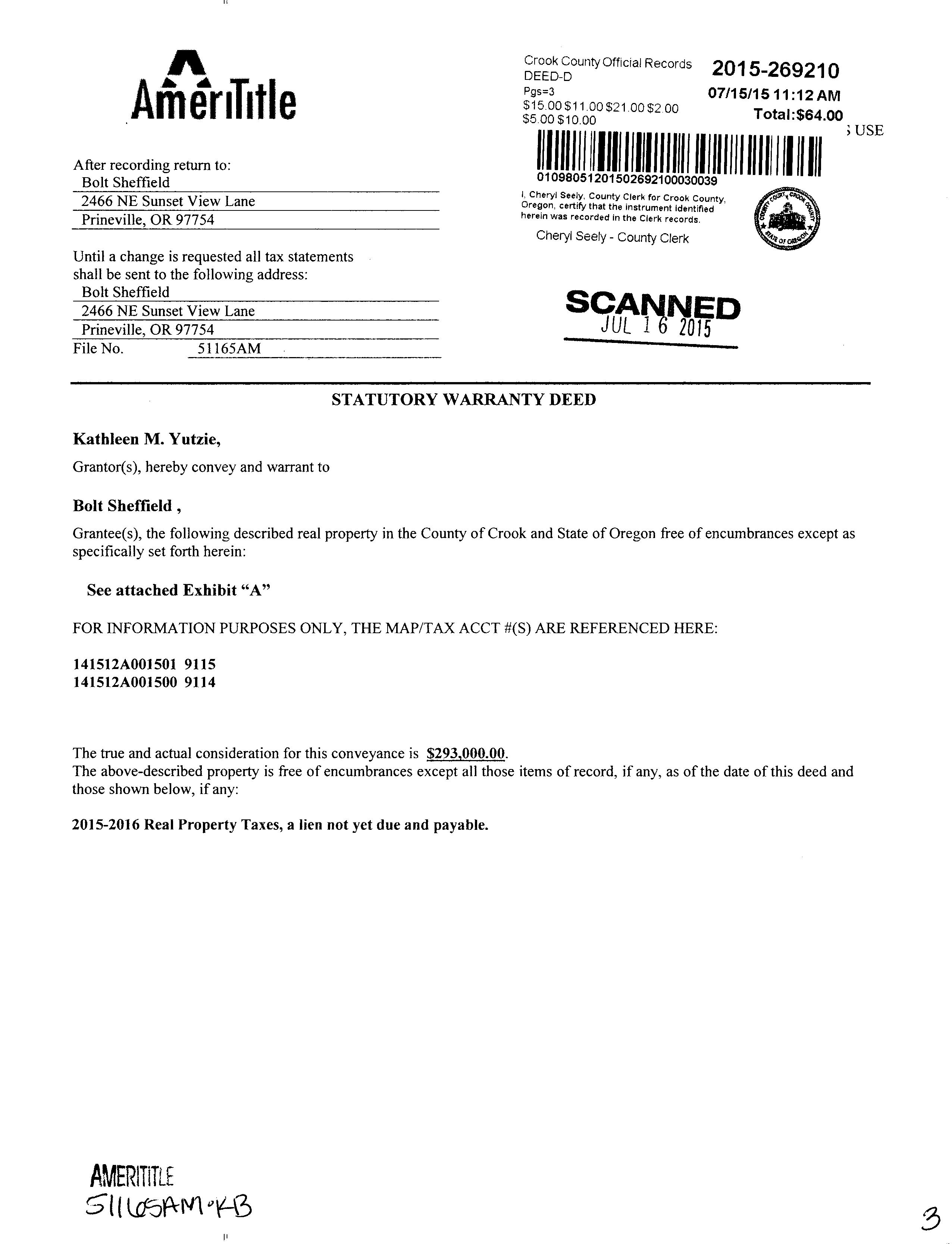 Deschutes County Title has provided this information as a courtesy and assumes no liability for the accuracy of the data and does not warranty the fitness of this product for any particular purpose. 7877 NW Country Loop|Prineville|Oregon|97754 397 SW Upper Terrace Dr Bend, Oregon 97702 Office: 541.389.2120 Fax: 541.389.2180 845 SW Veterans Way Redmond, Oregon 97756 Office: 541.527.1274 Fax: 541.527.1281 51515 Huntington Rd La Pine, Oregon 97739 Office: 541.876.6990 Fax: 541.876.2740 240 South First Street St. Helens, Oregon 97051 Office: 503.397.2587 Fax: 503.366.1708 HOMEBOOK www.deschutestitle.com
