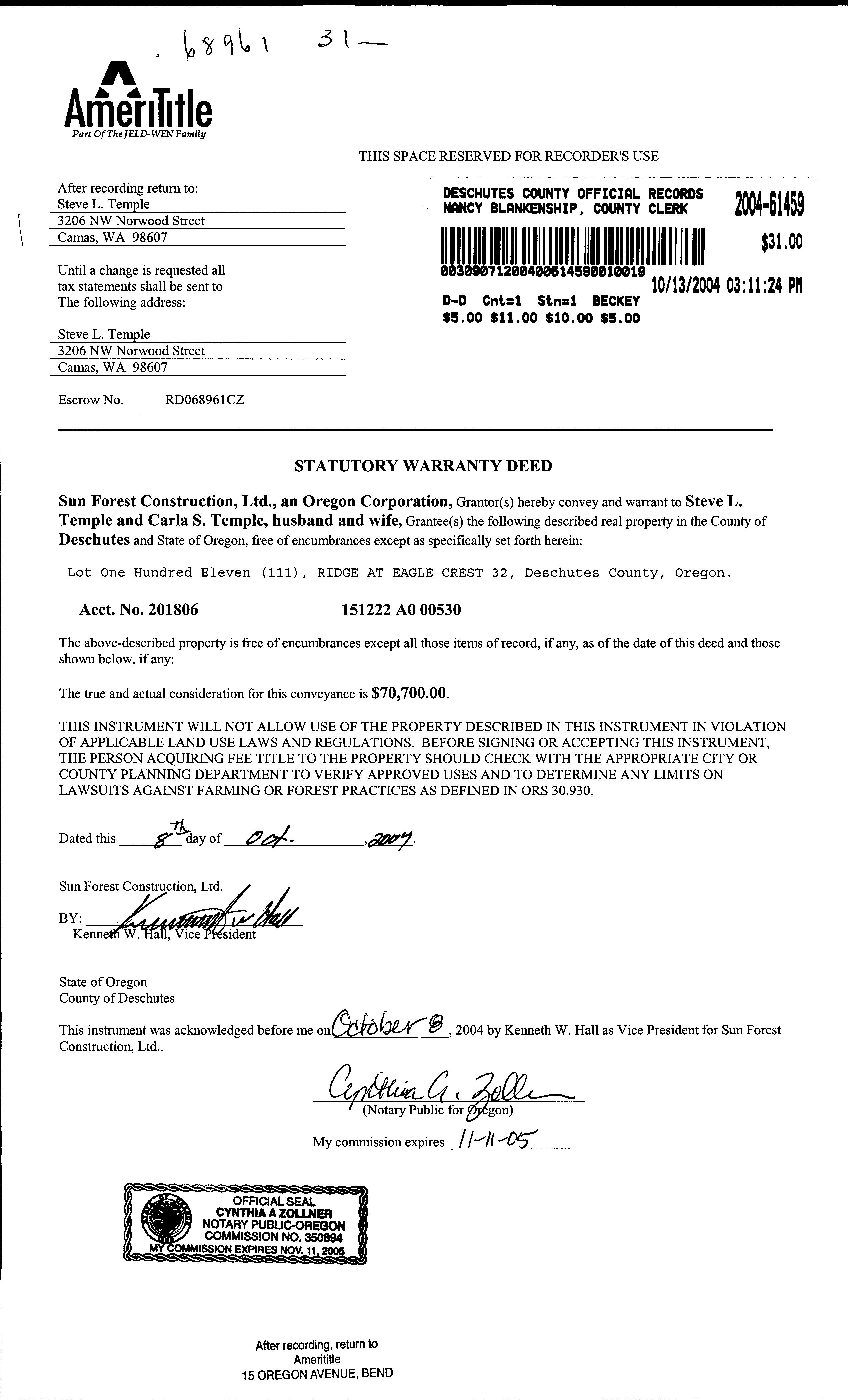 Permit Number: TEMPLE, STEVE L Permit Name: CENTRAL OREGON HEATING & COOLING INC