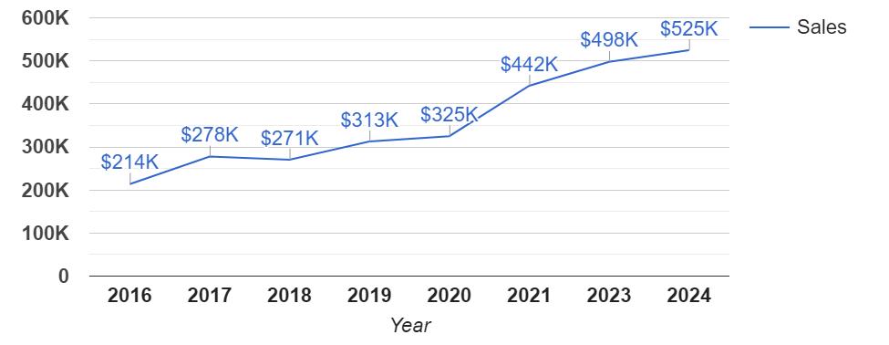AverageSalePricebyYear:01/01/2016-05/20/2024