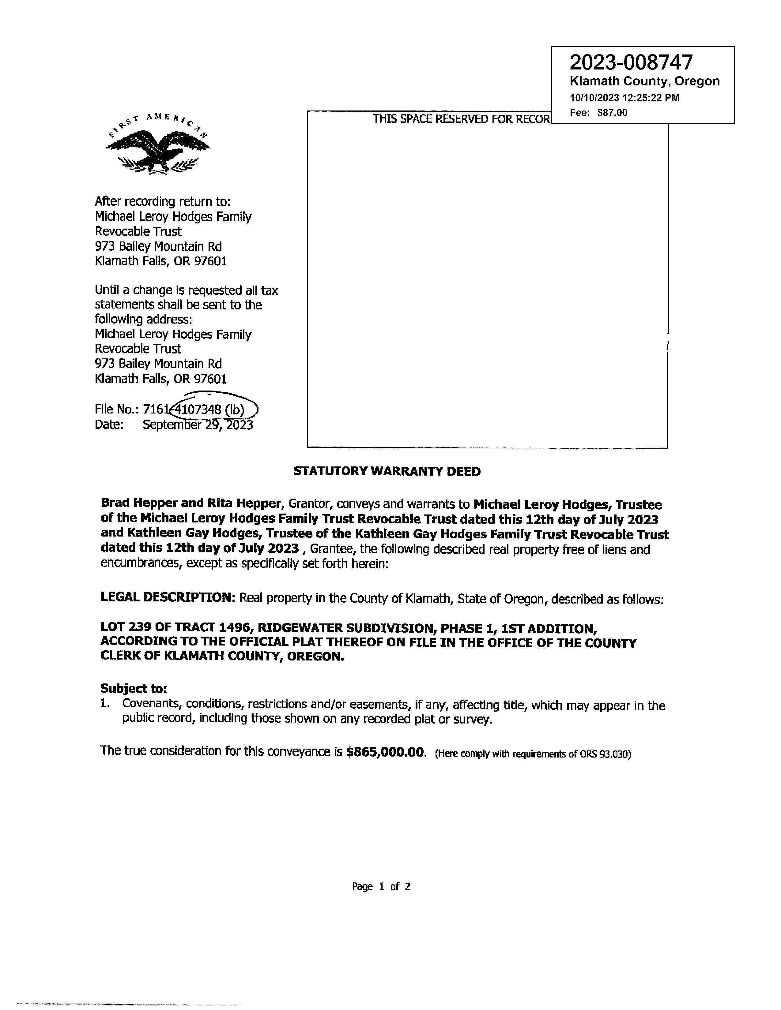 PREPAREDBY DanettaRider danettar@deschutestitle.com