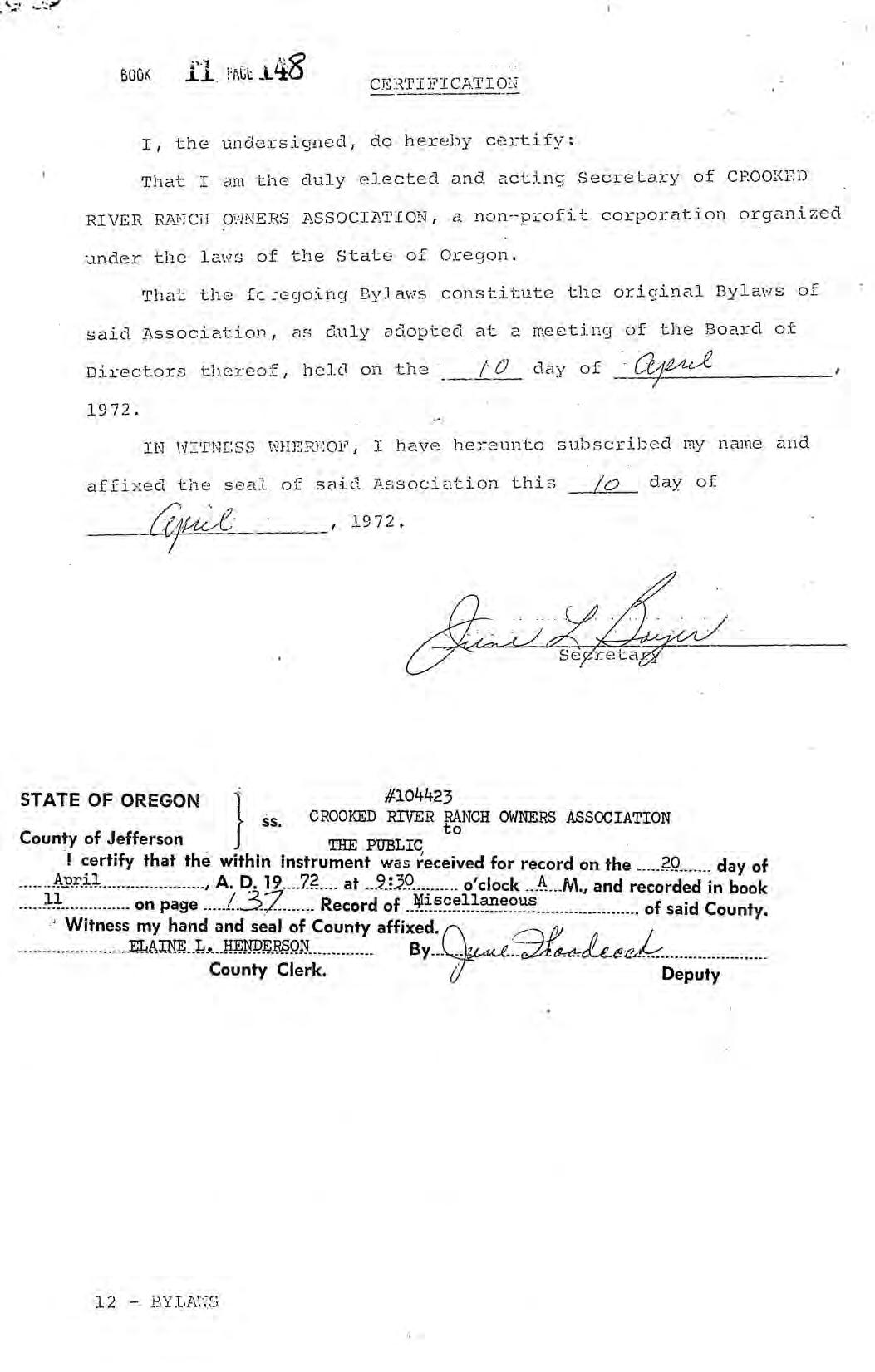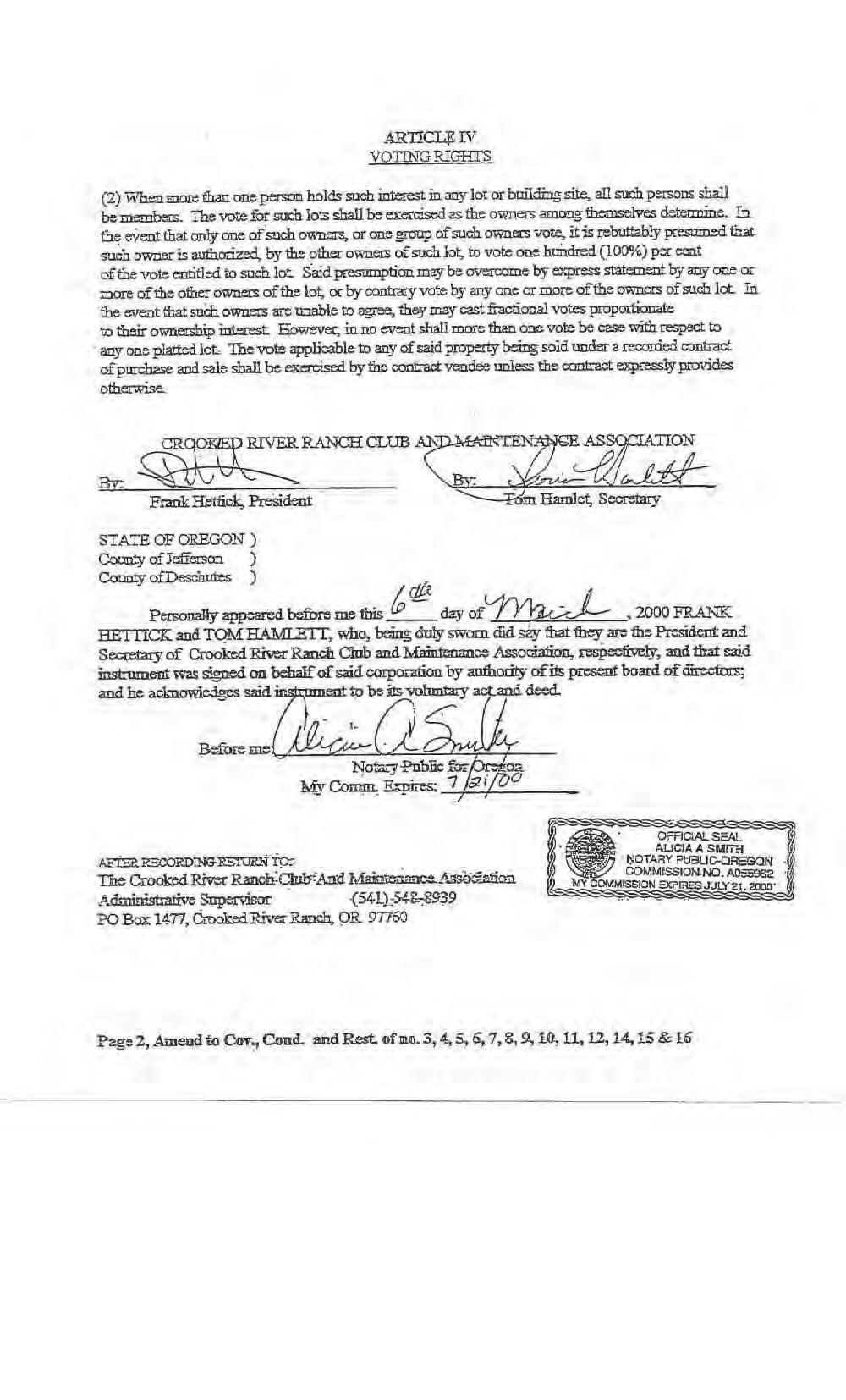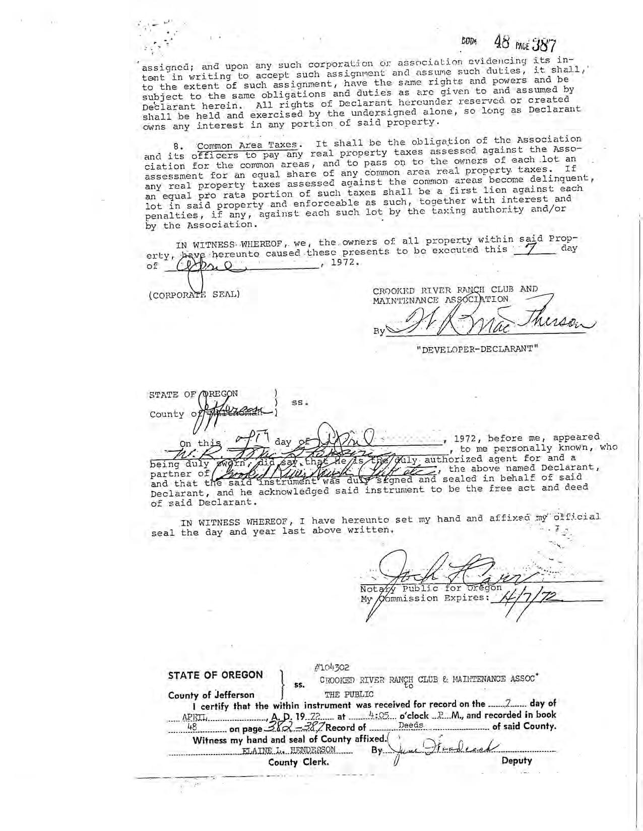 Crooked River Ranch, Phase 2 - CC&R's