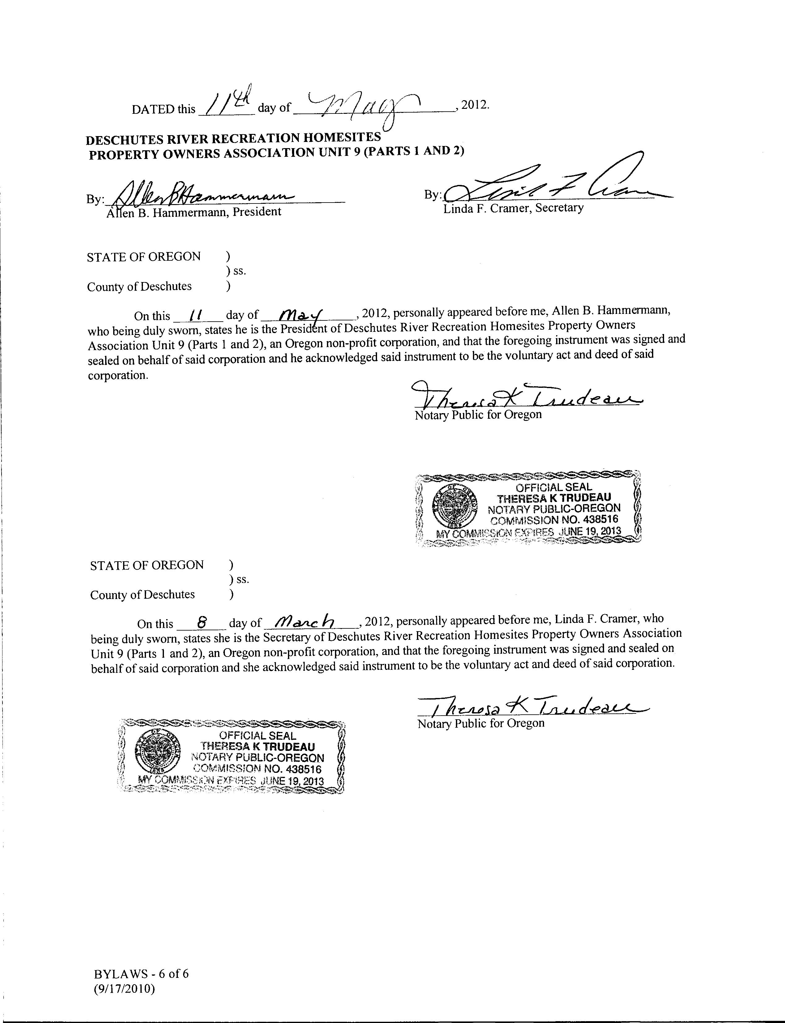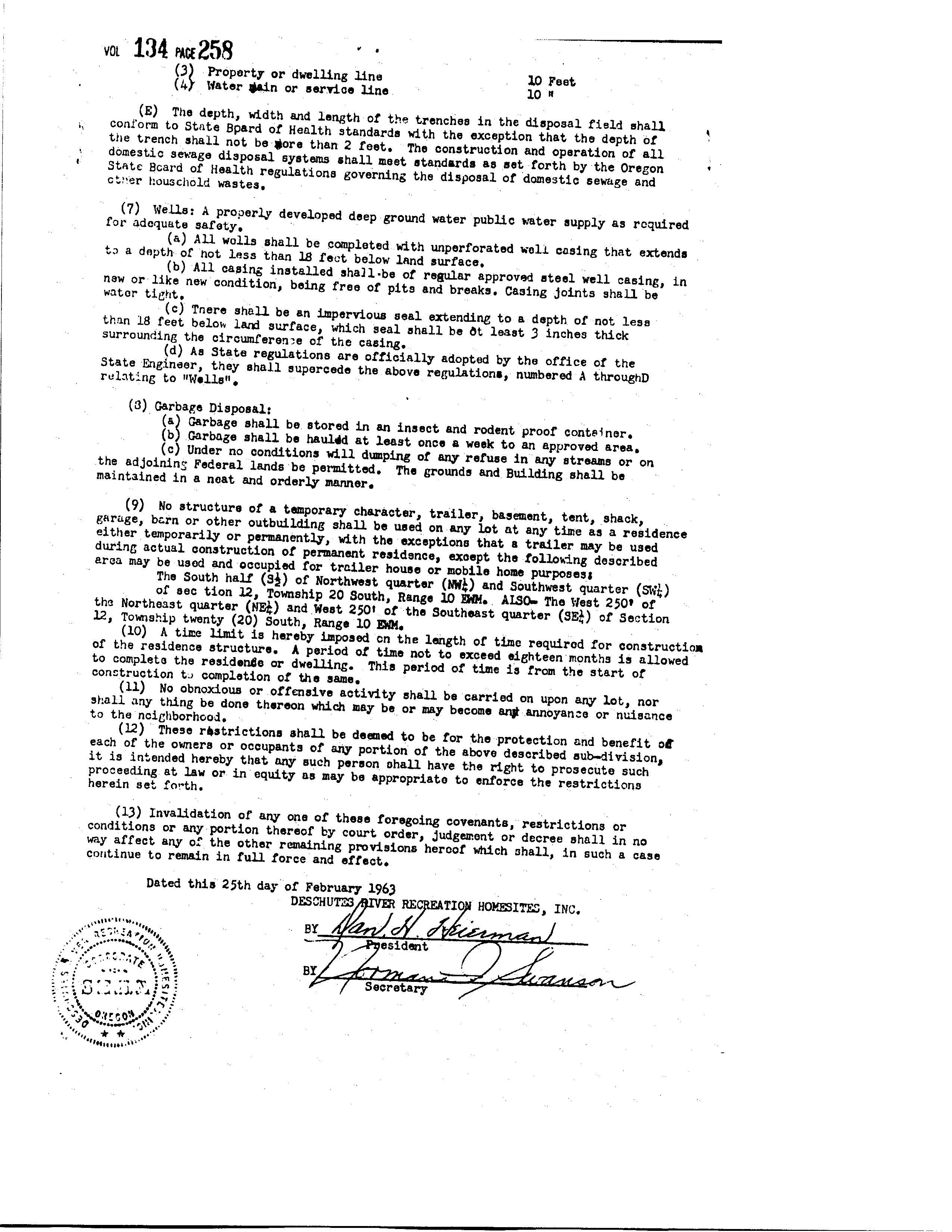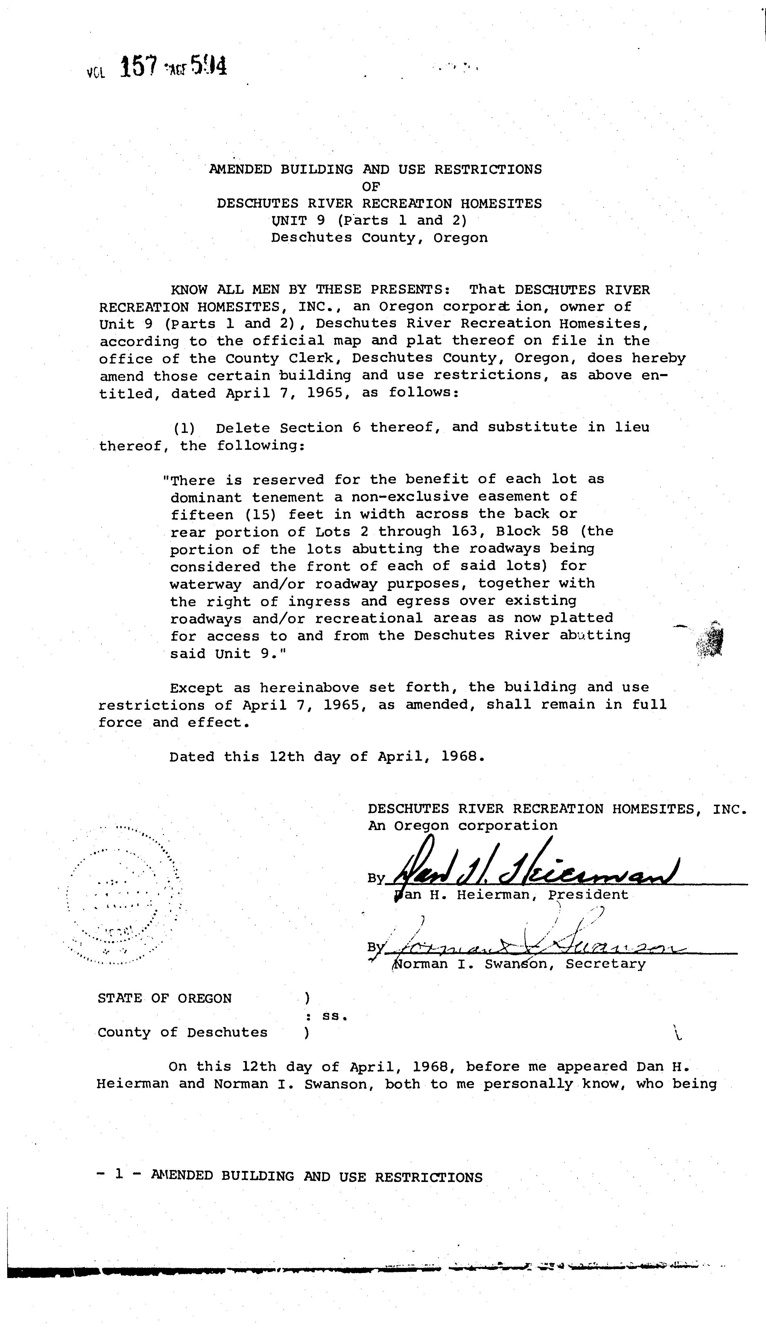 Deschutes River Recreation Homesite Unit 9 Part 1 CC&R's