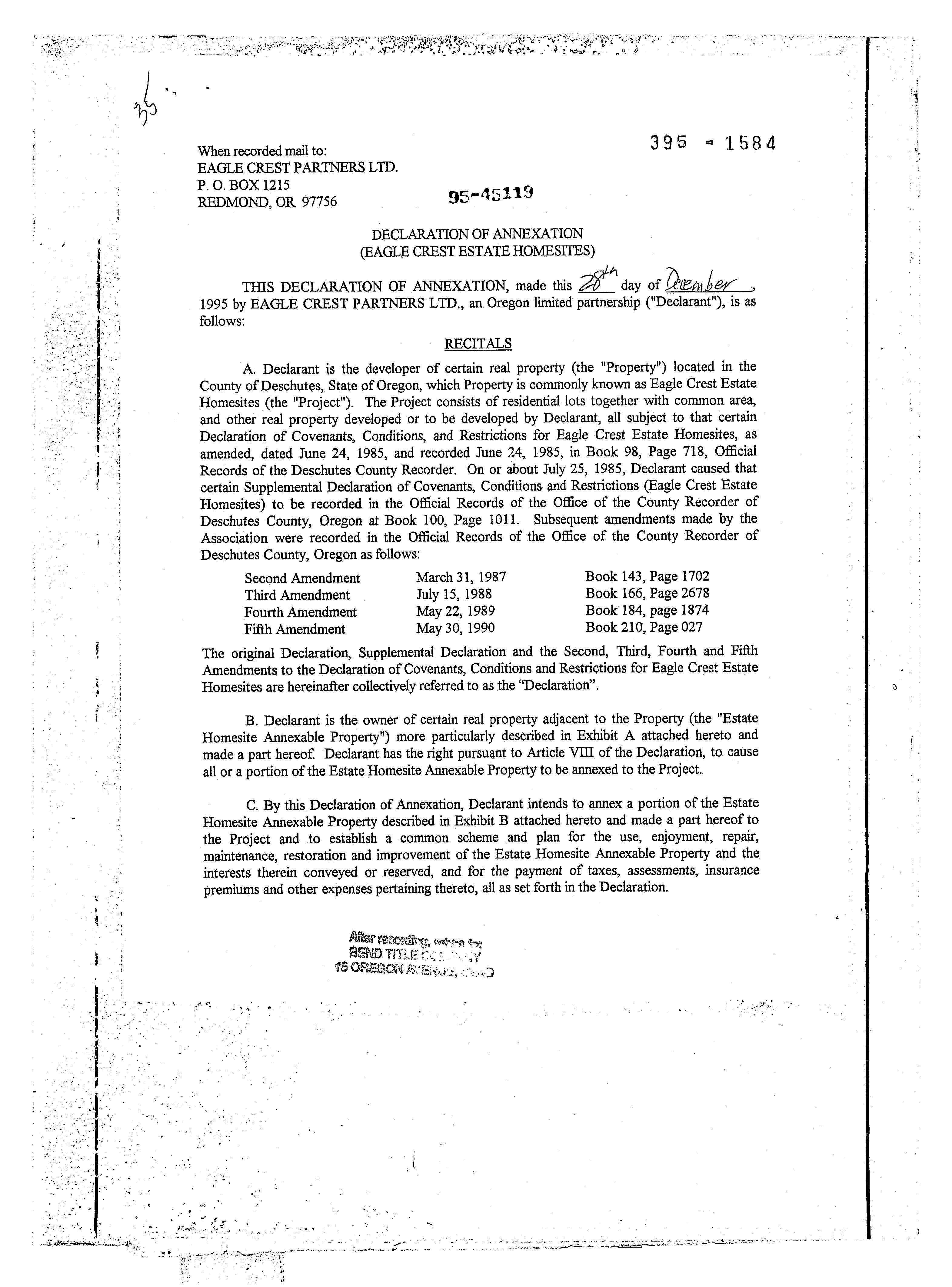 EHOA CC&R's (Eagle Crest Homesite Owners Association)