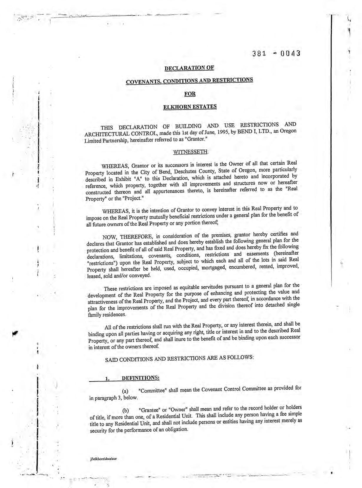Elkhorn Estates Ph 1-3 CC&R's