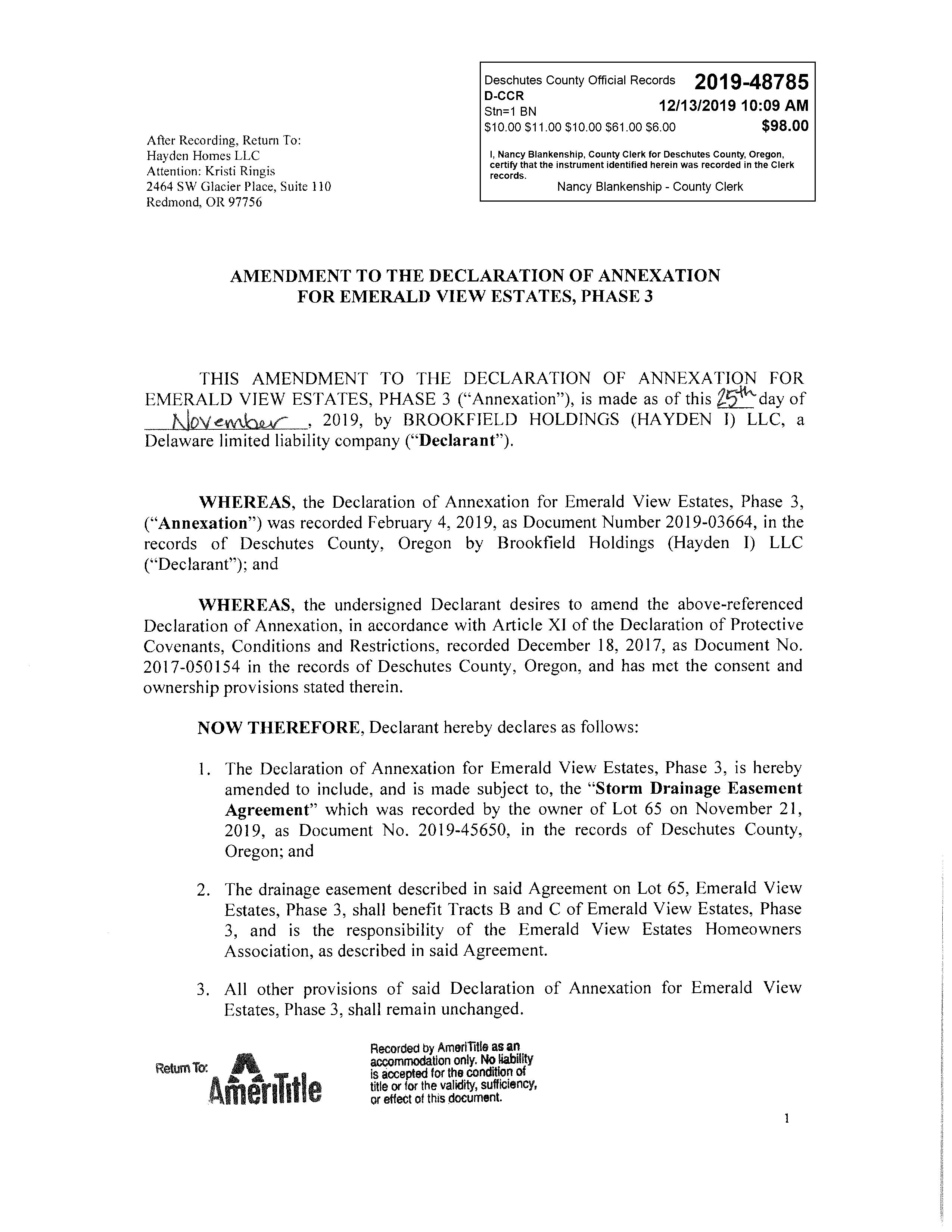 Emerald View Estates PH 3 CC&R's by info-deschutestitle - Issuu