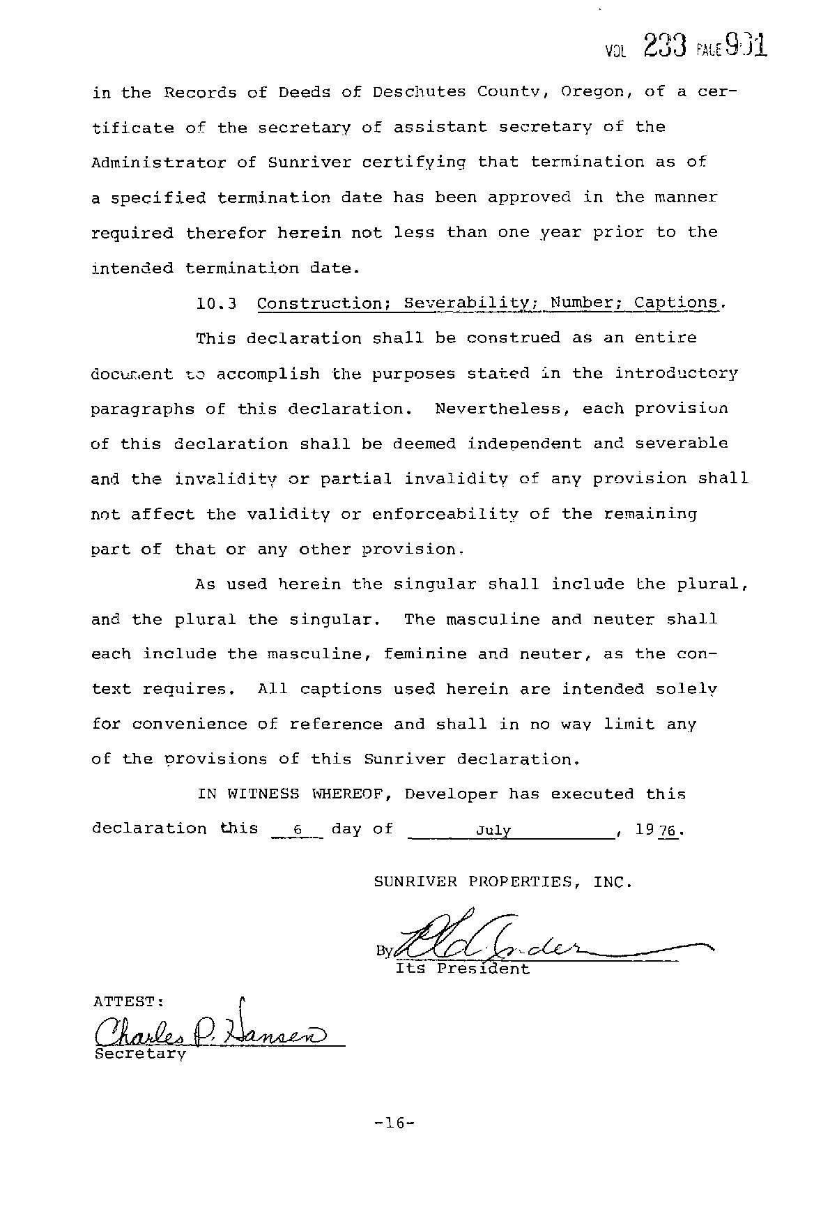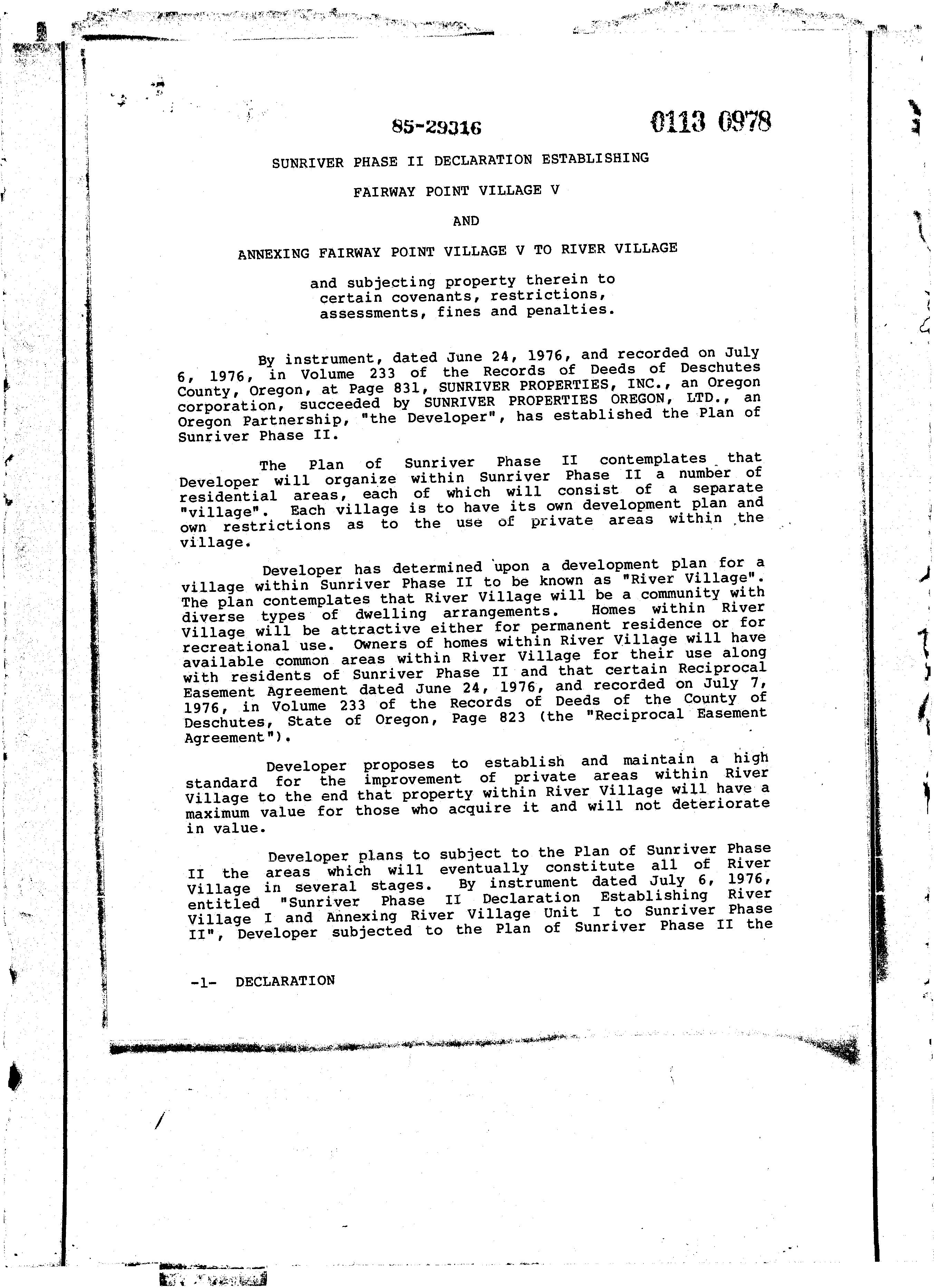 Fairway Point Village Ph 5 and a Replat of a Portion of Fairway Crest Village 6 CC&R's