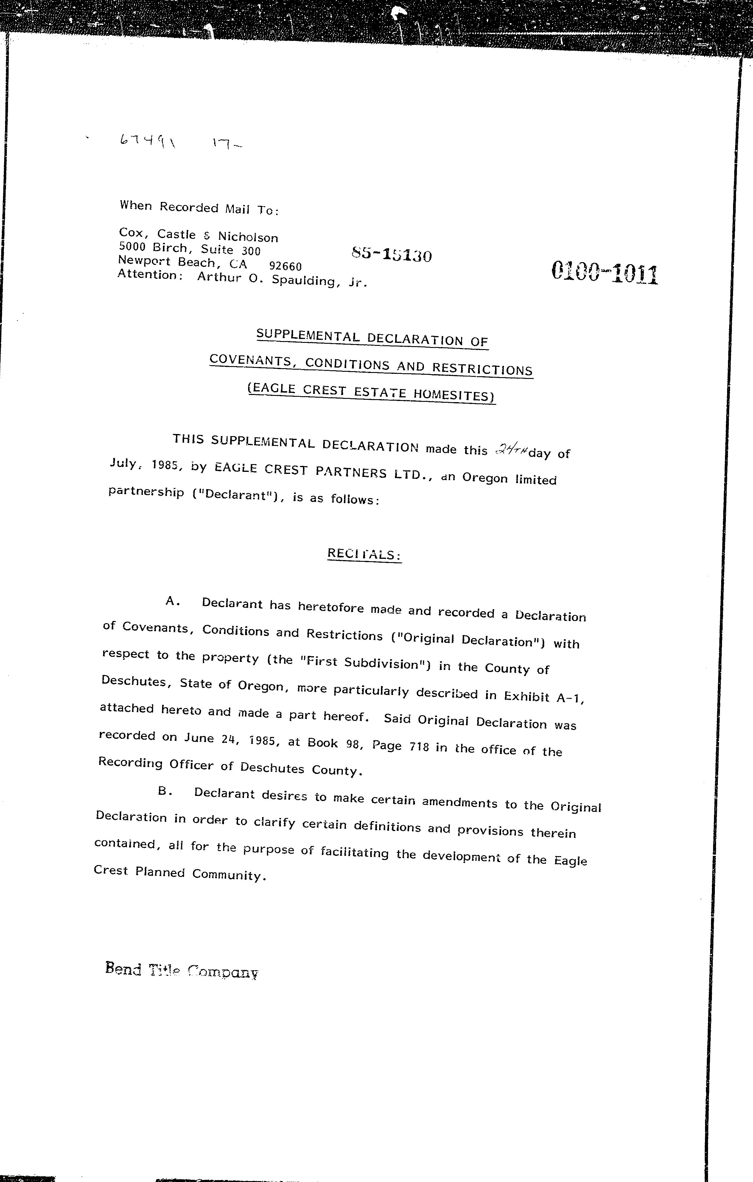 Fairway Vista Estates CCR's by info-deschutestitle - Issuu