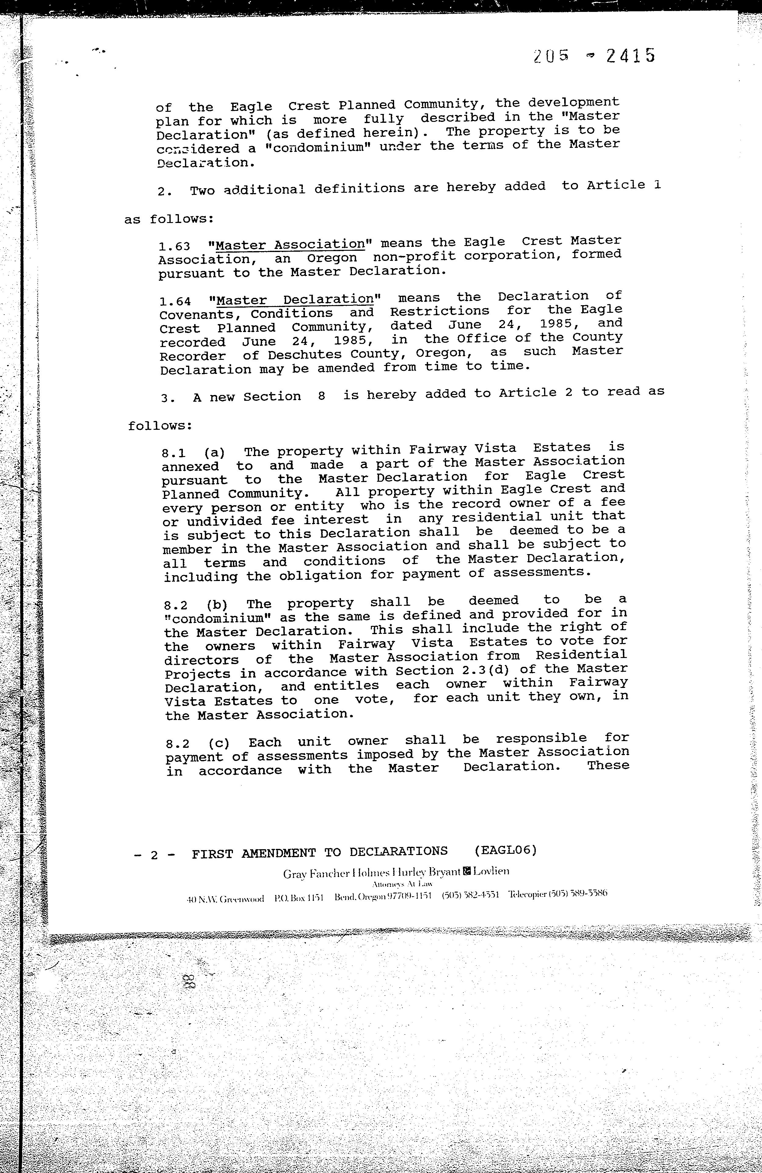 Fairway Vista Estates CCR's