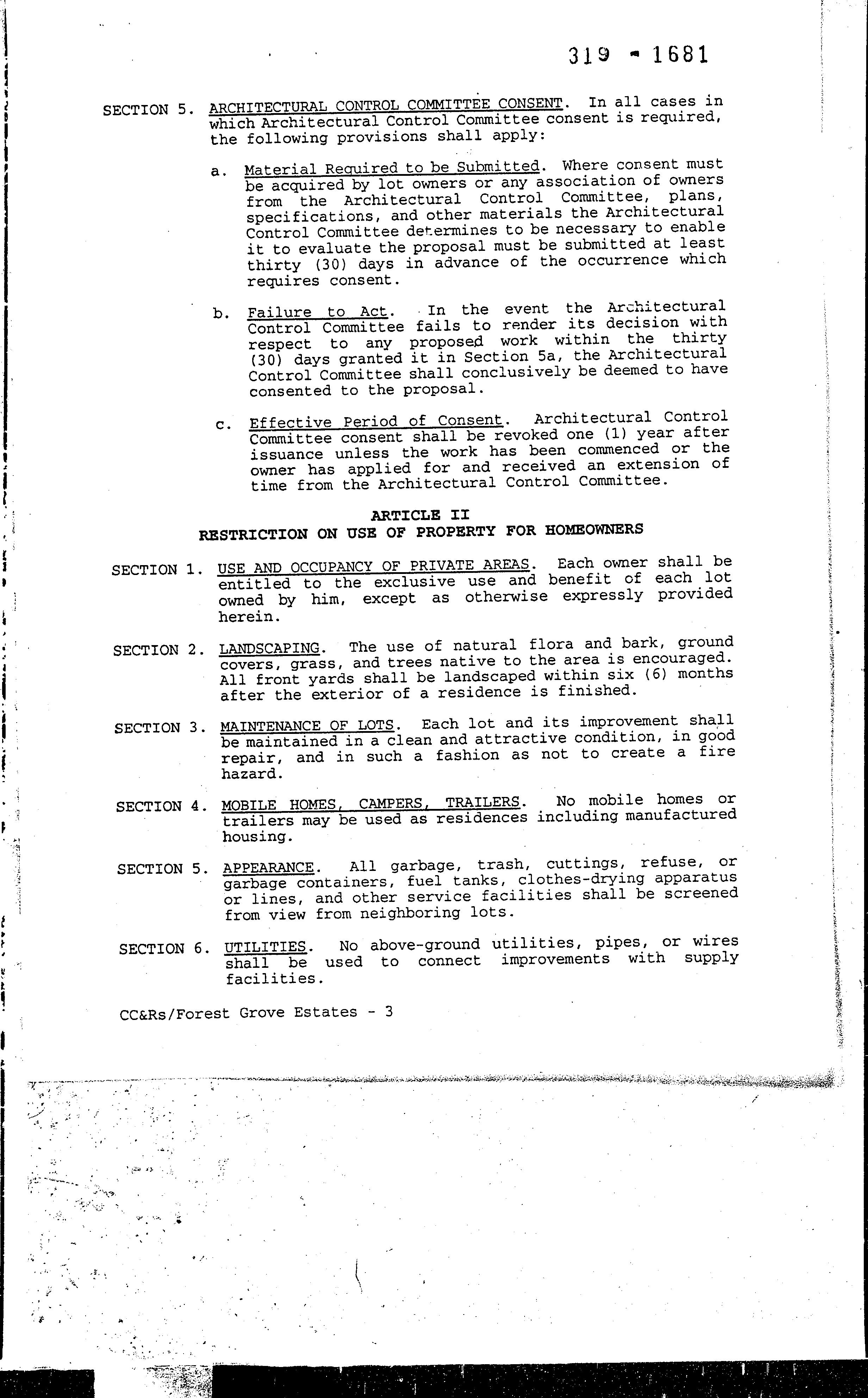 Forest Grove Estates Ph I-II & III CC&R's
