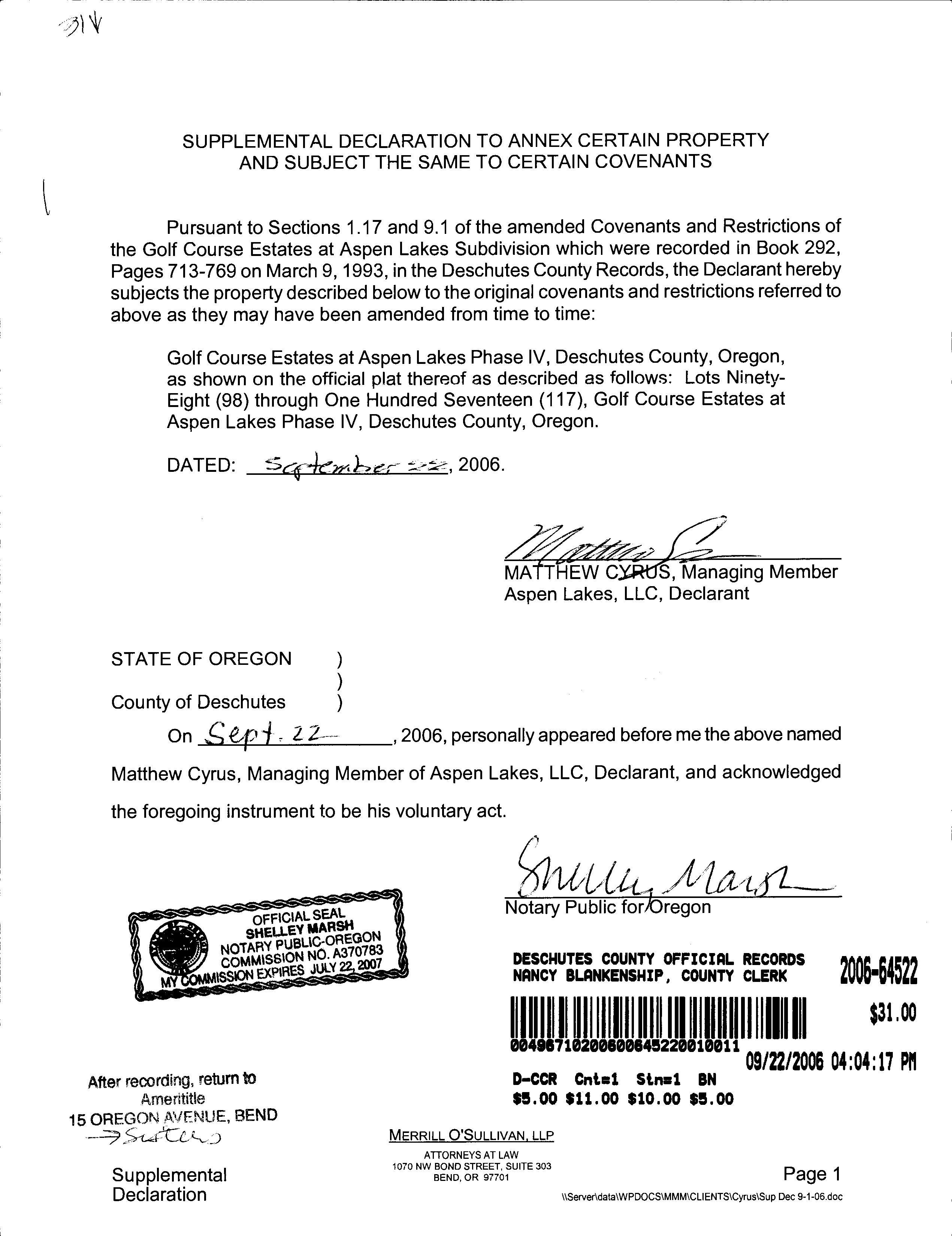 Golf Course Estates at Aspen Lakes Ph. 4 CCR's