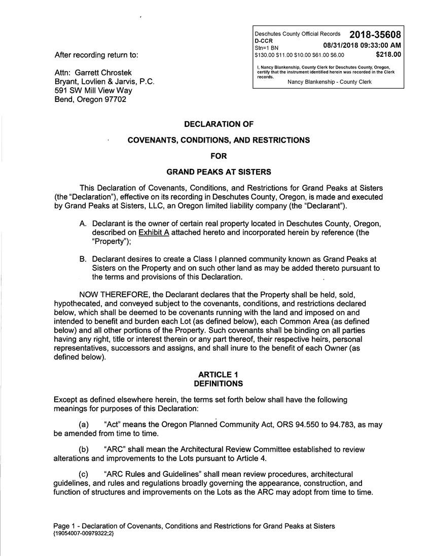 Grand Peaks at Sisters Phase 2-CC&R'S
