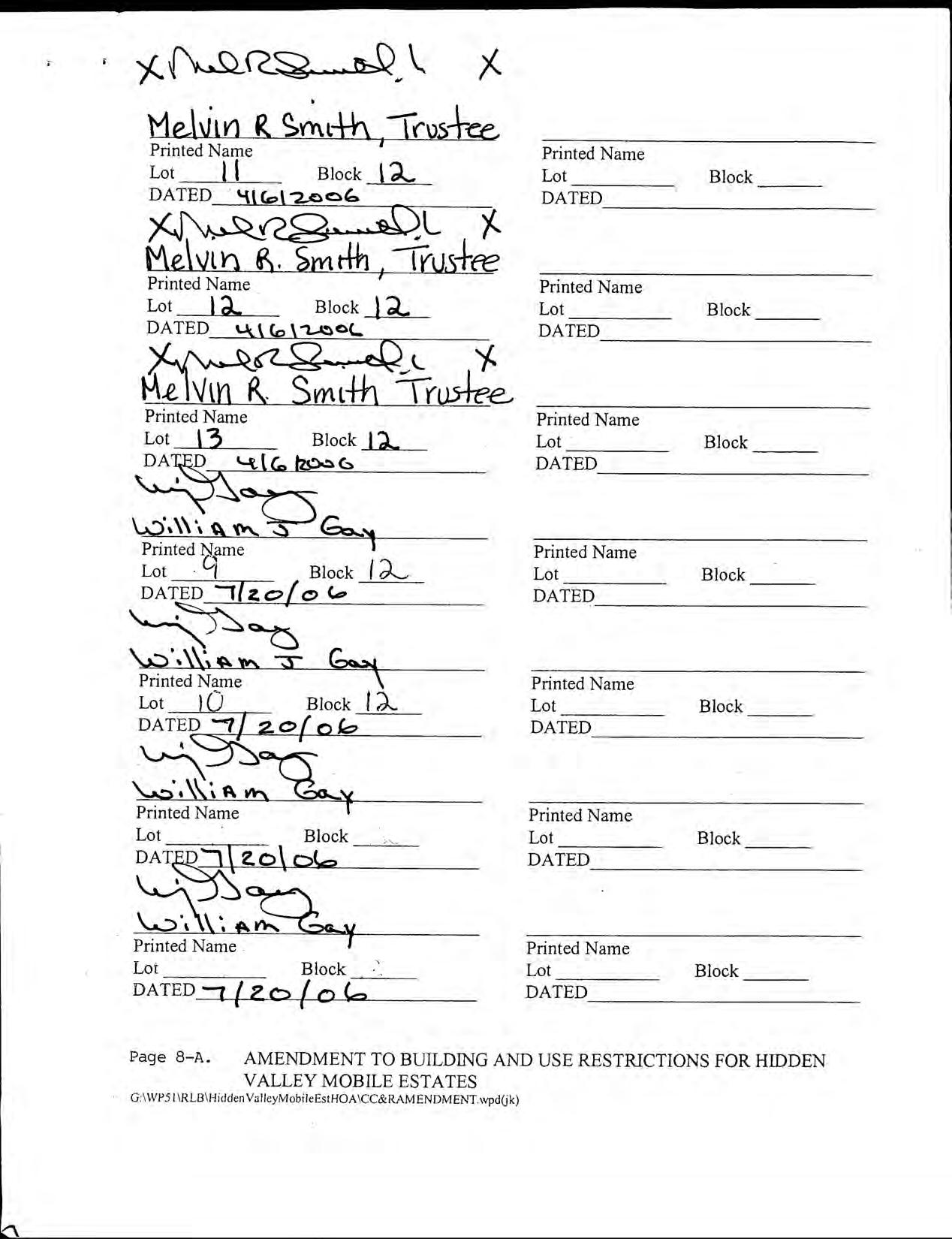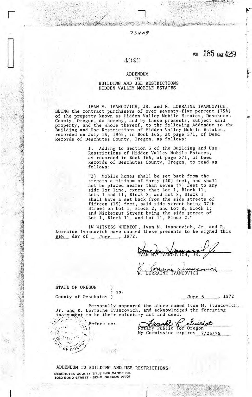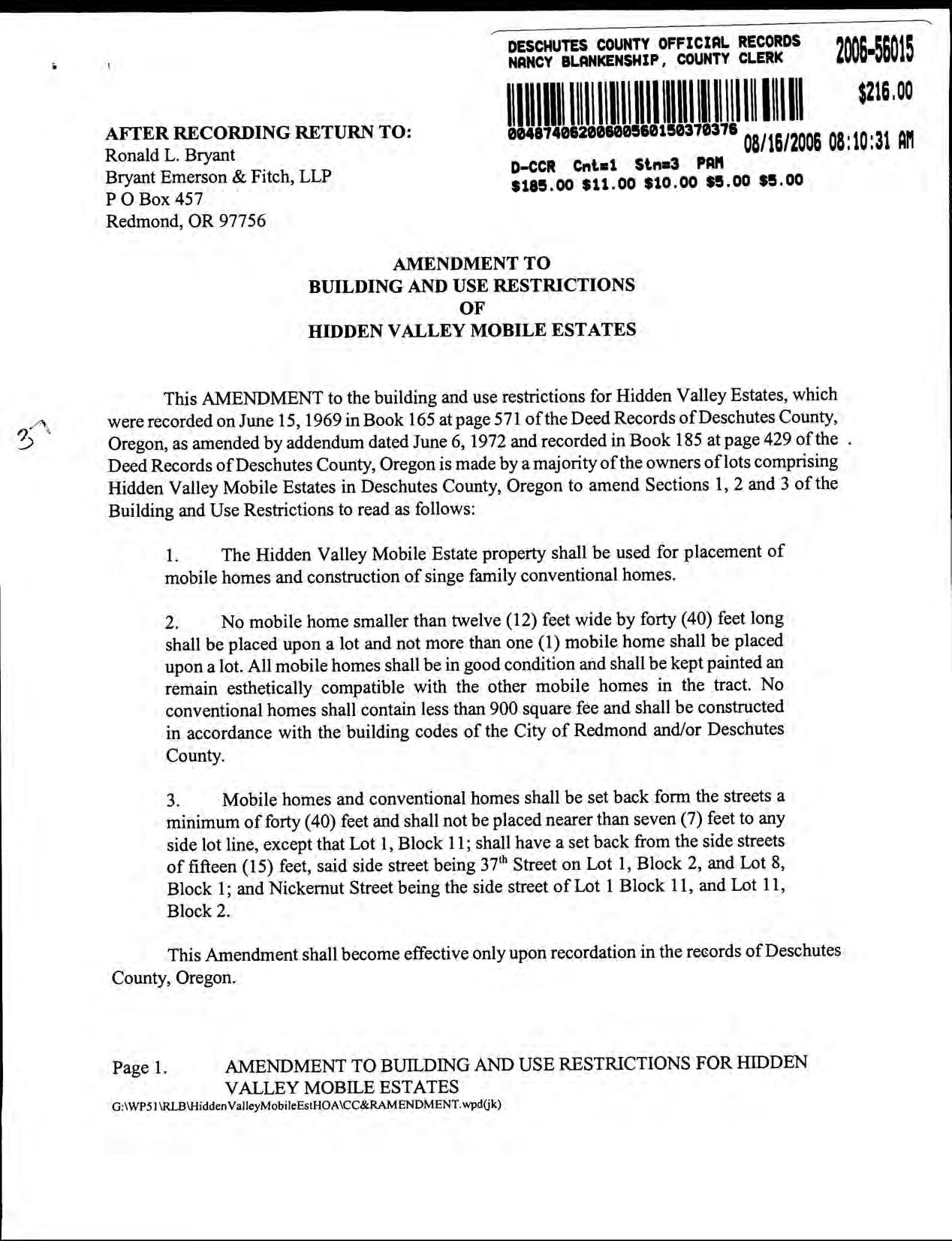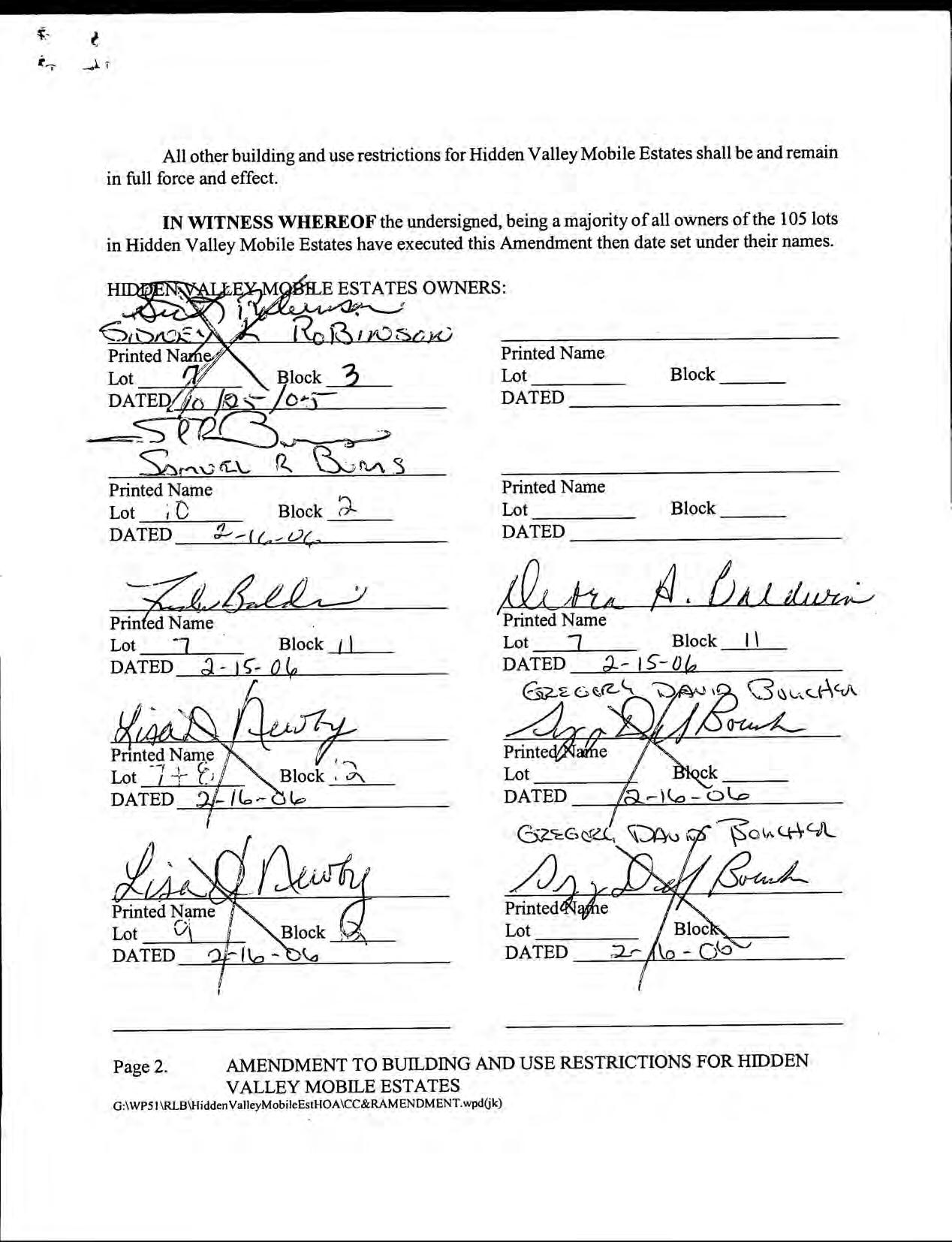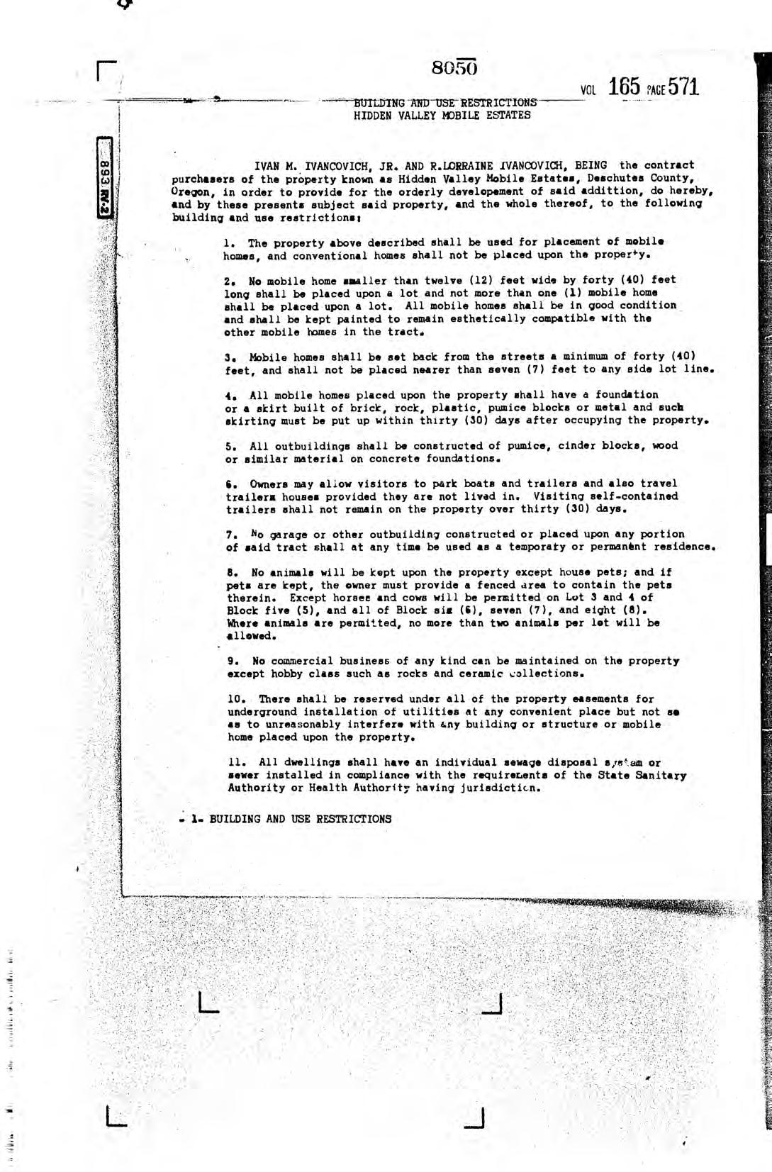 Hidden Valley Mobile Estates, No 1 - CC&R's