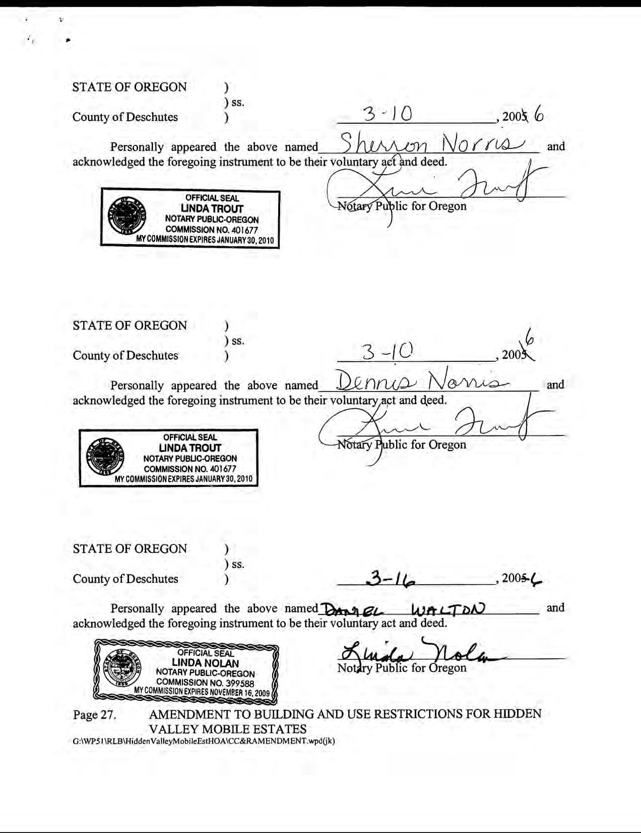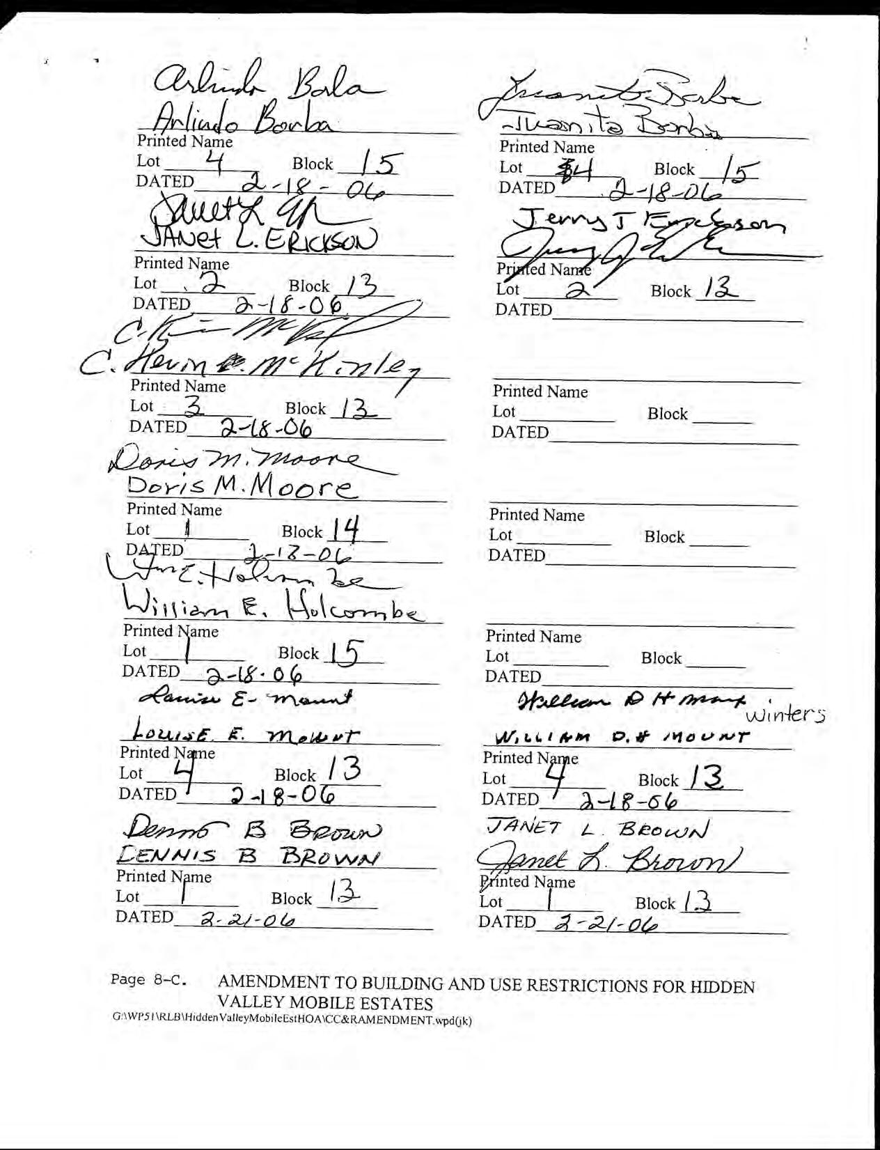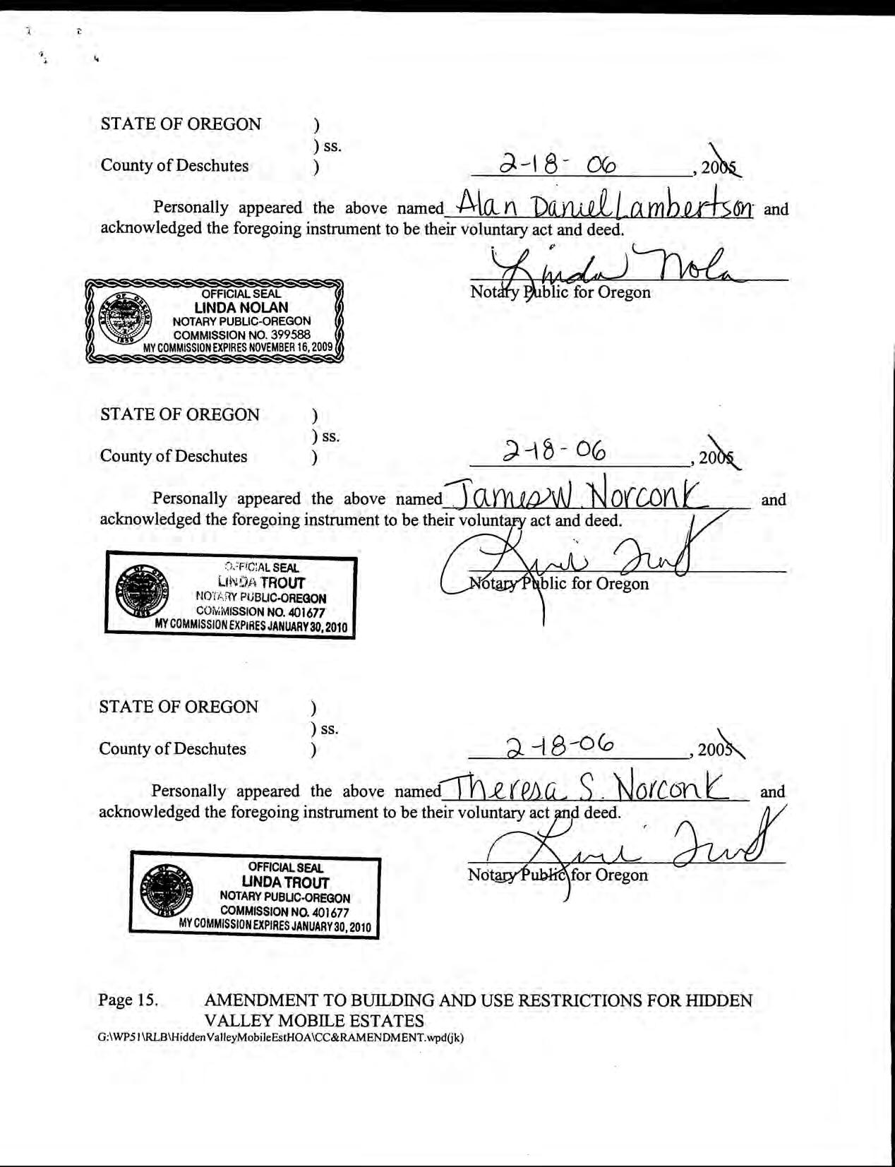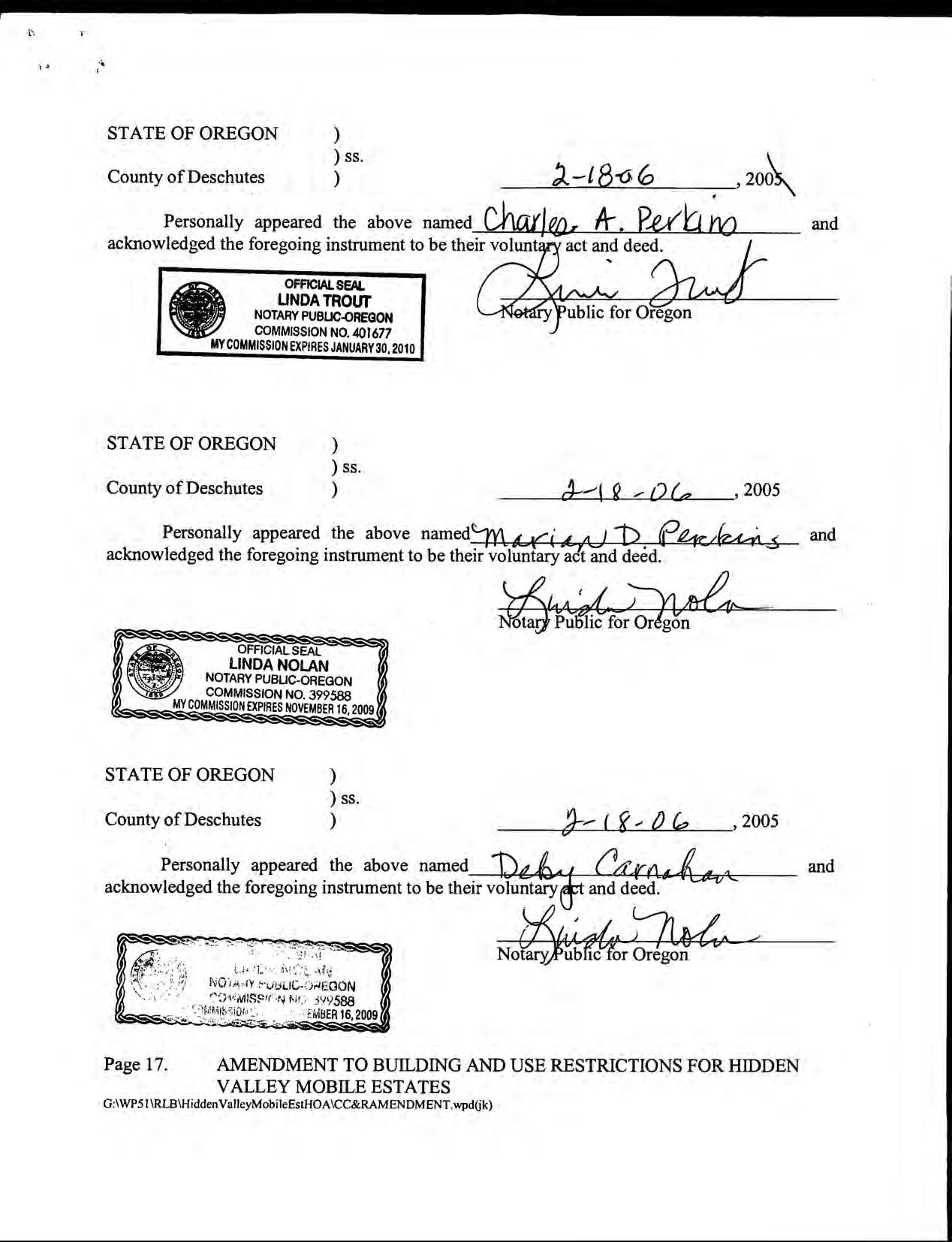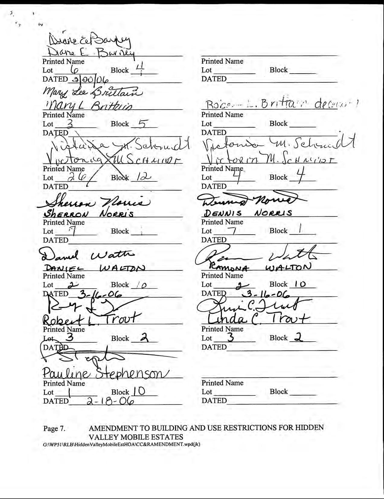 Hidden Valley Mobile Estates, No 1 - CC&R's