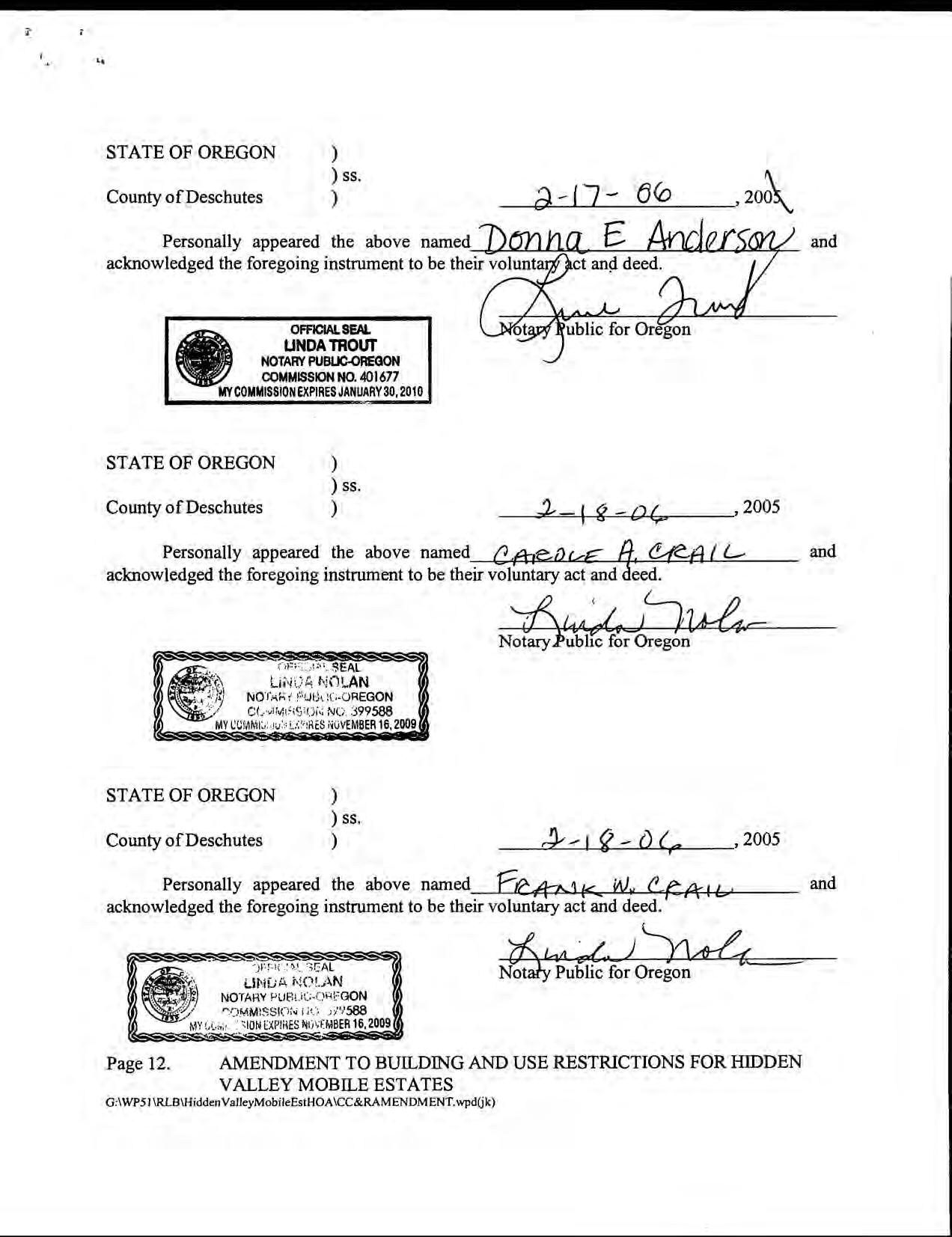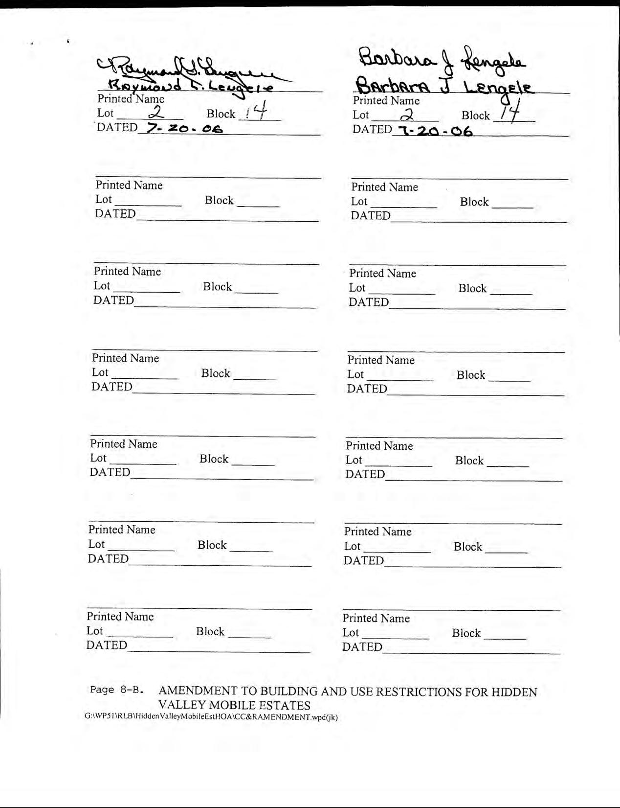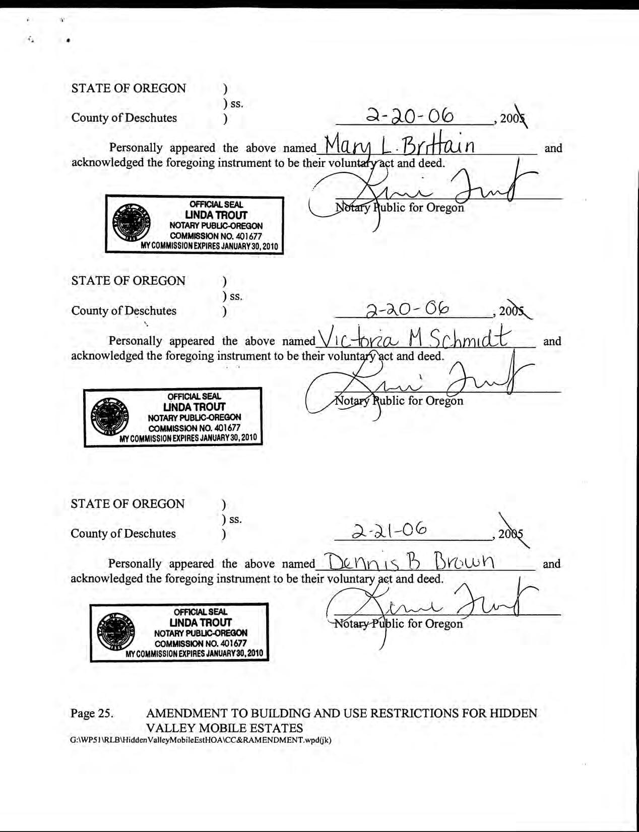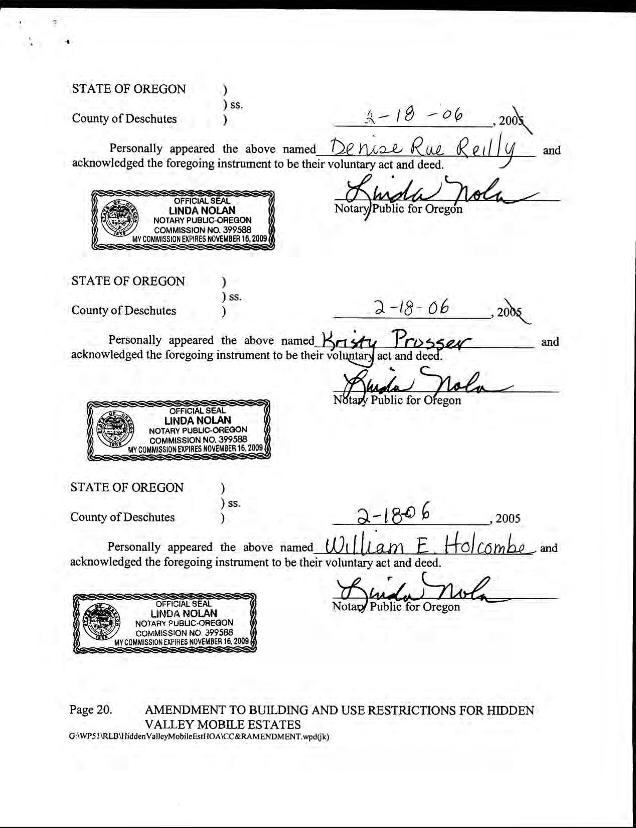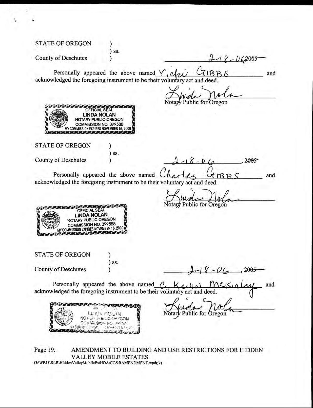 Hidden Valley Mobile Estates, No 1 - CC&R's