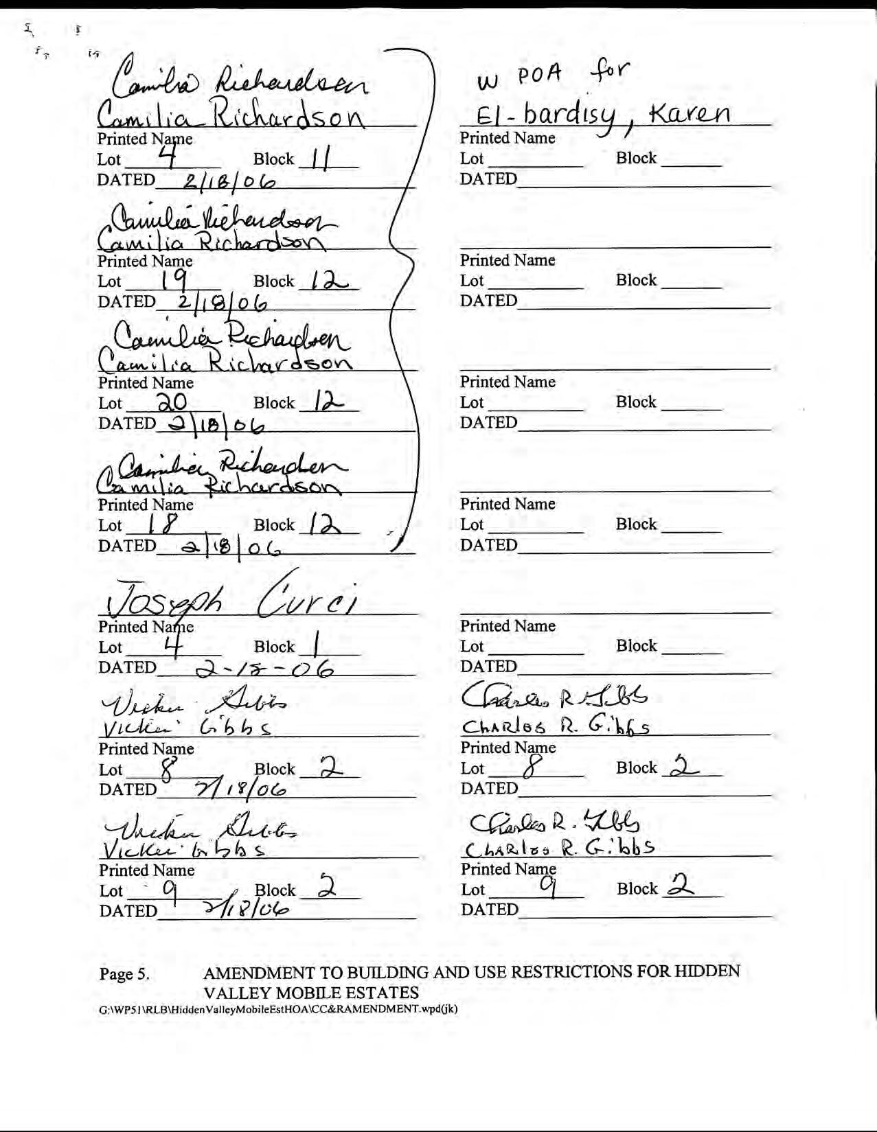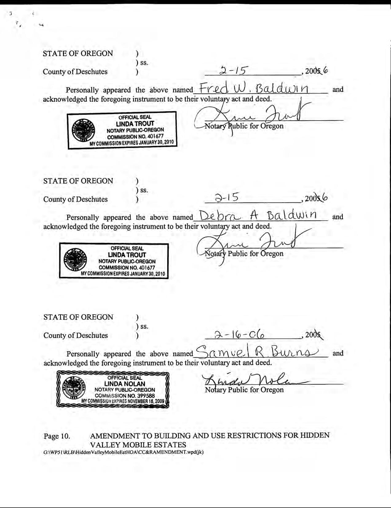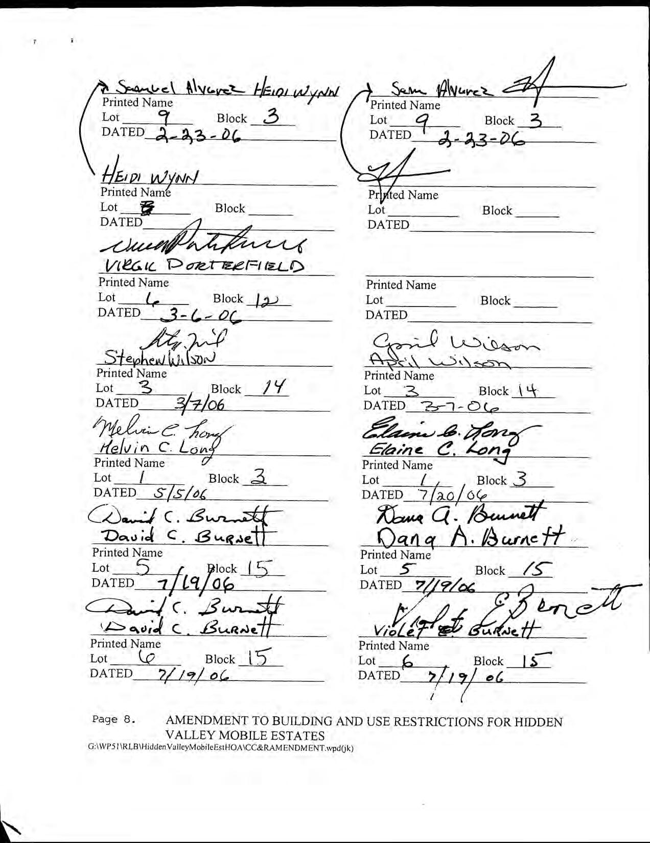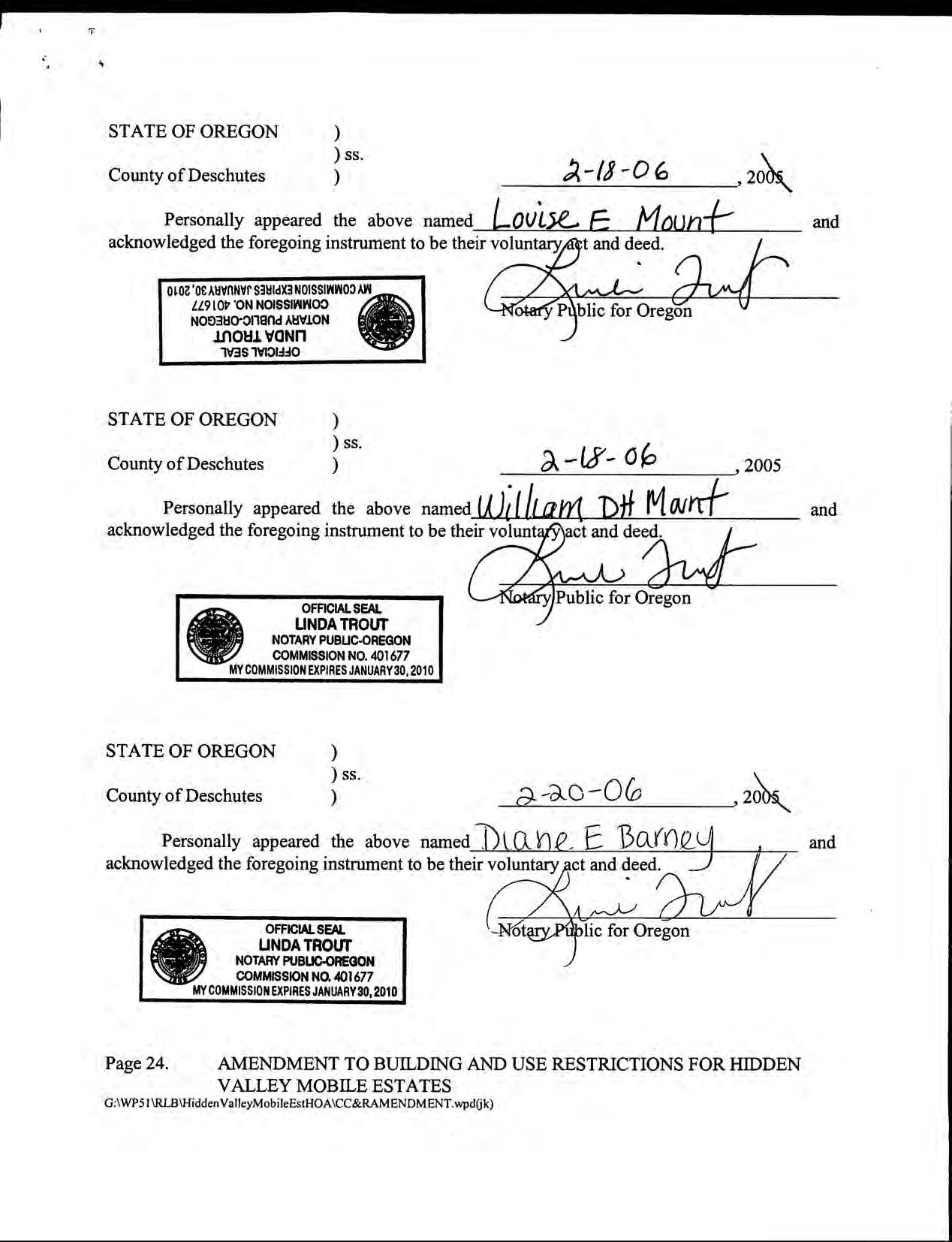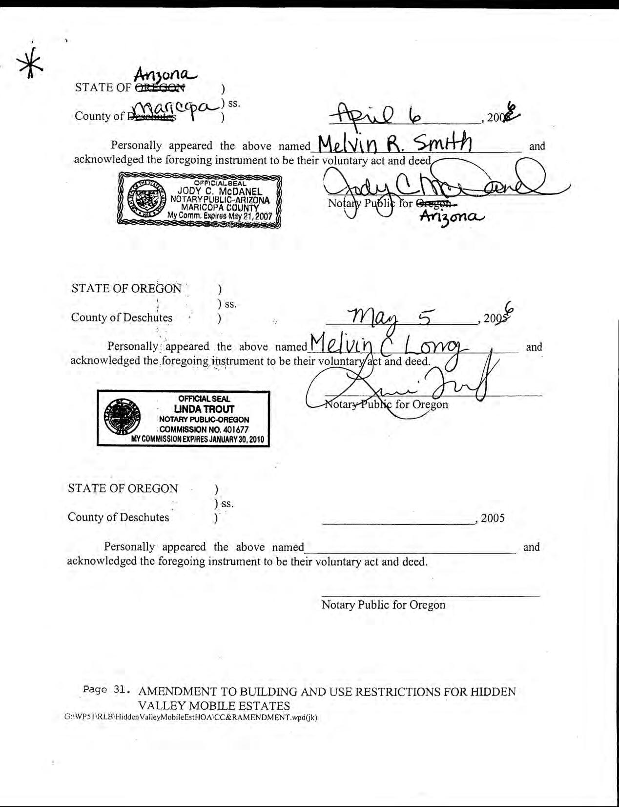 Hidden Valley Mobile Estates, No 1 - CC&R's