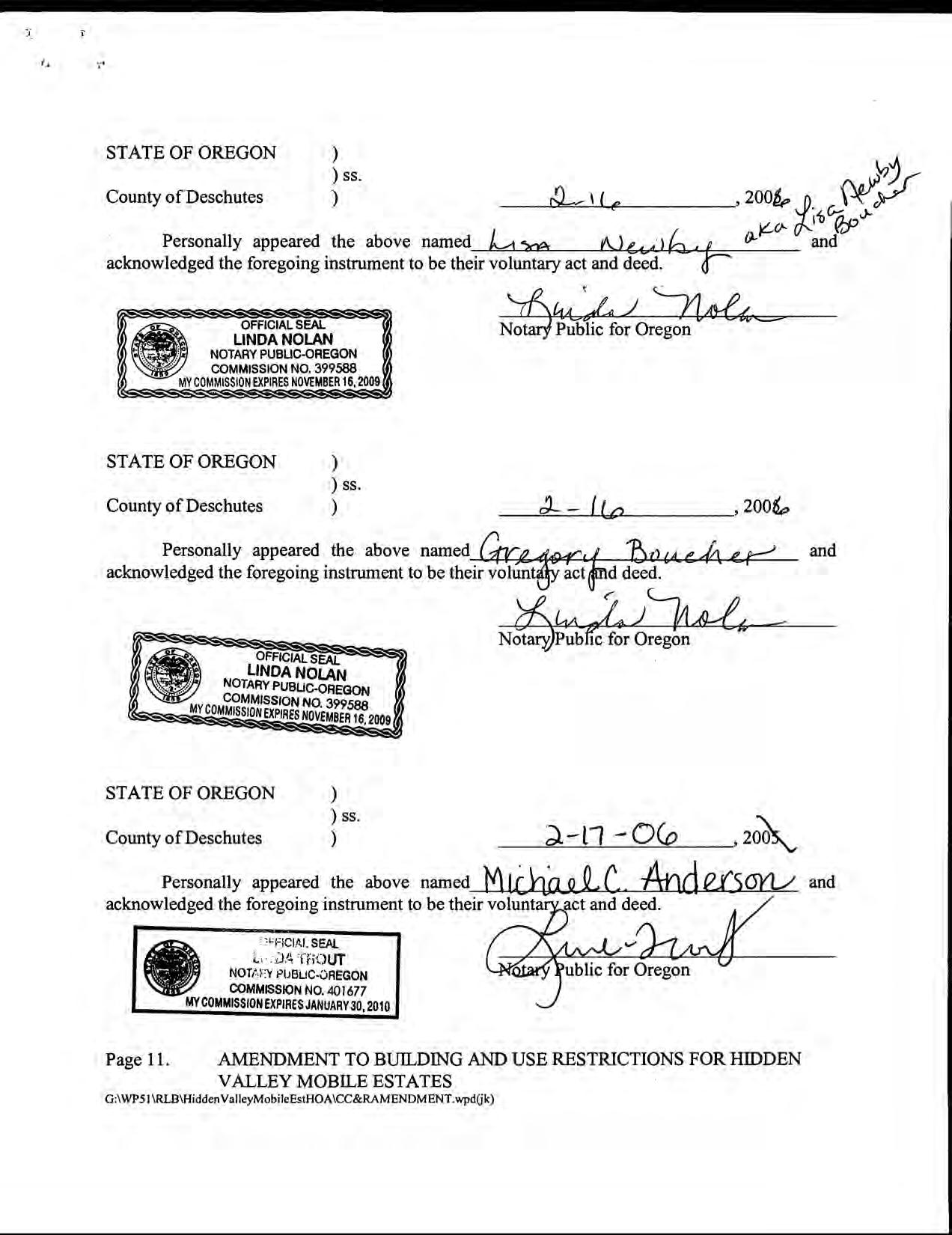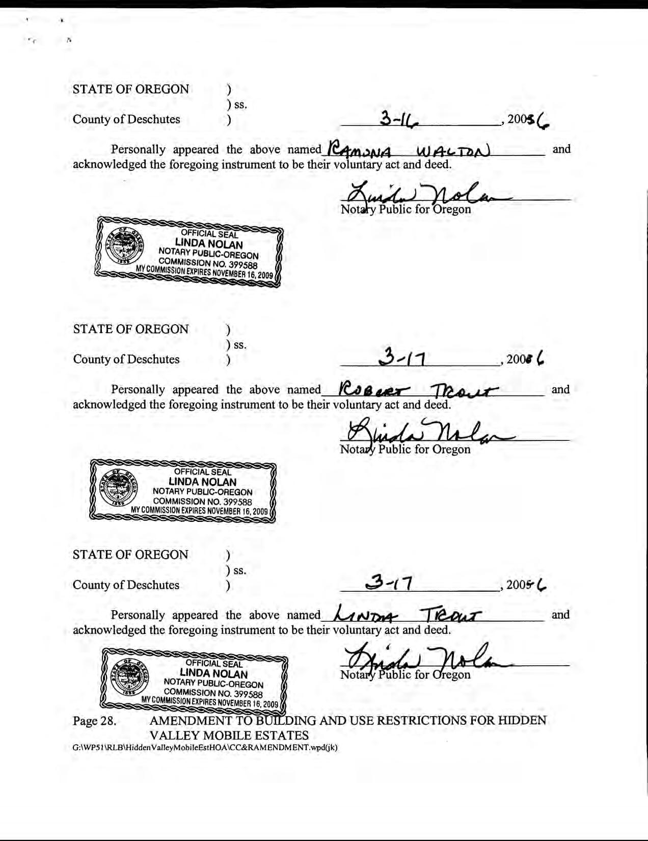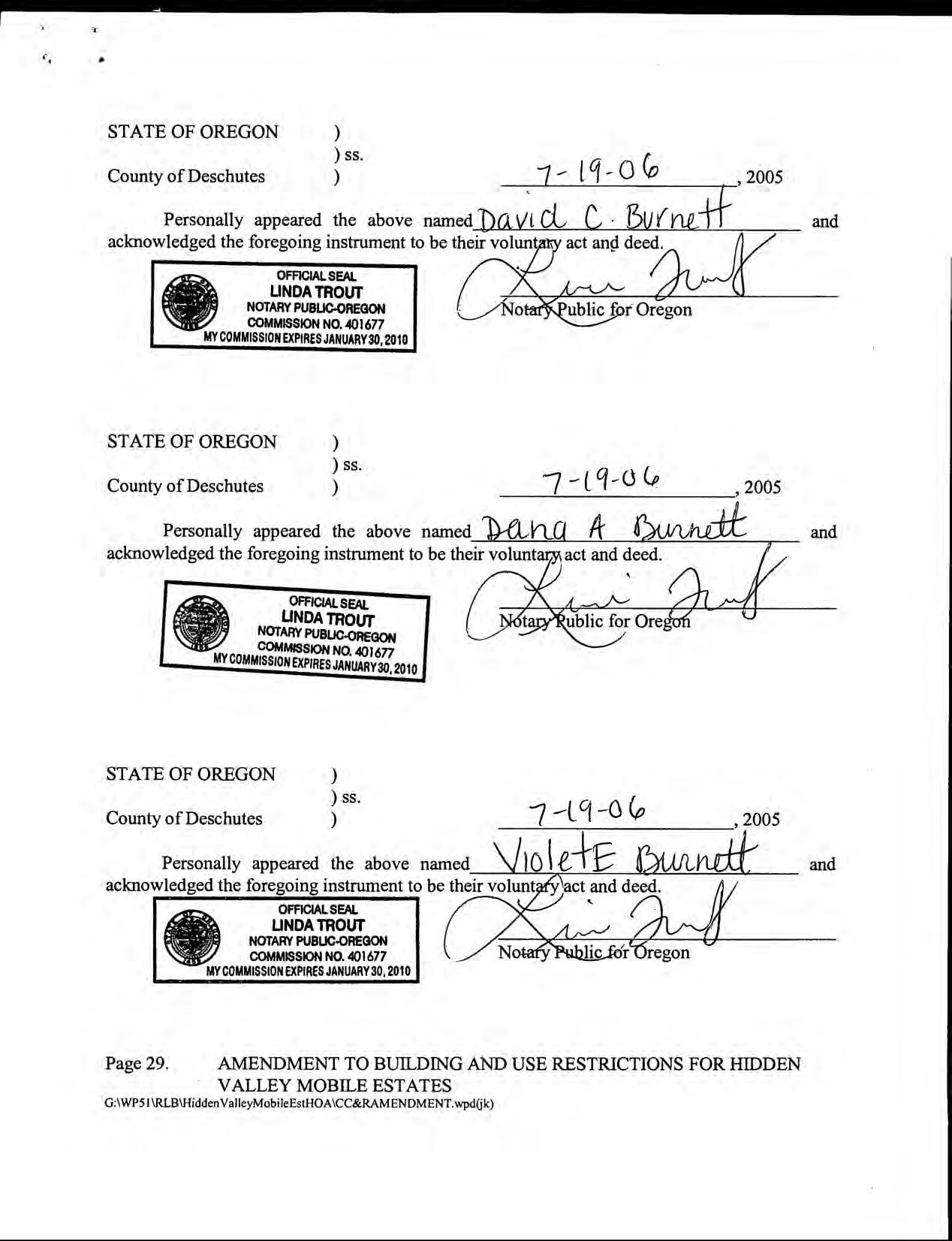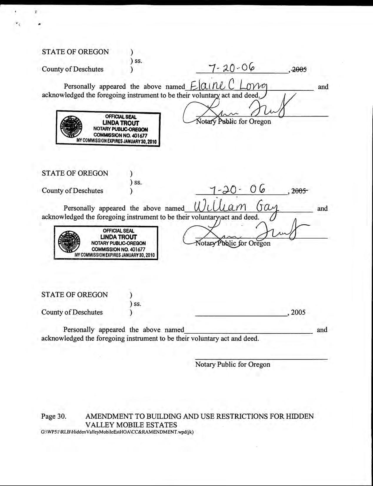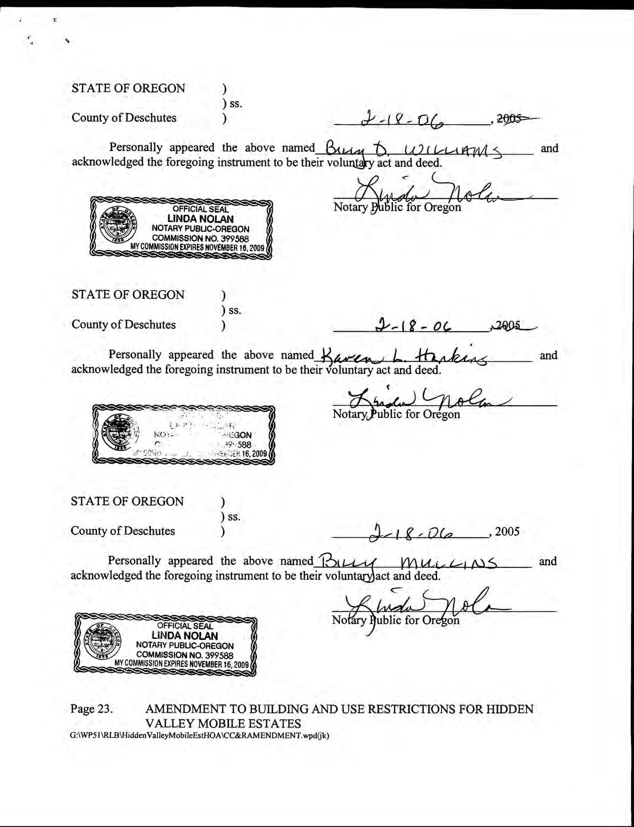 Hidden Valley Mobile Estates, No 1 - CC&R's