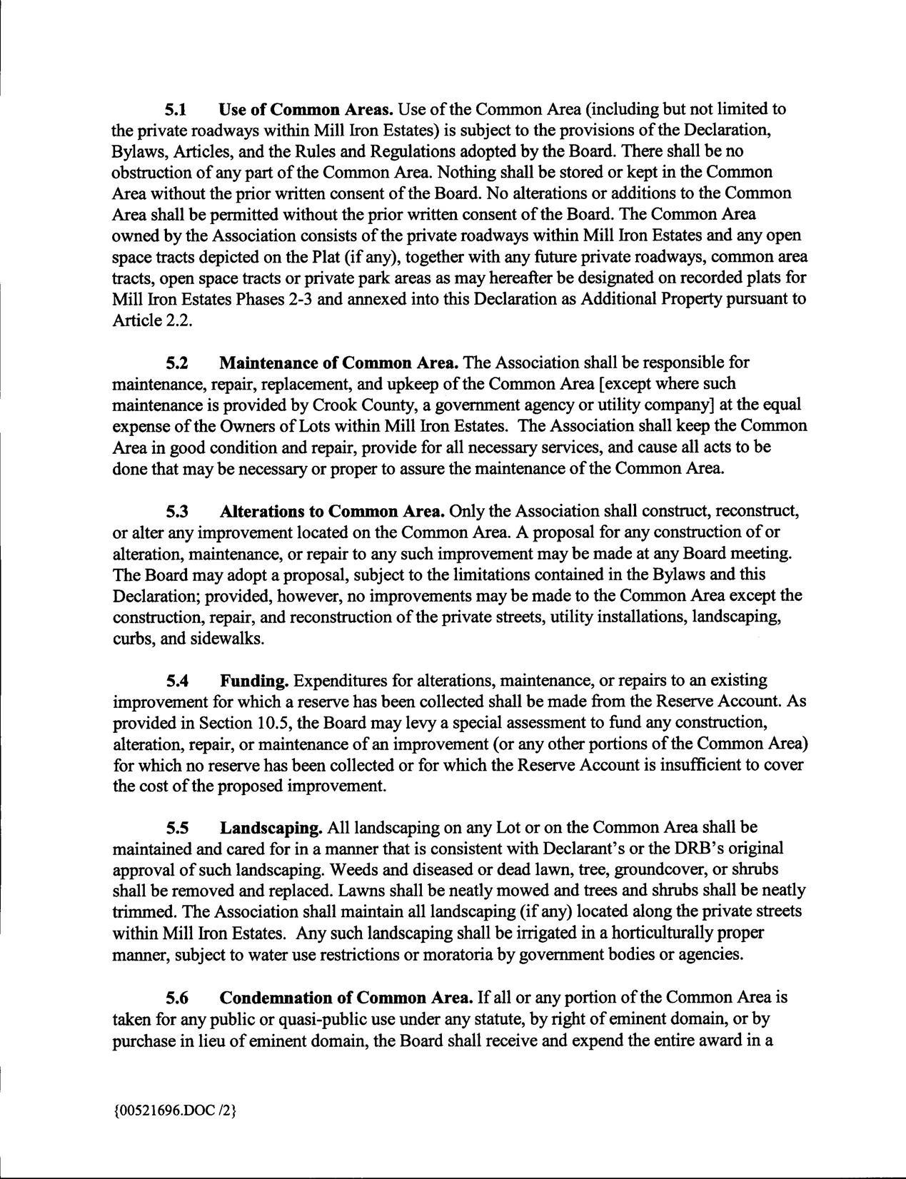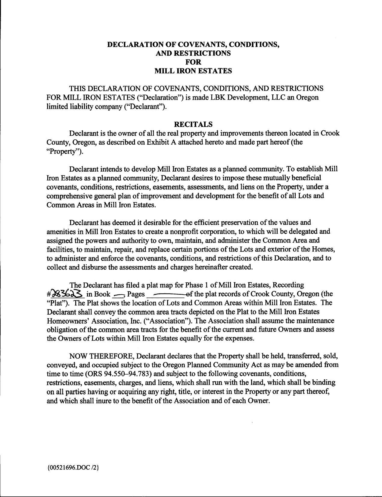 Mill Iron Estates Subdivision Ph. I CCR's