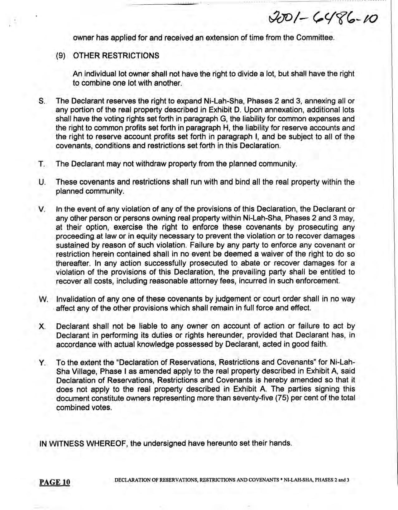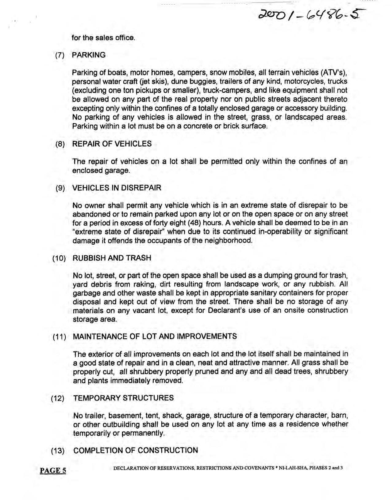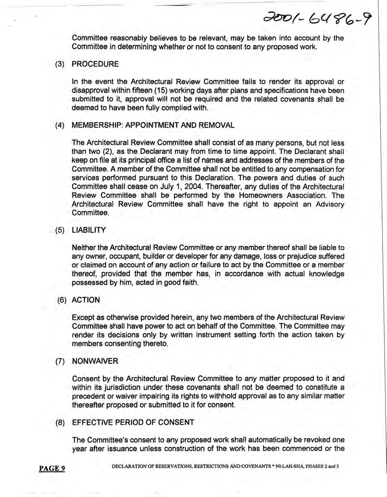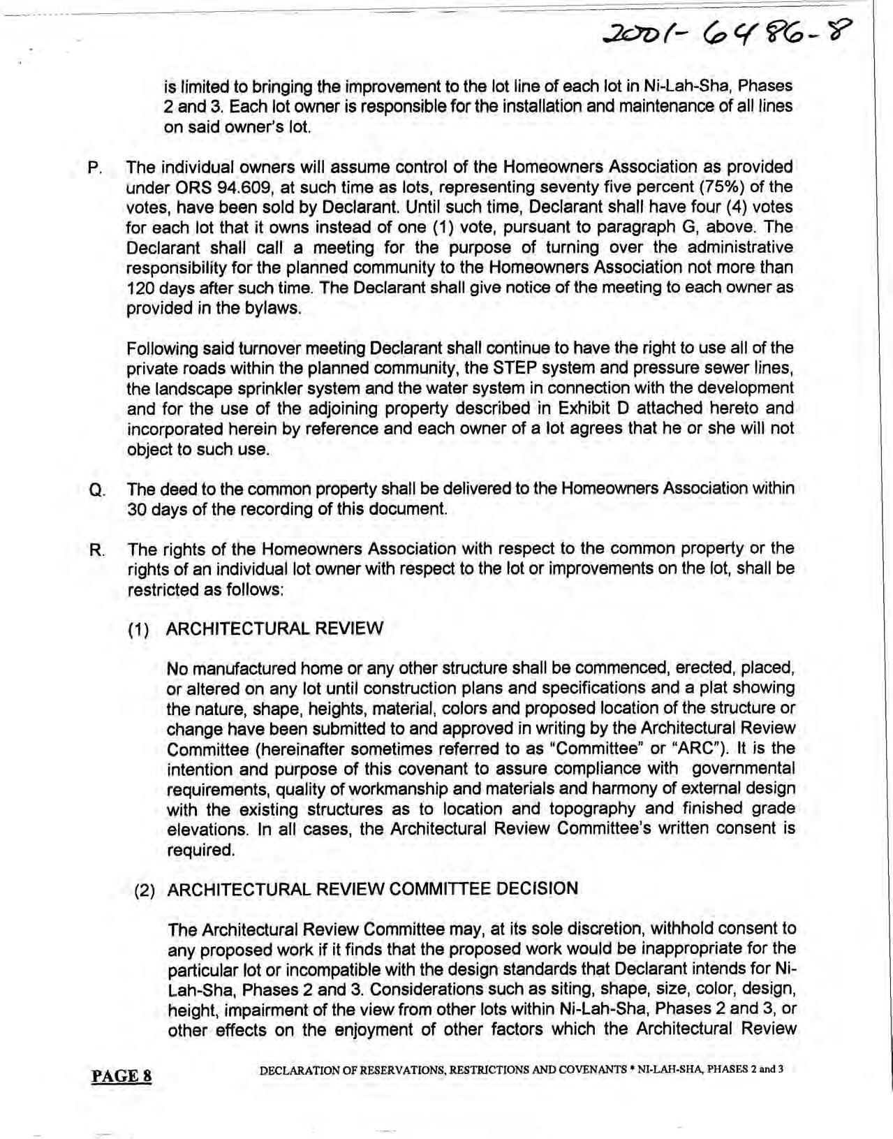 Ni-Lah-Sha, Phases 2-3 - CC&R's