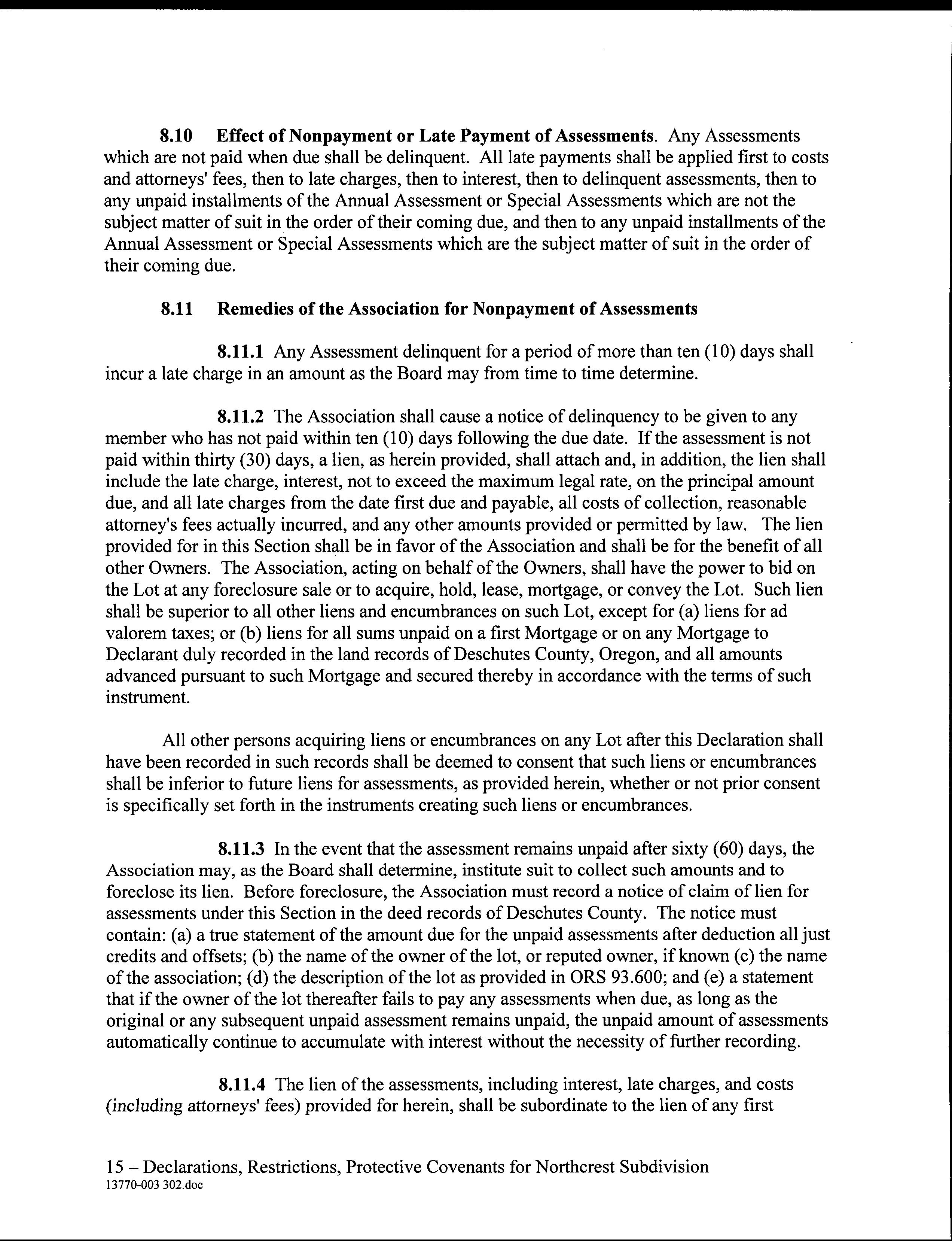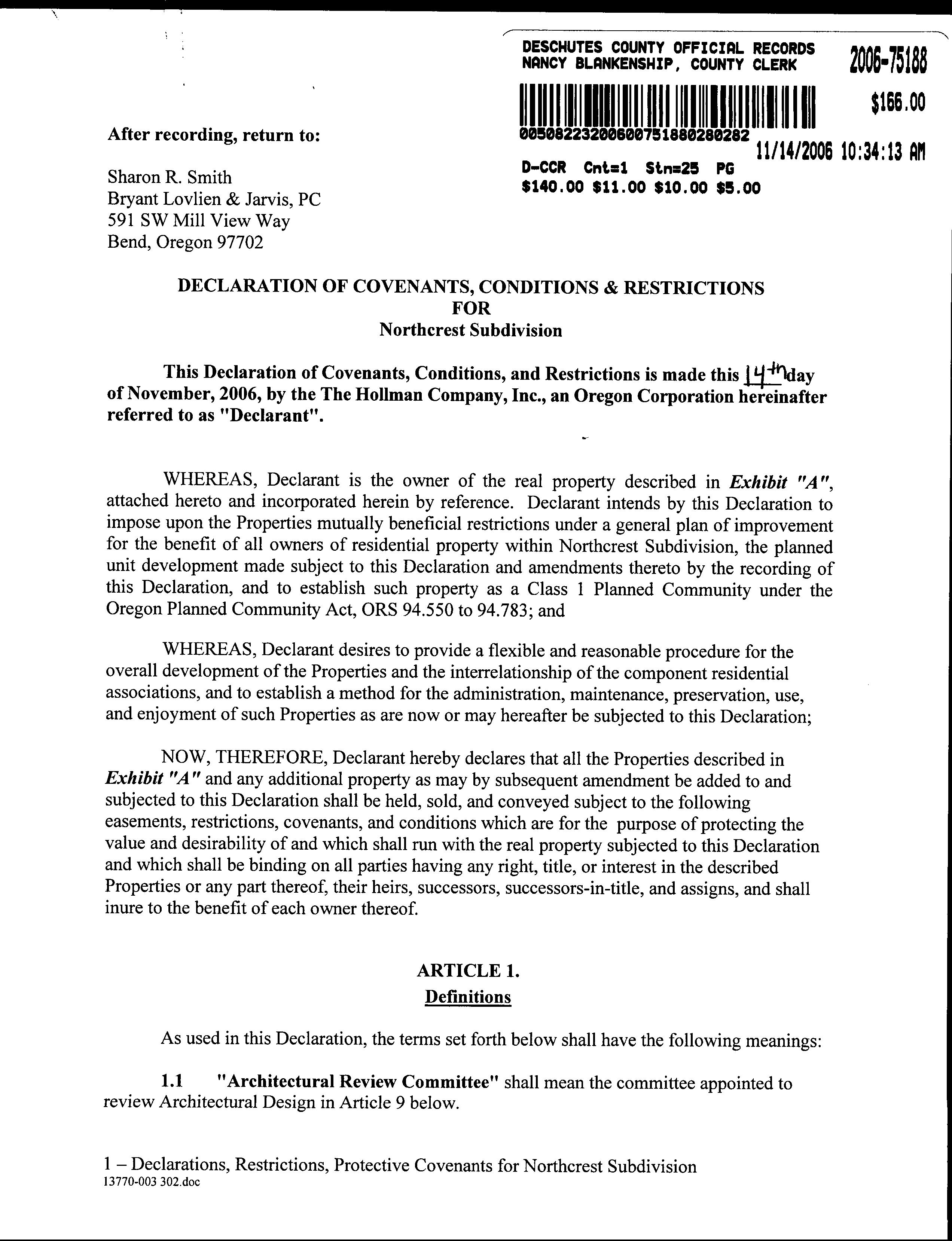 Northcrest Subdivision CC&R's