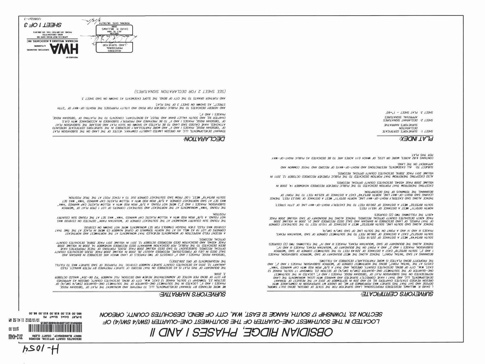 Obsidian Ridge Ph 1 & 2 CC&R's by info-deschutestitle - Issuu