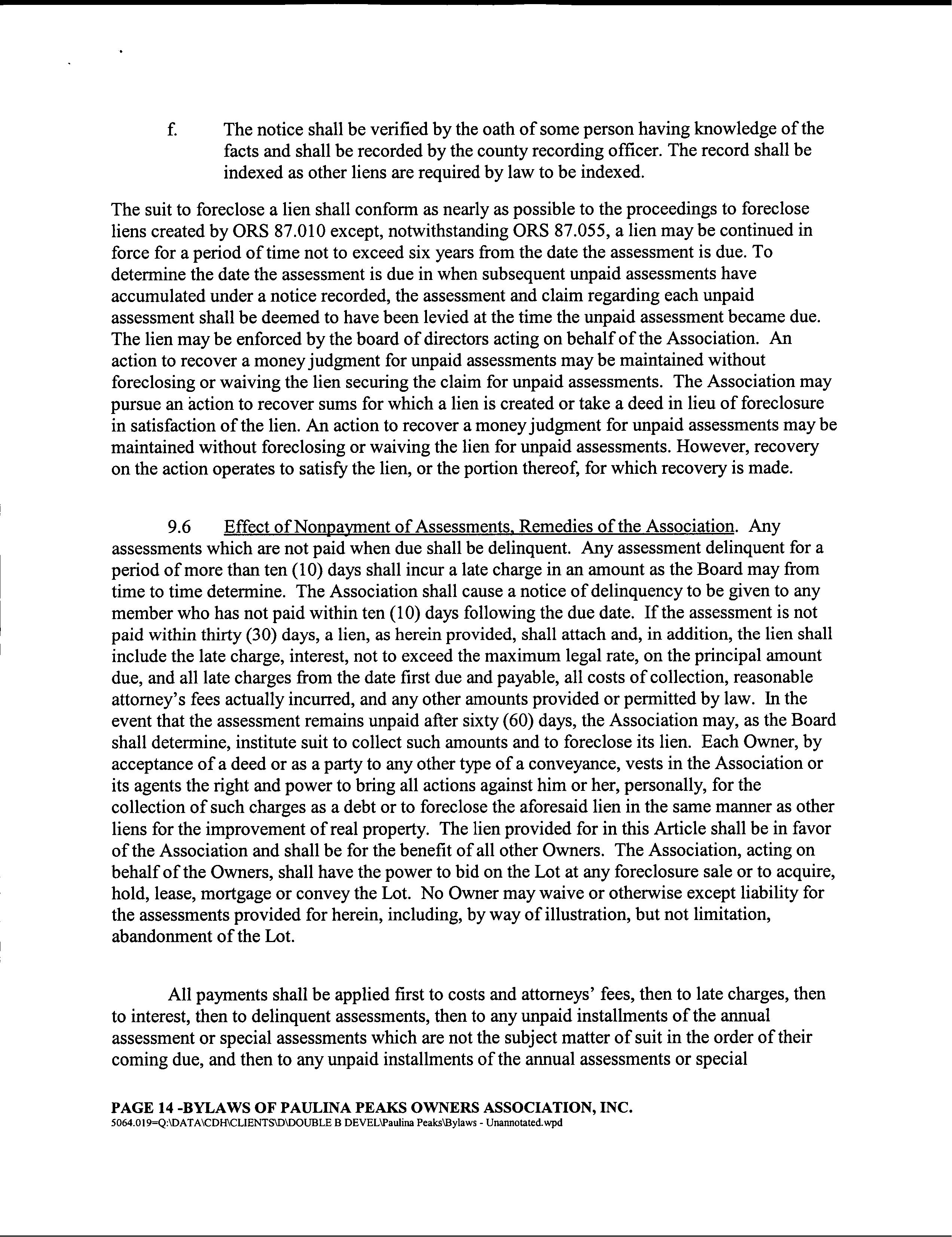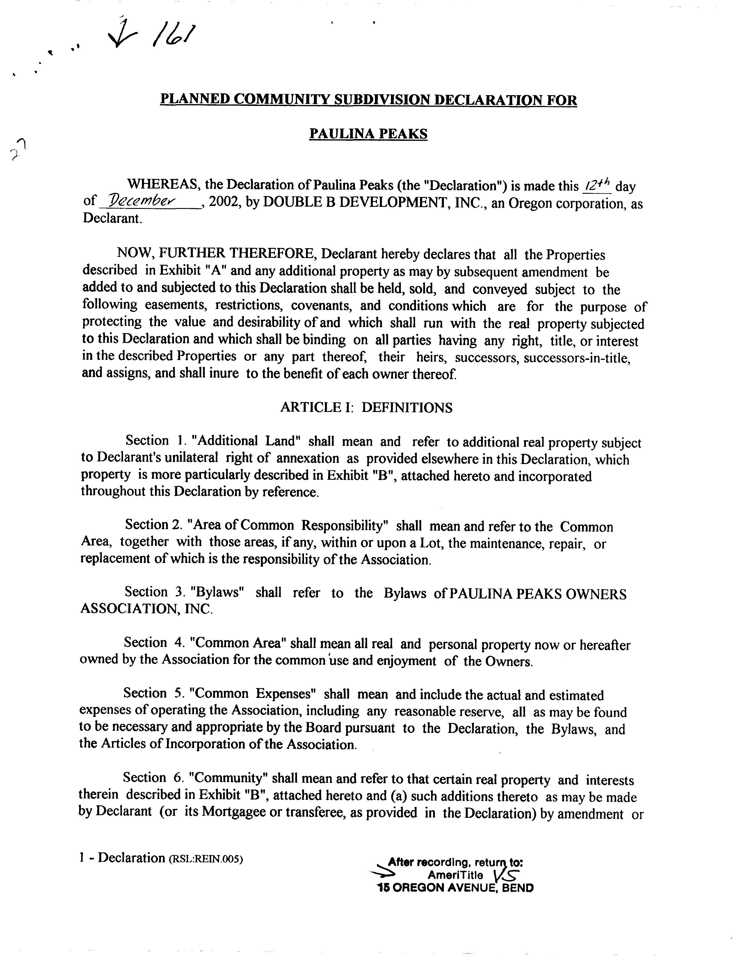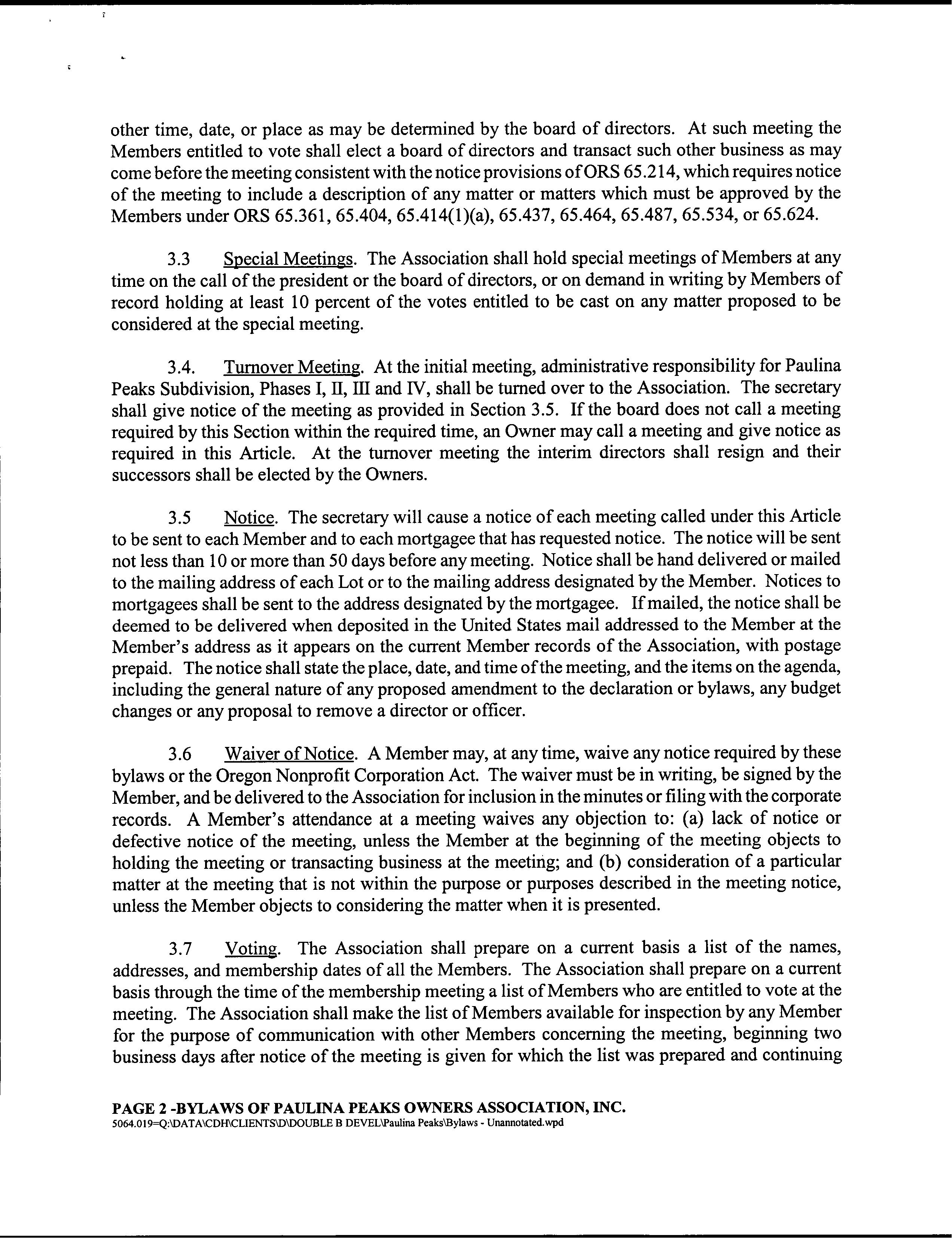 Paulina Peaks Ph 2 CC&R's
