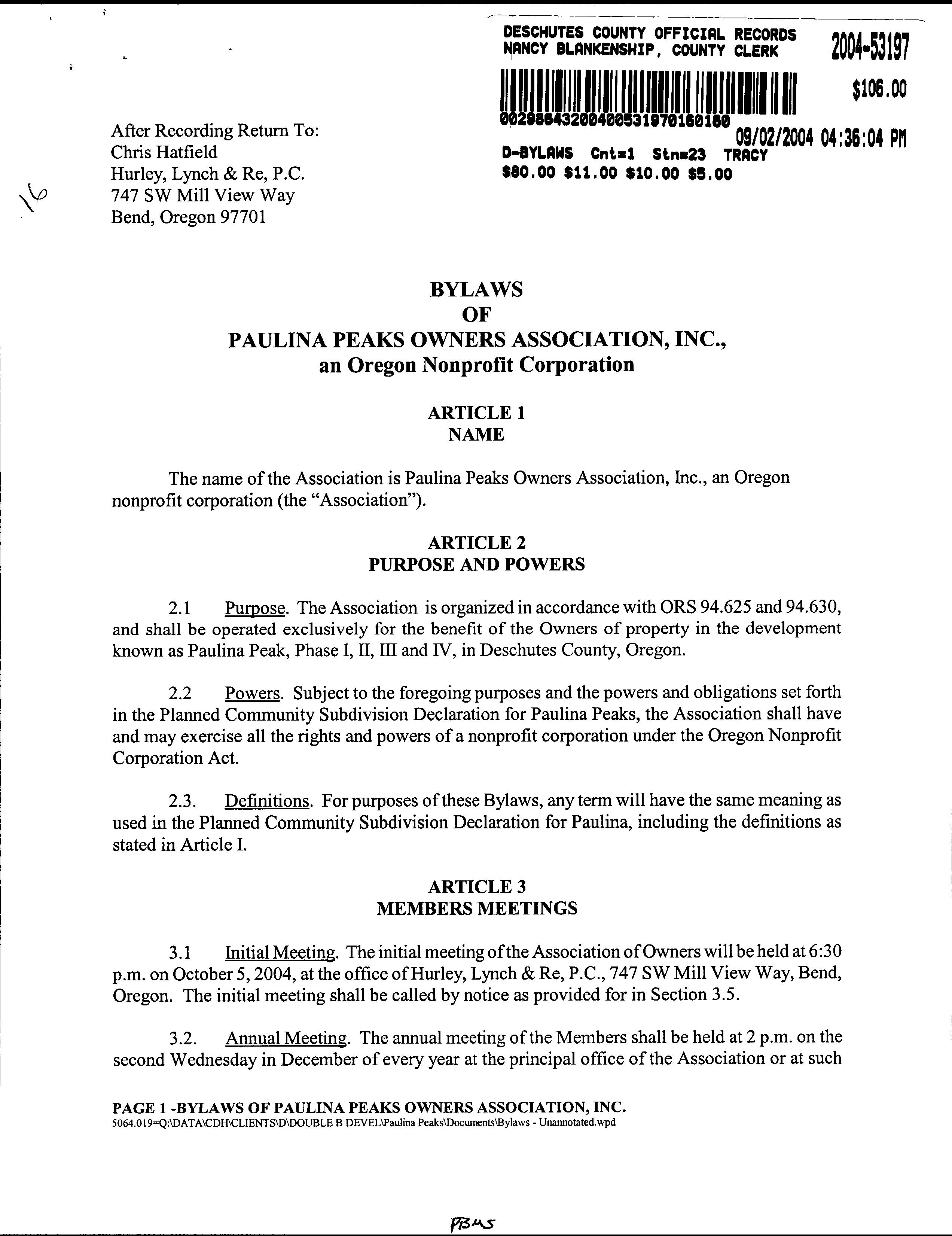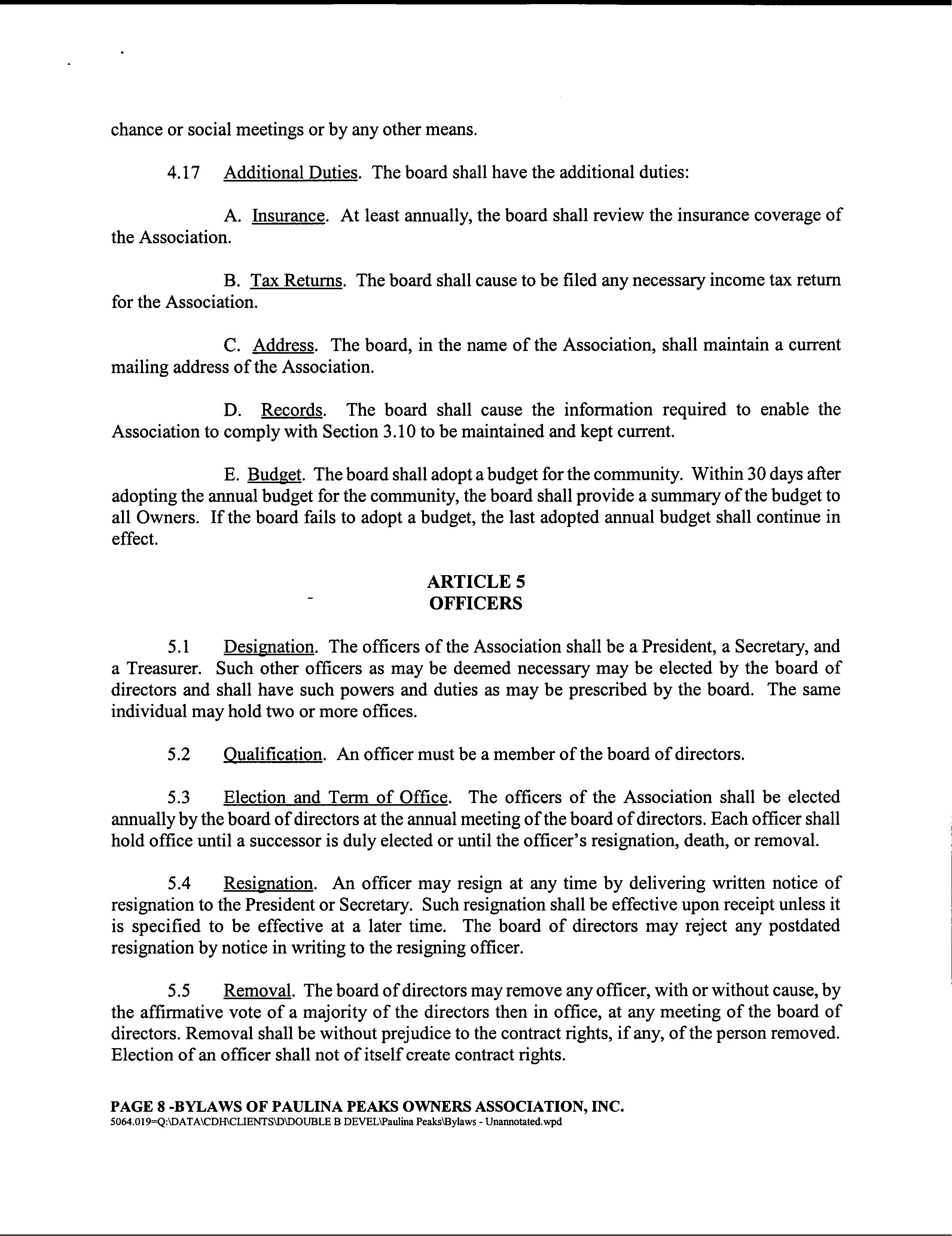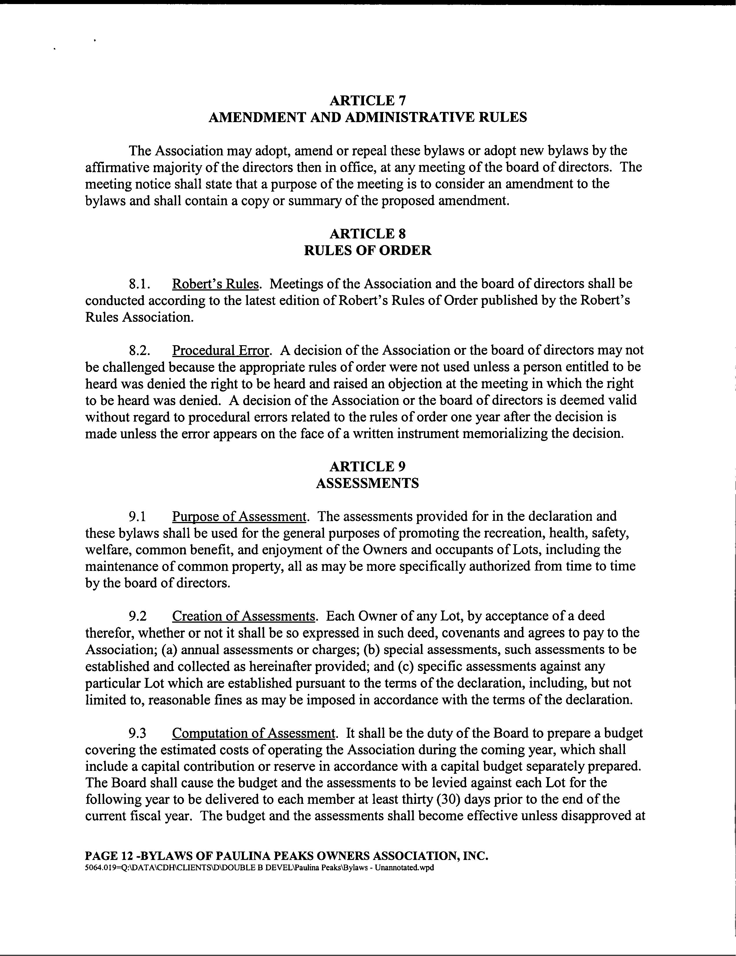 Paulina Peaks Ph 2 CC&R's