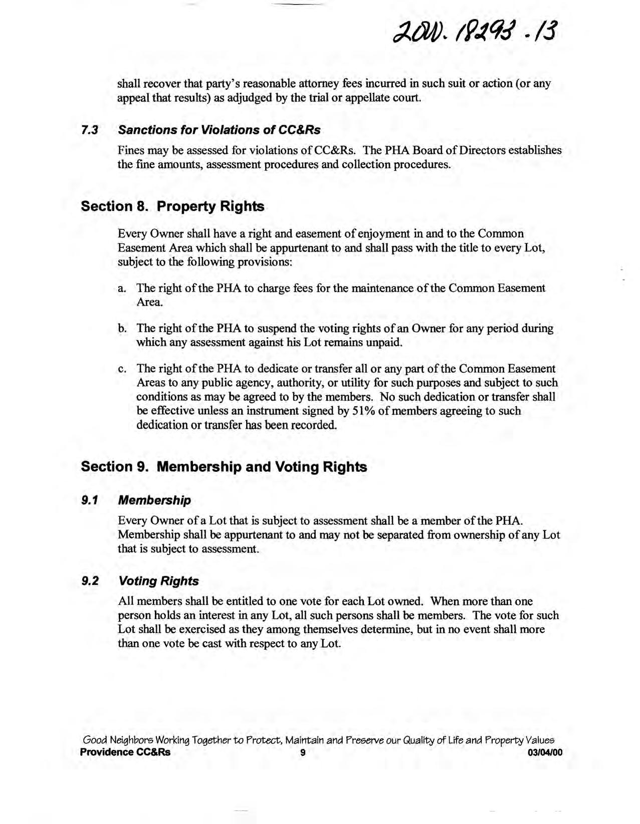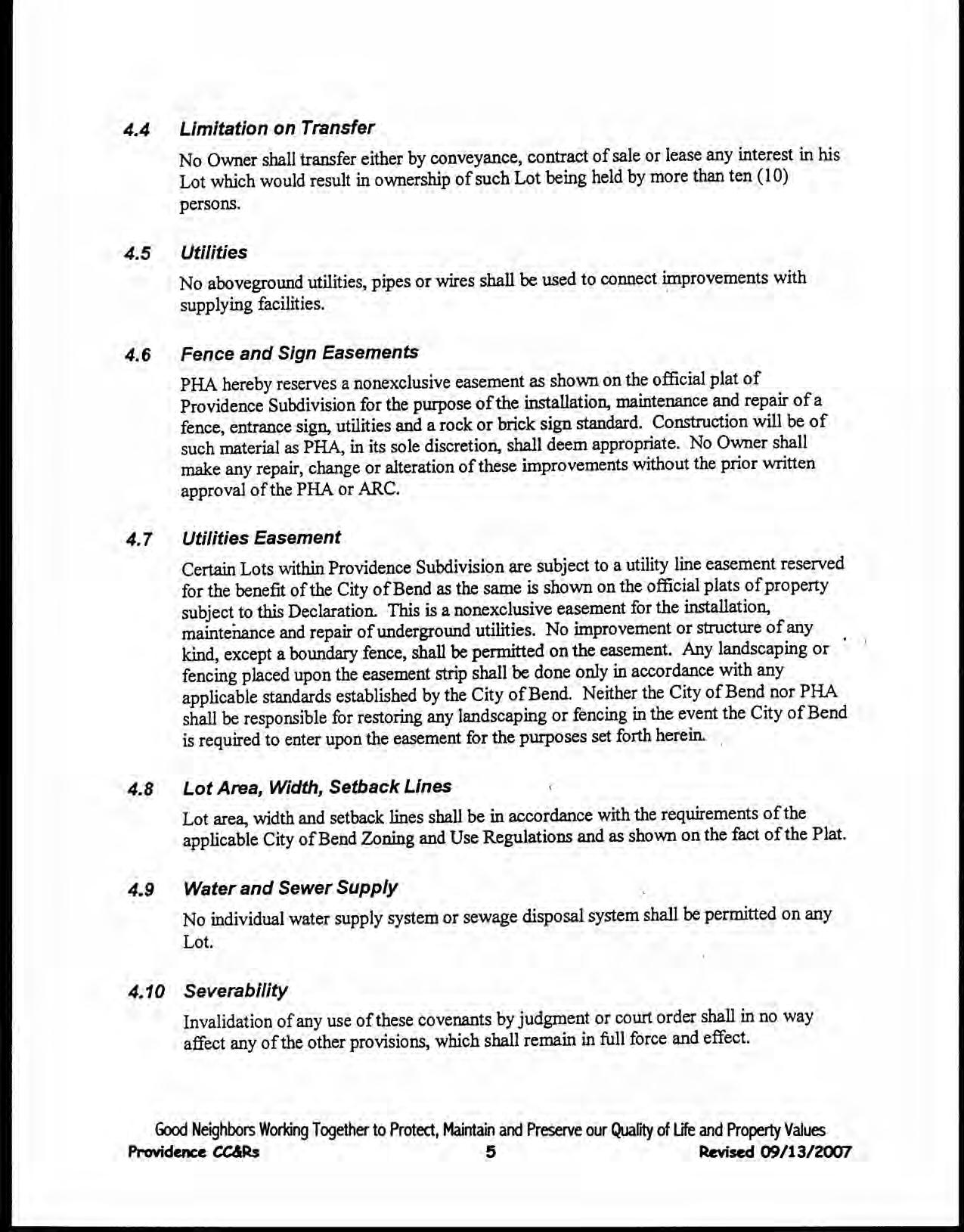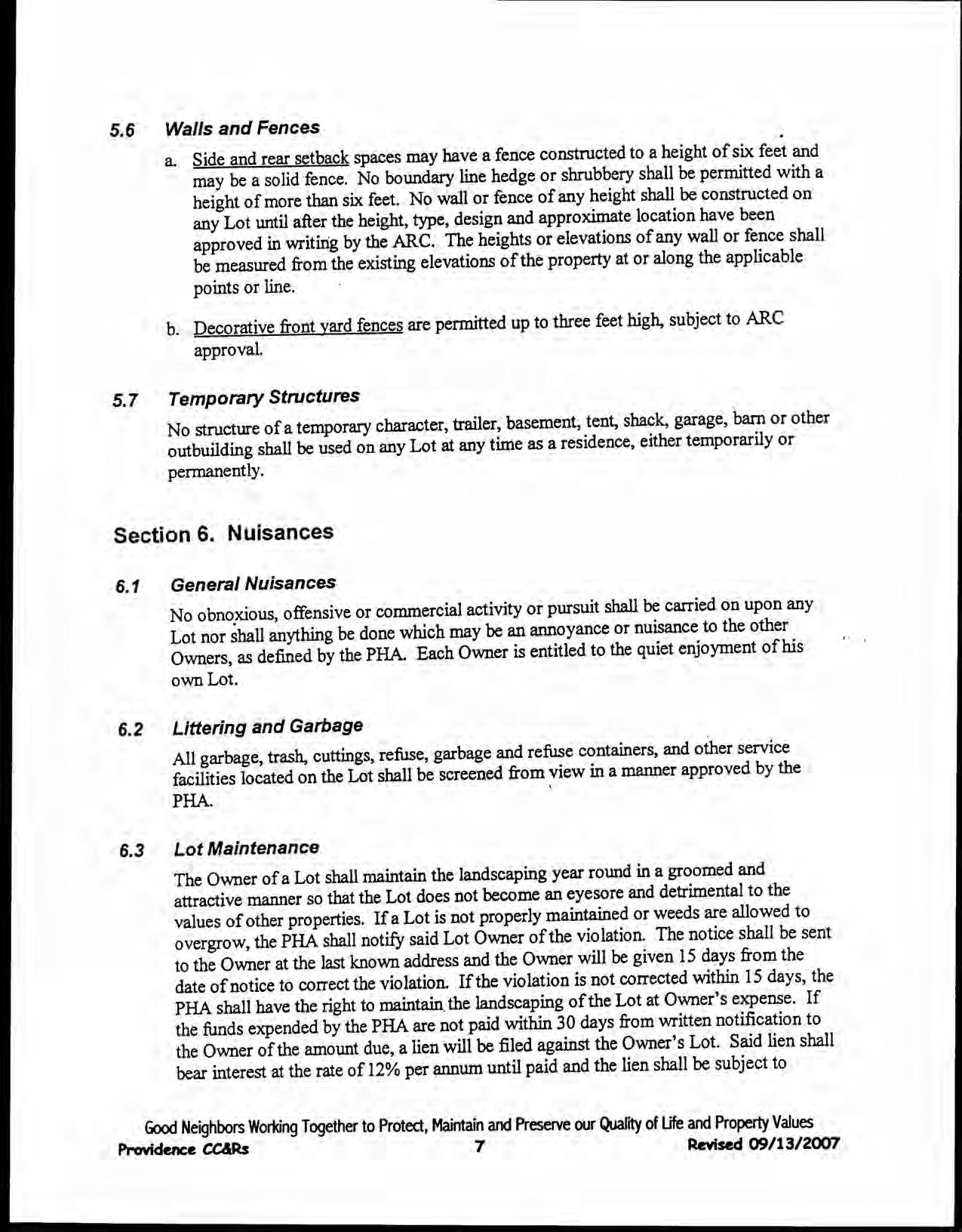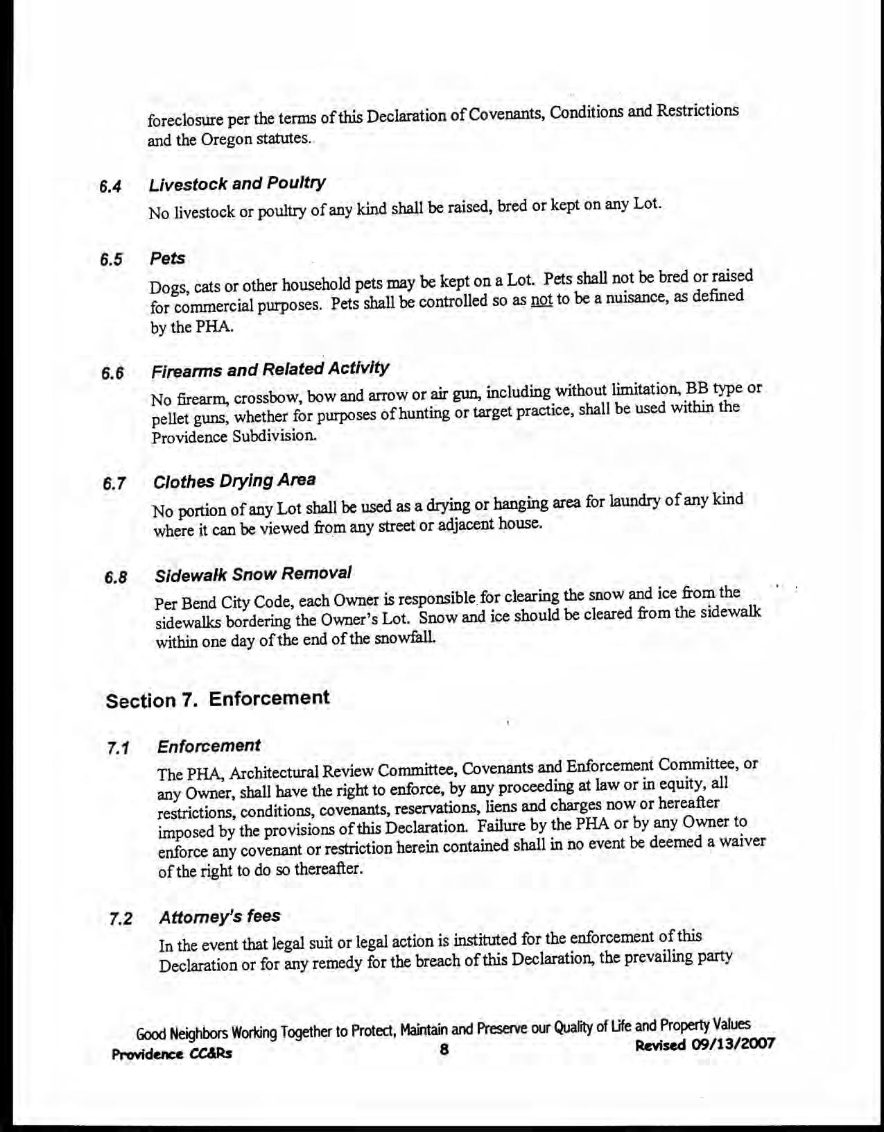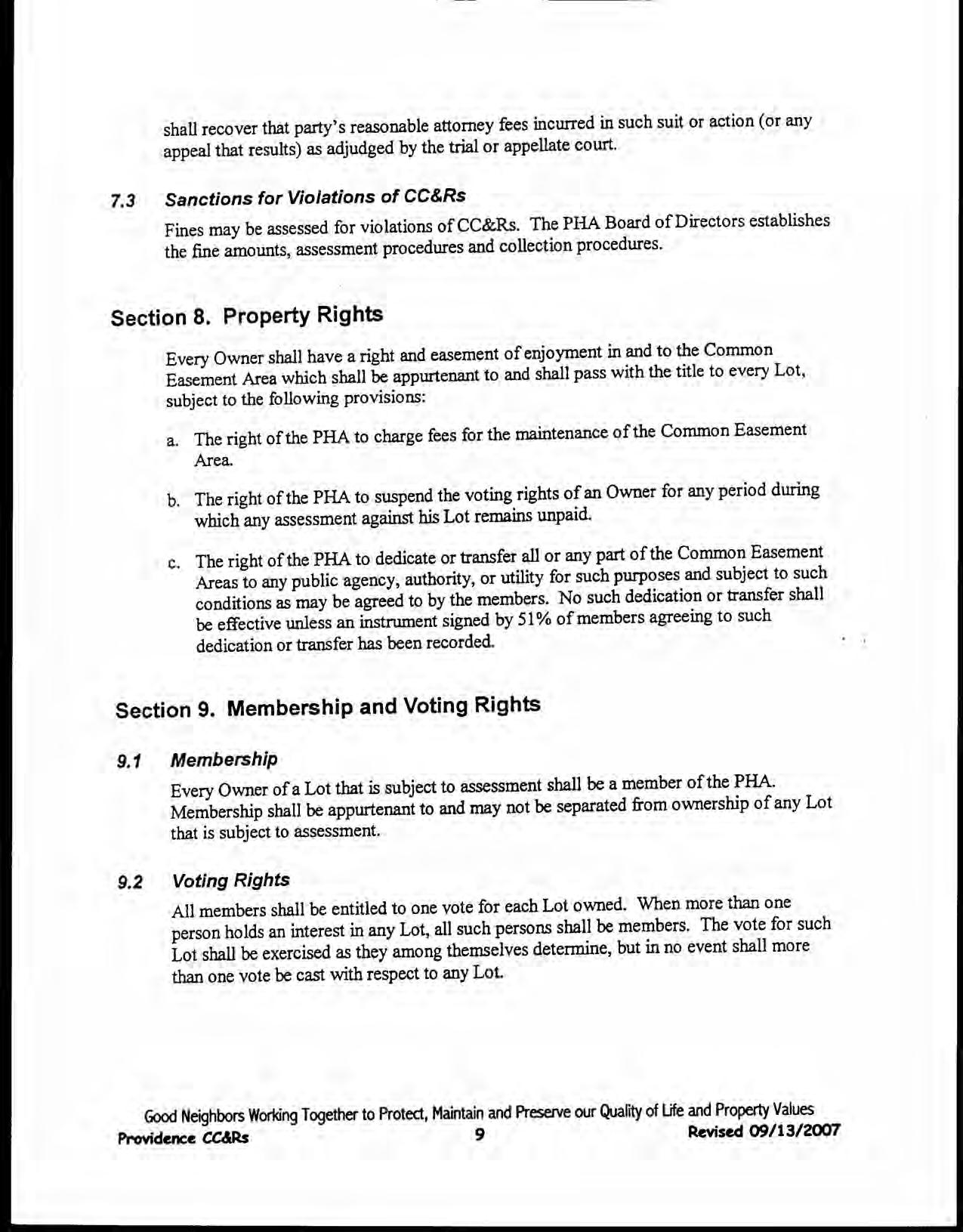 Providence, Phase 8 - CC&R's