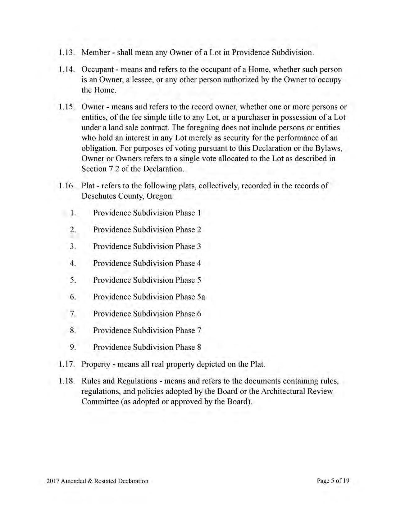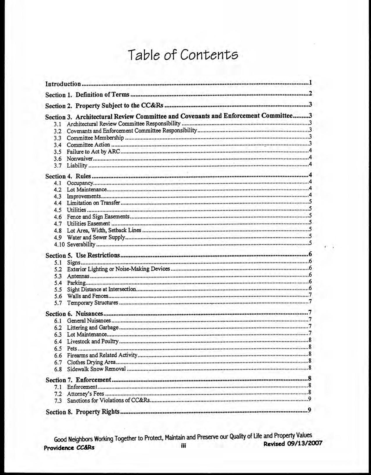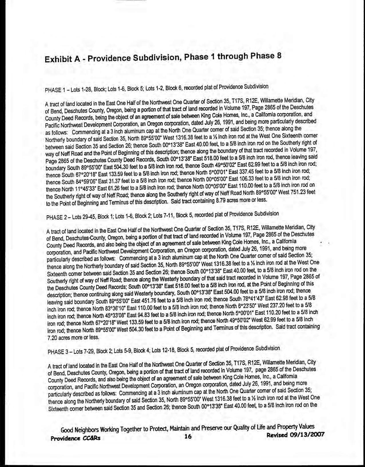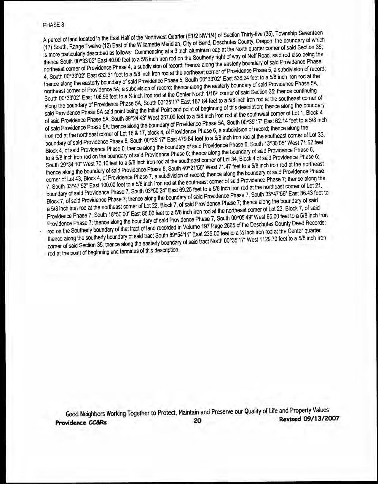 Providence, Phase 8 - CC&R's