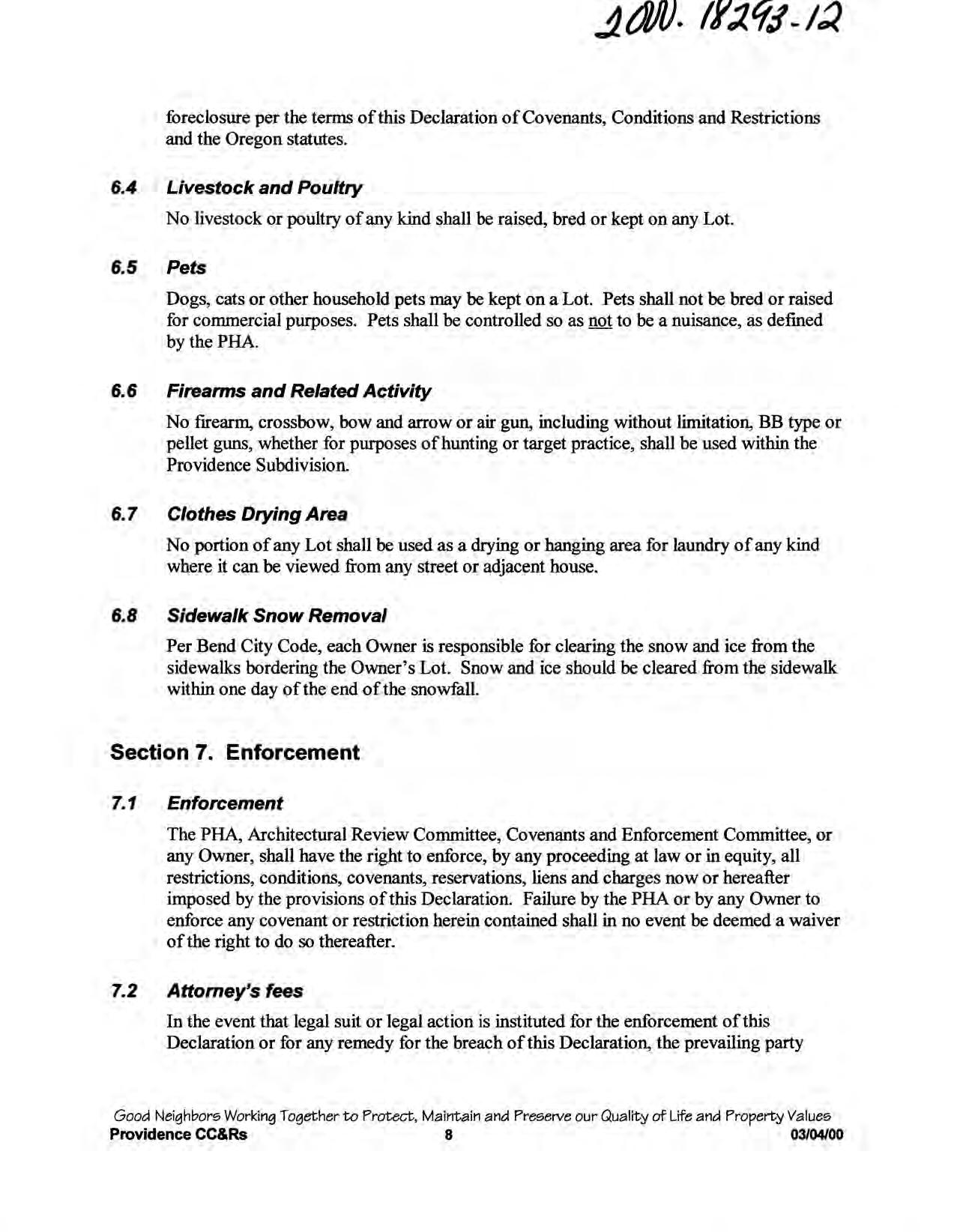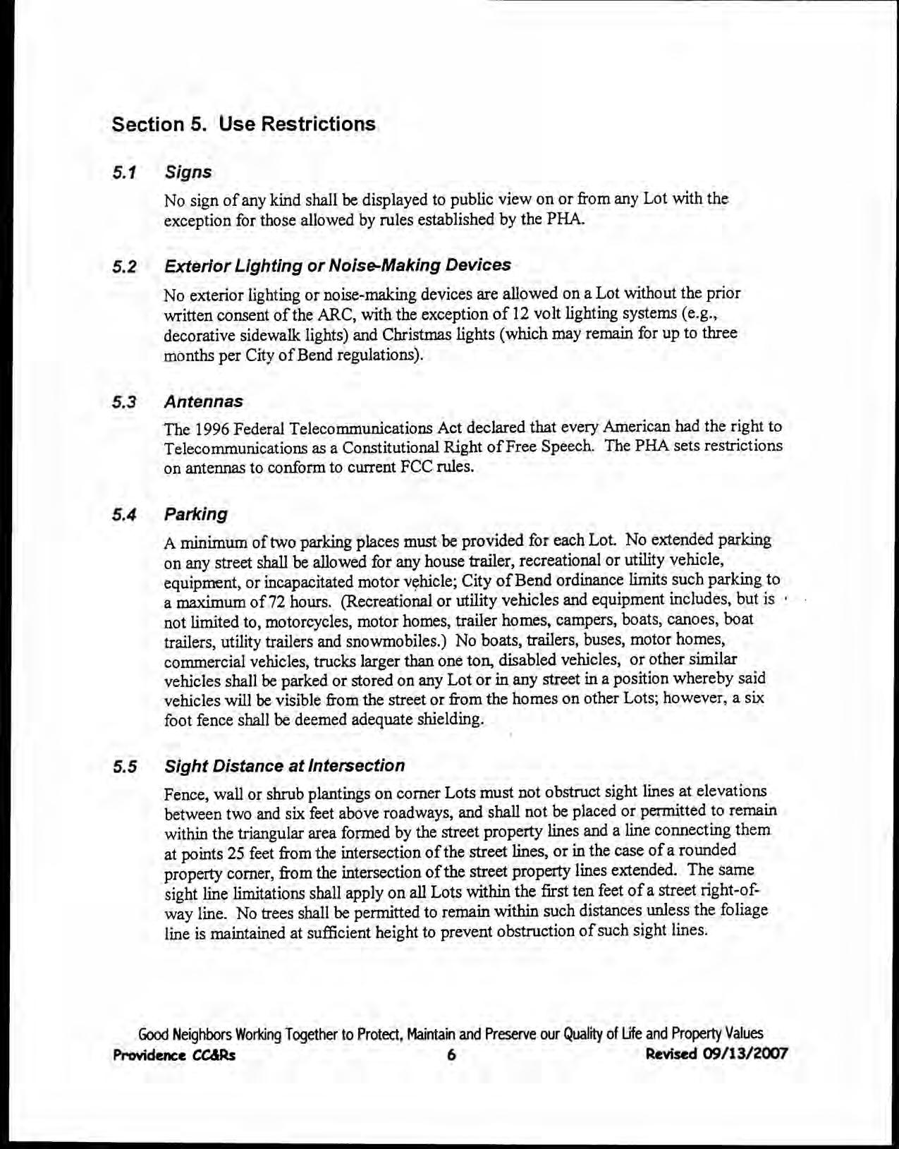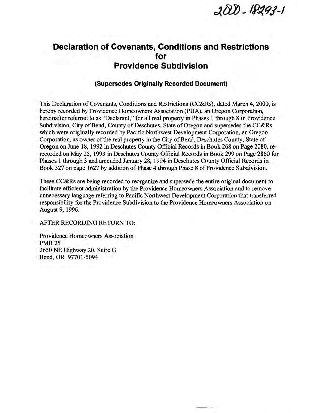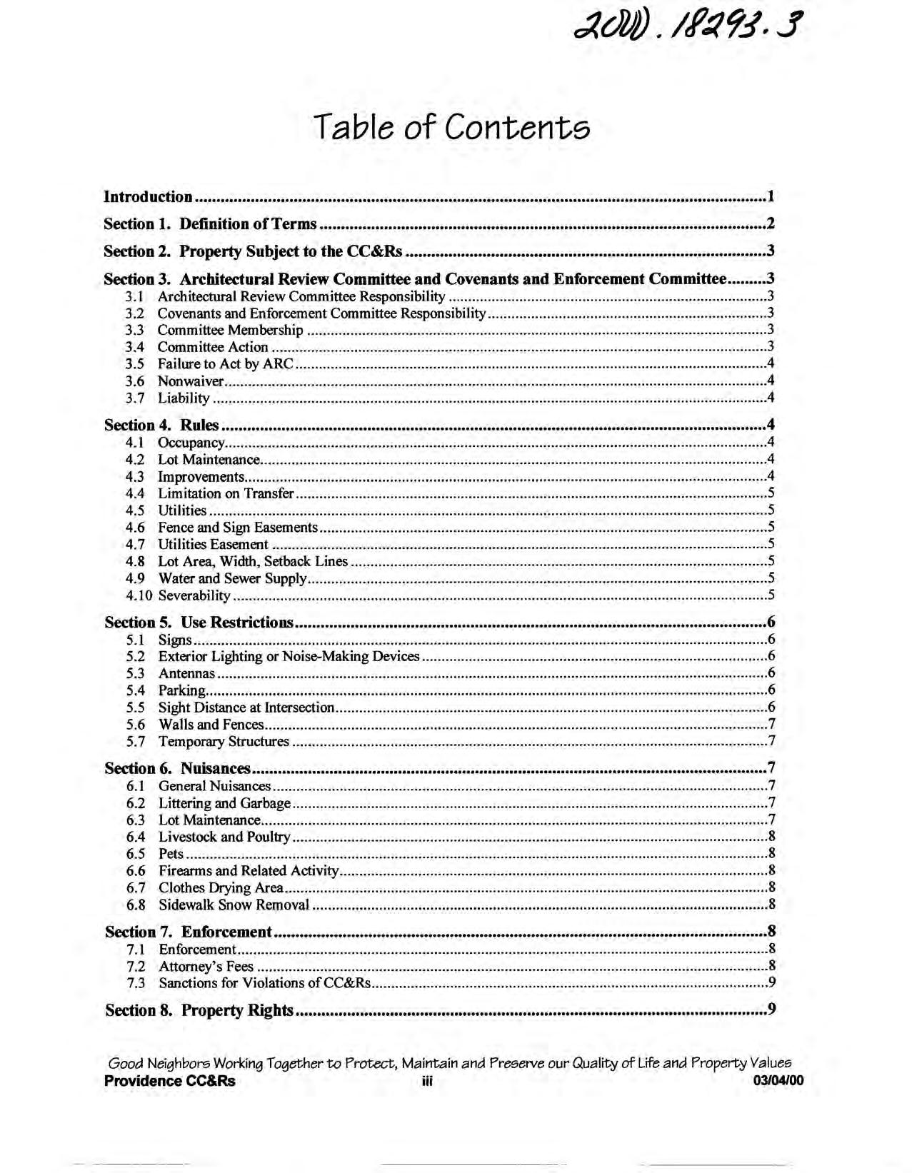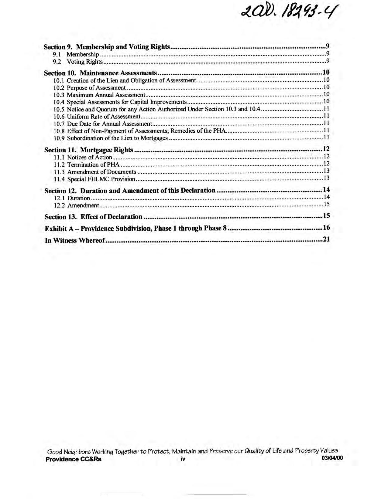Providence, Phase 8 - CC&R's