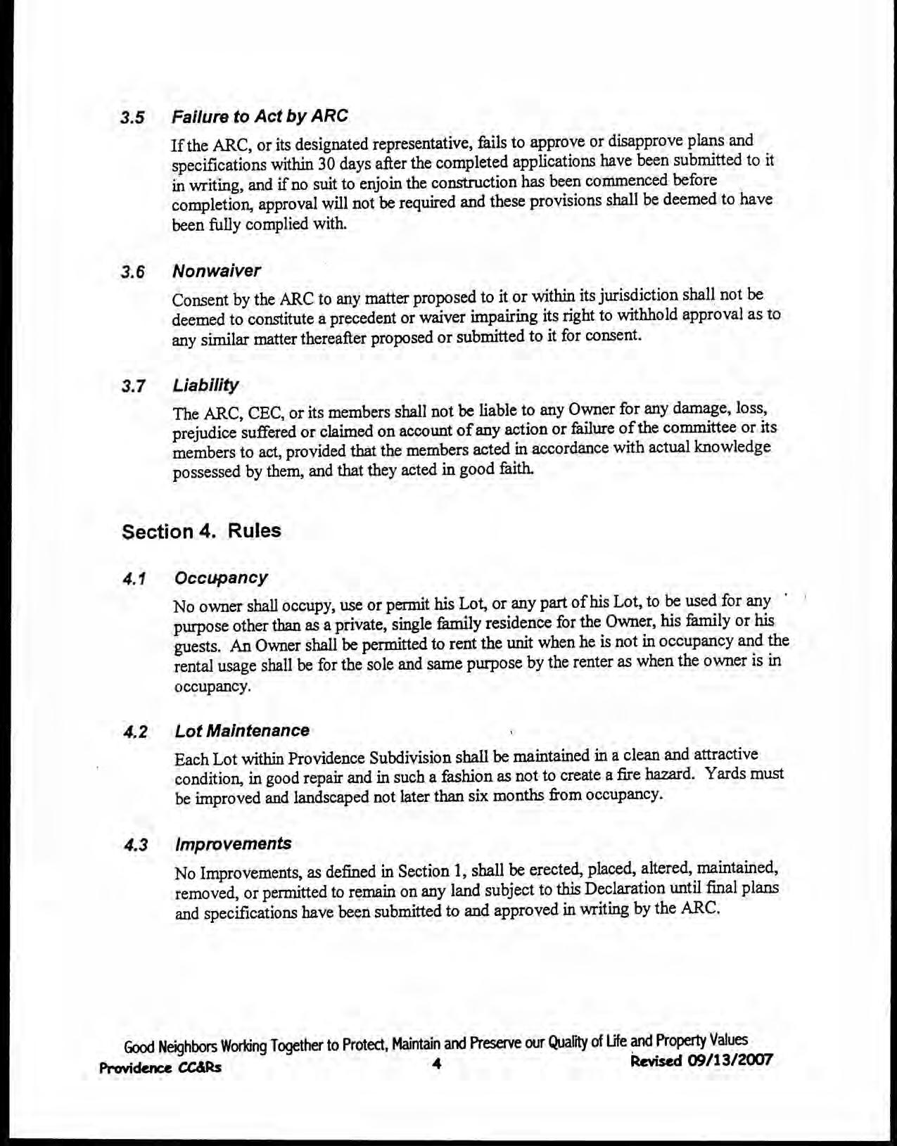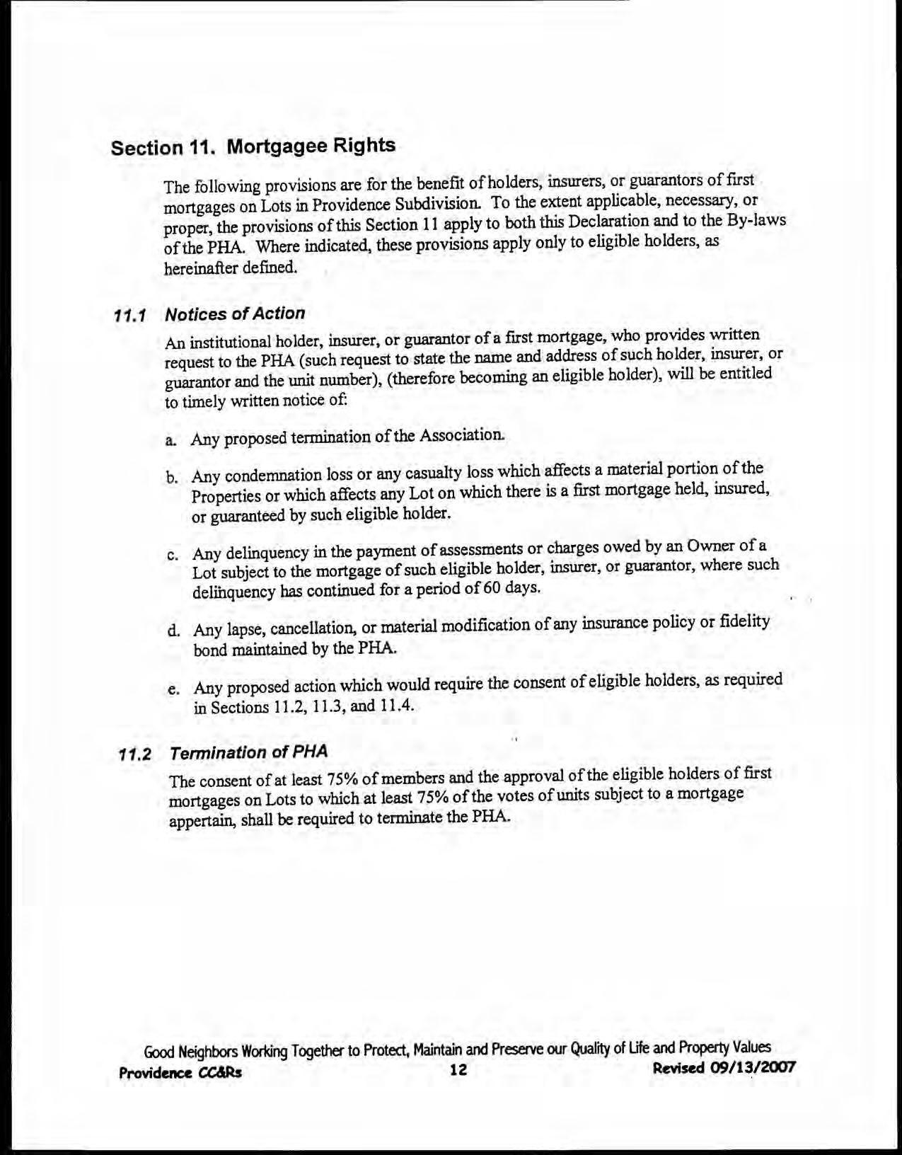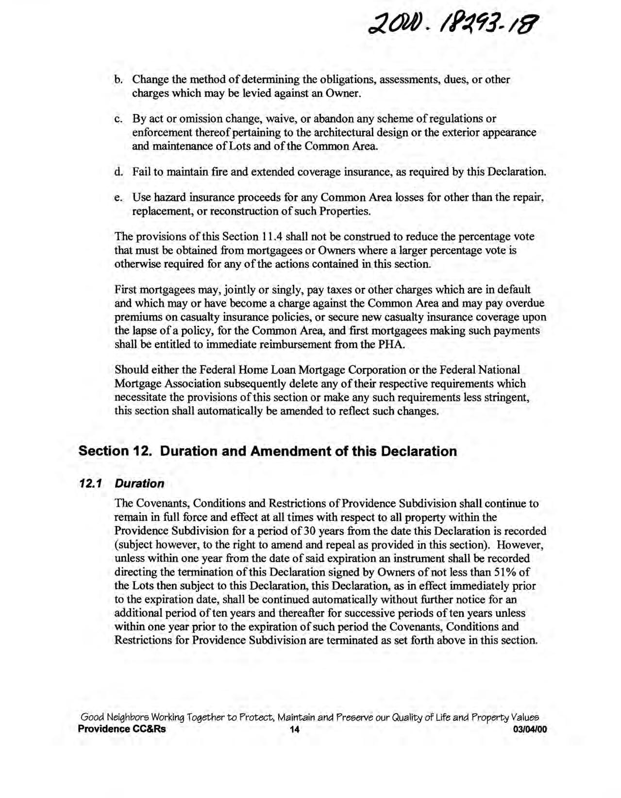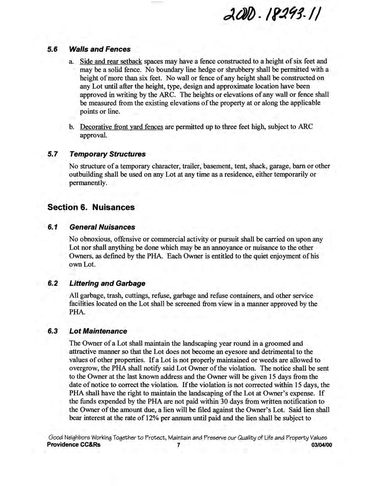 Providence, Phase 8 - CC&R's