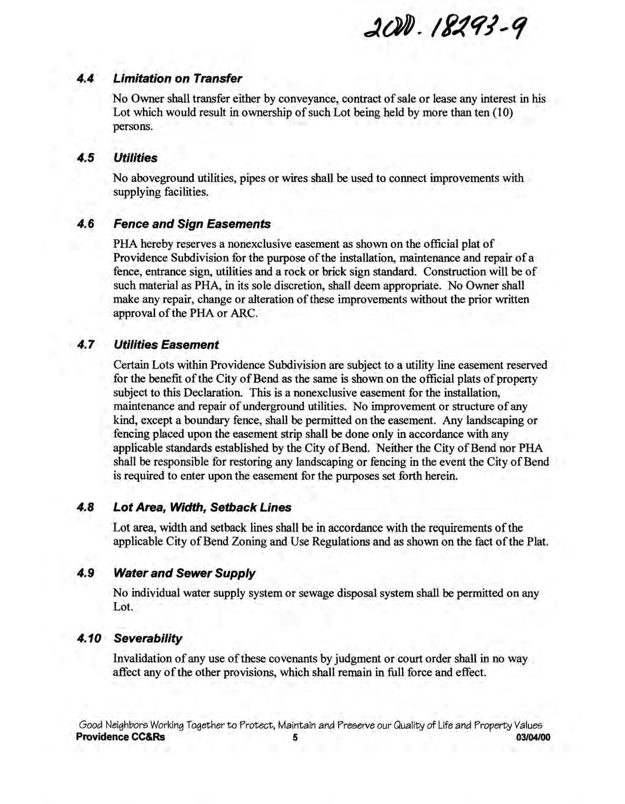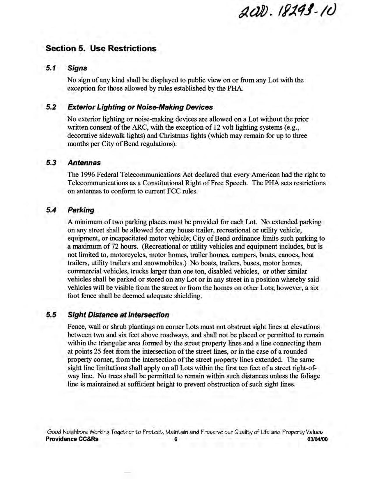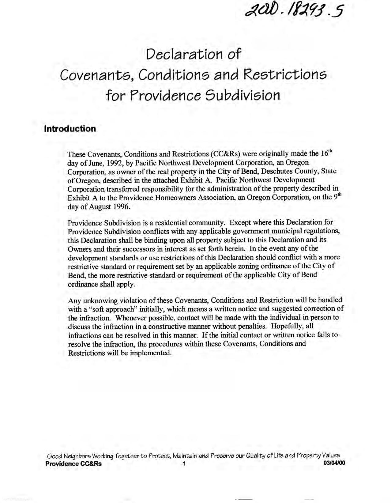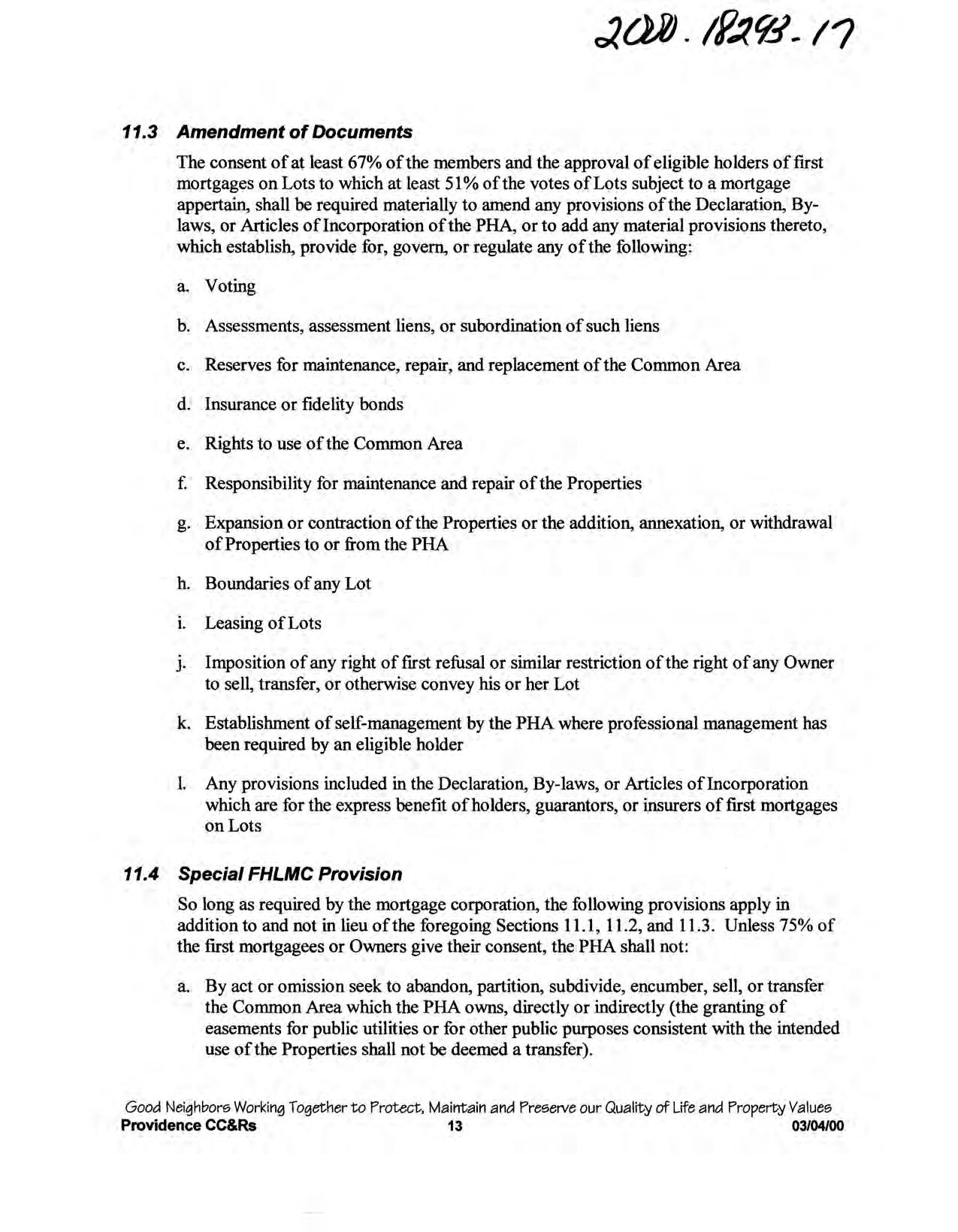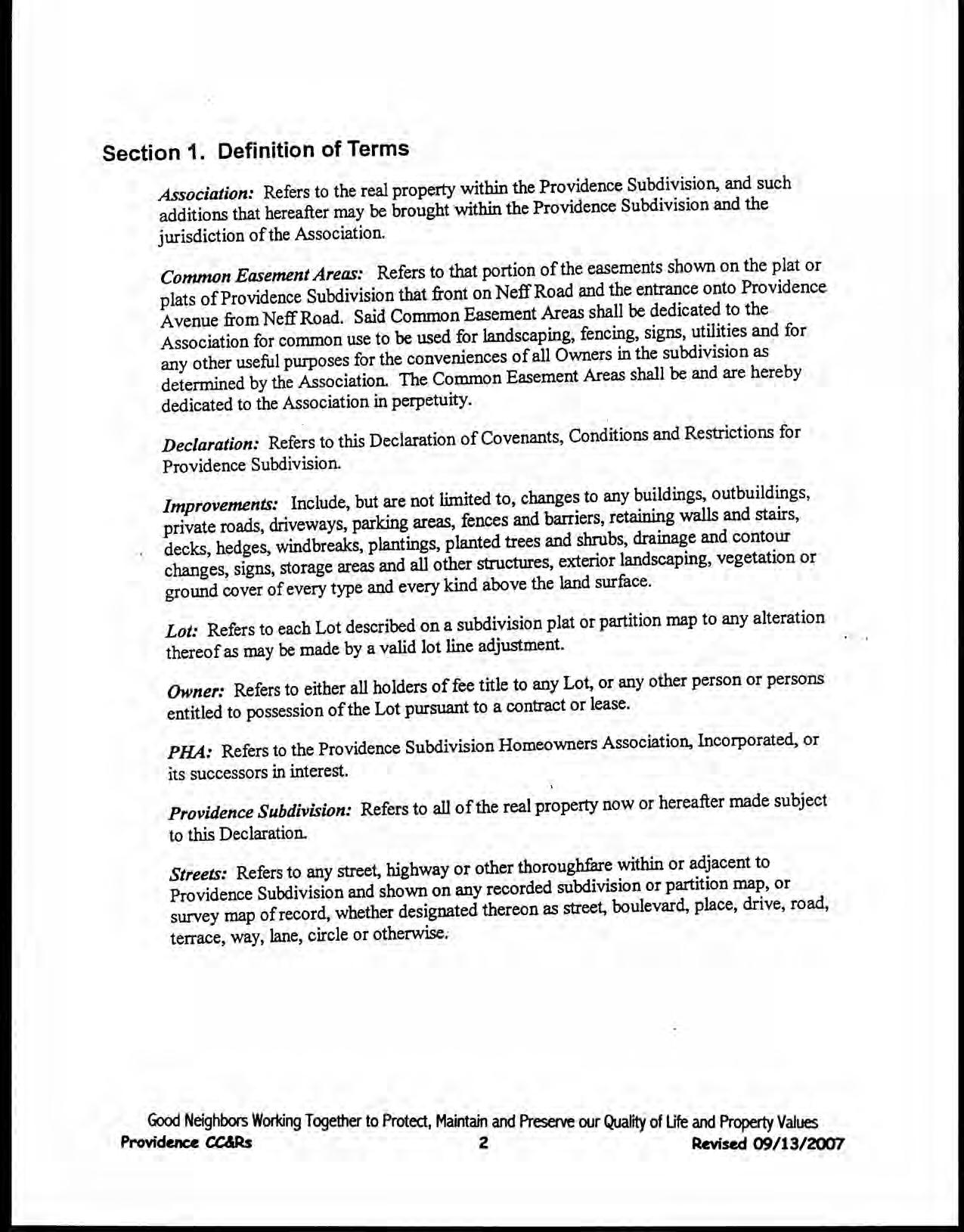 Providence, Phase 8 - CC&R's