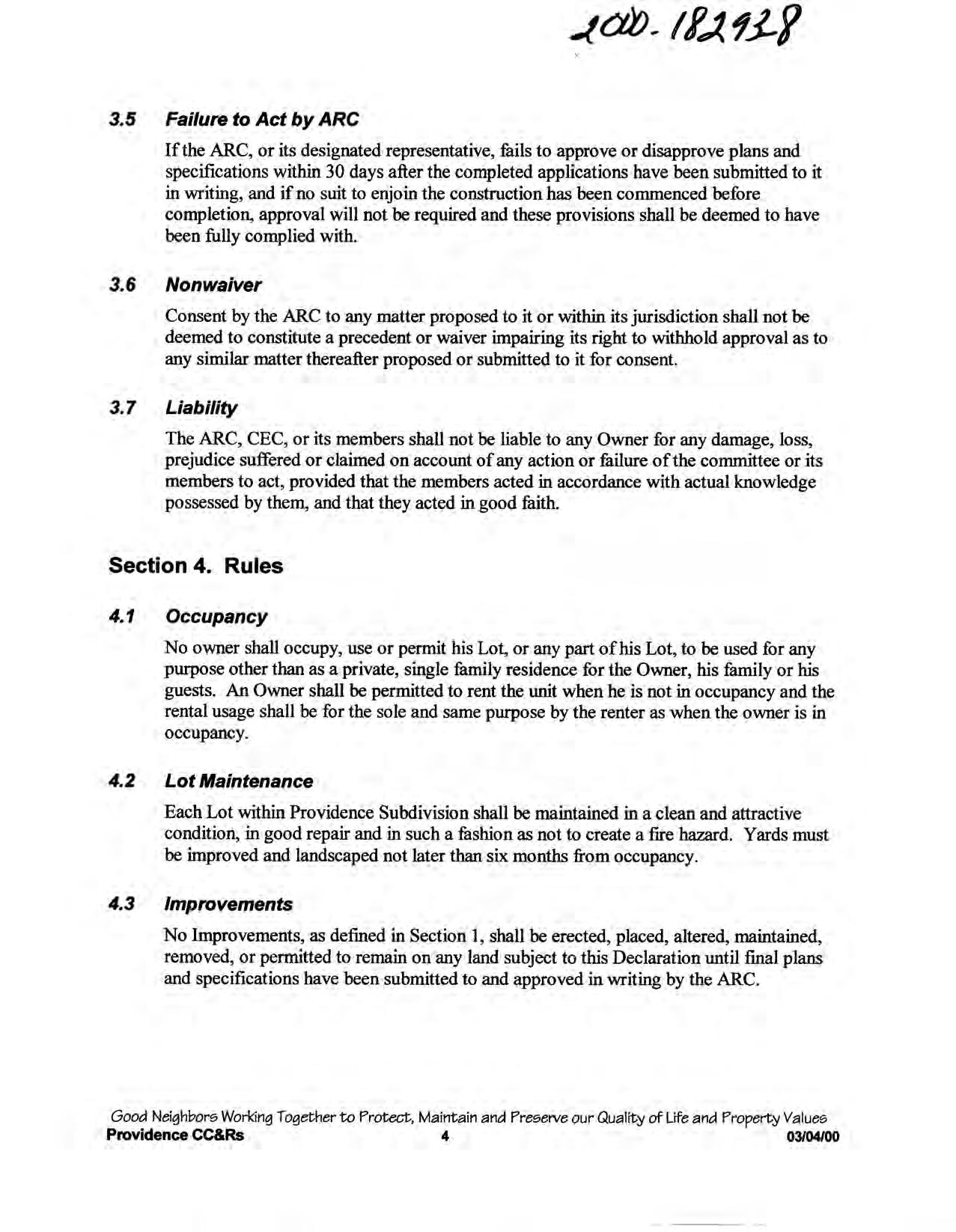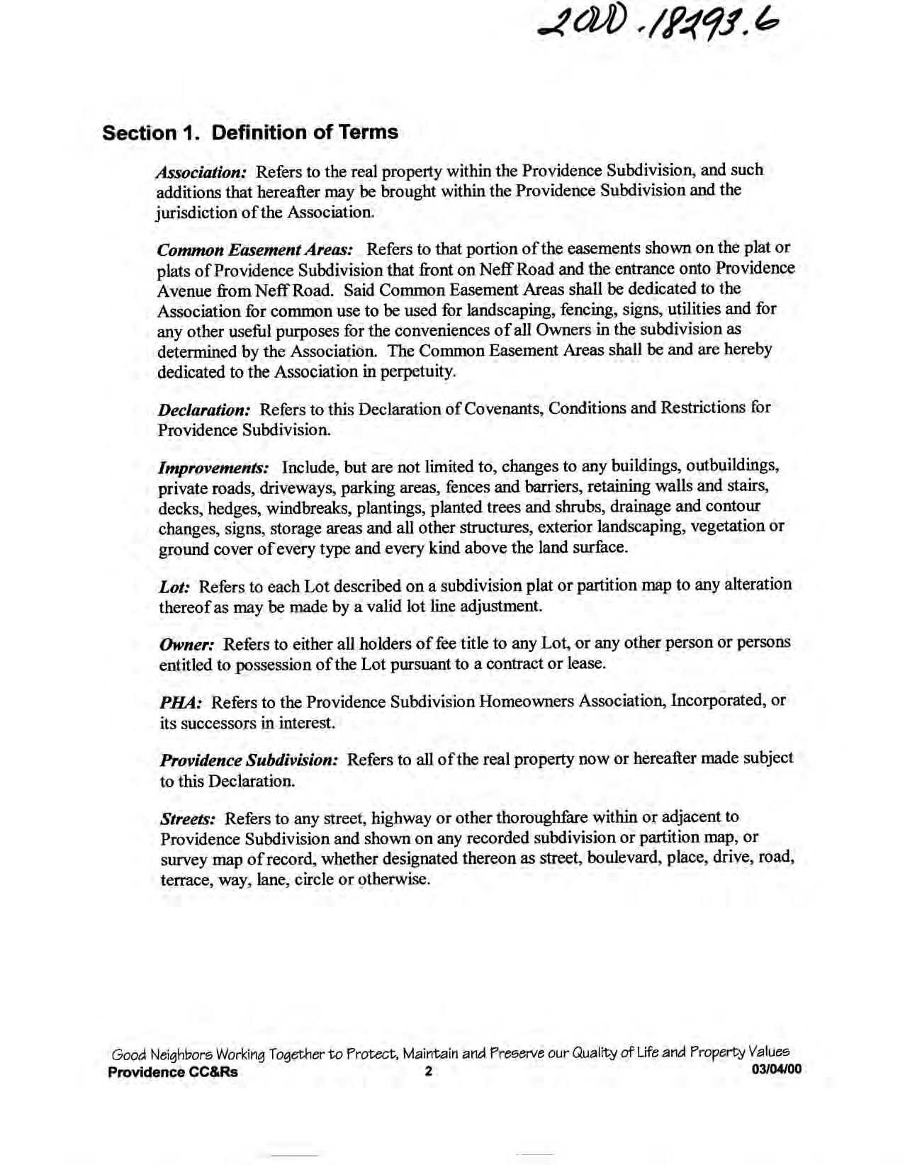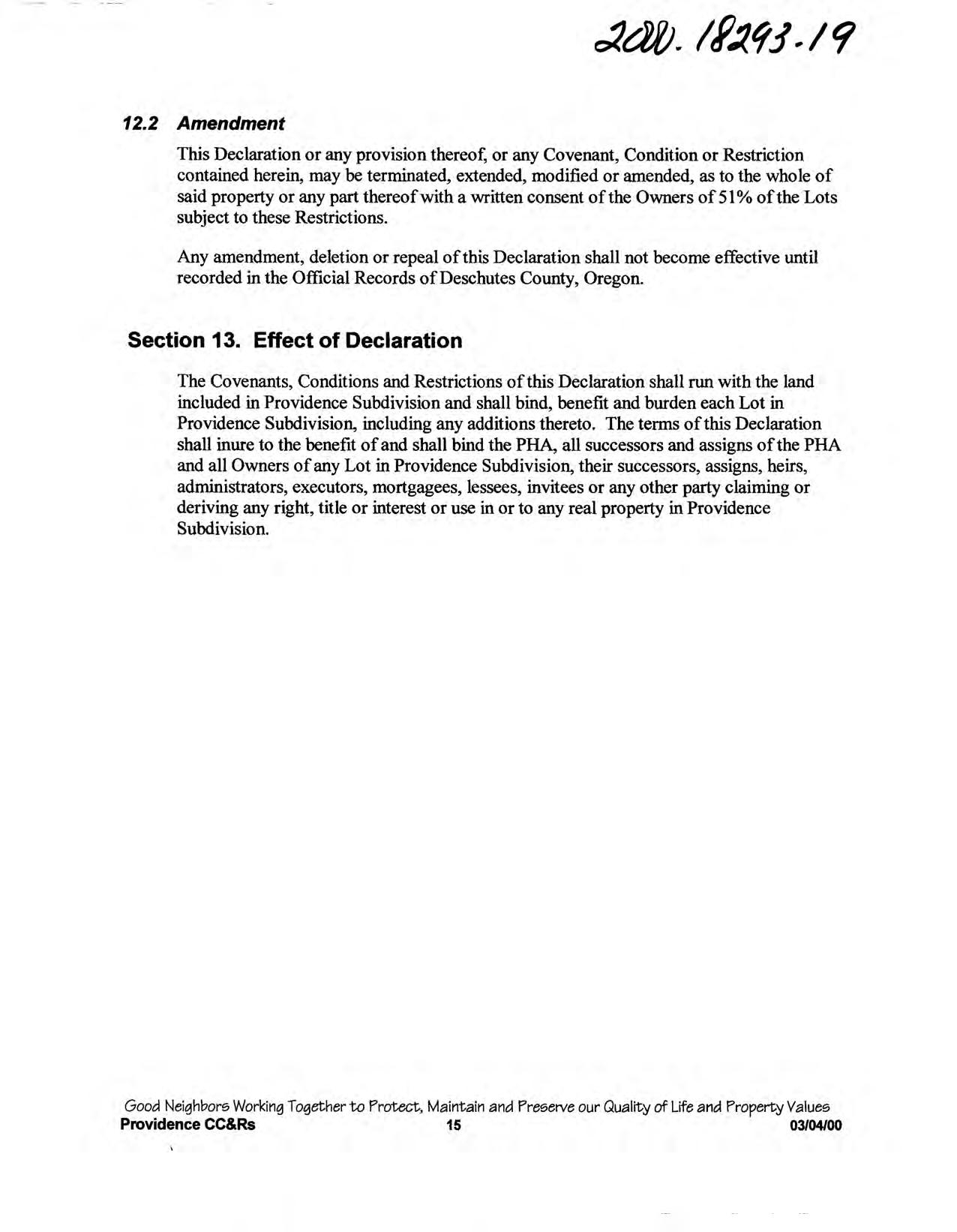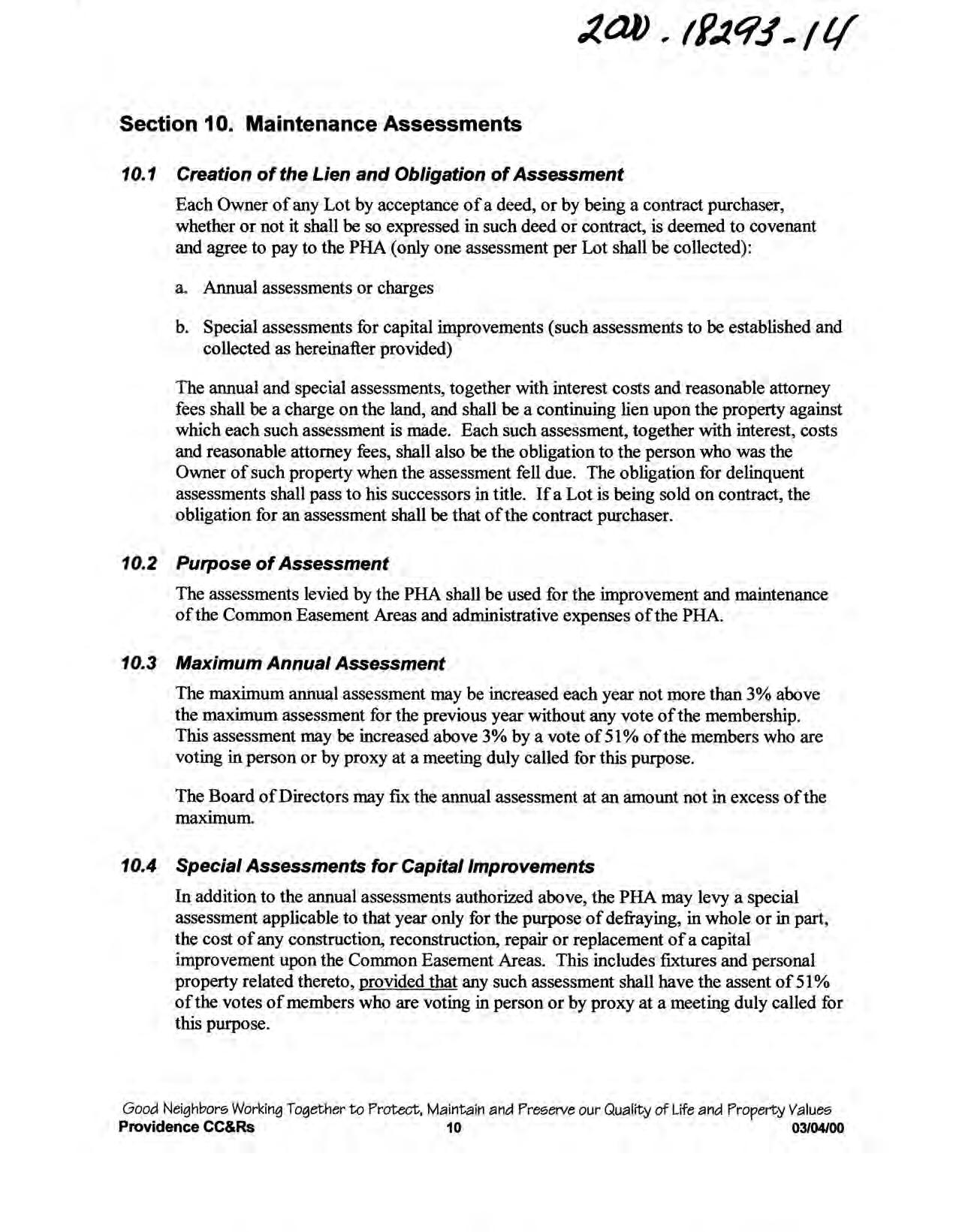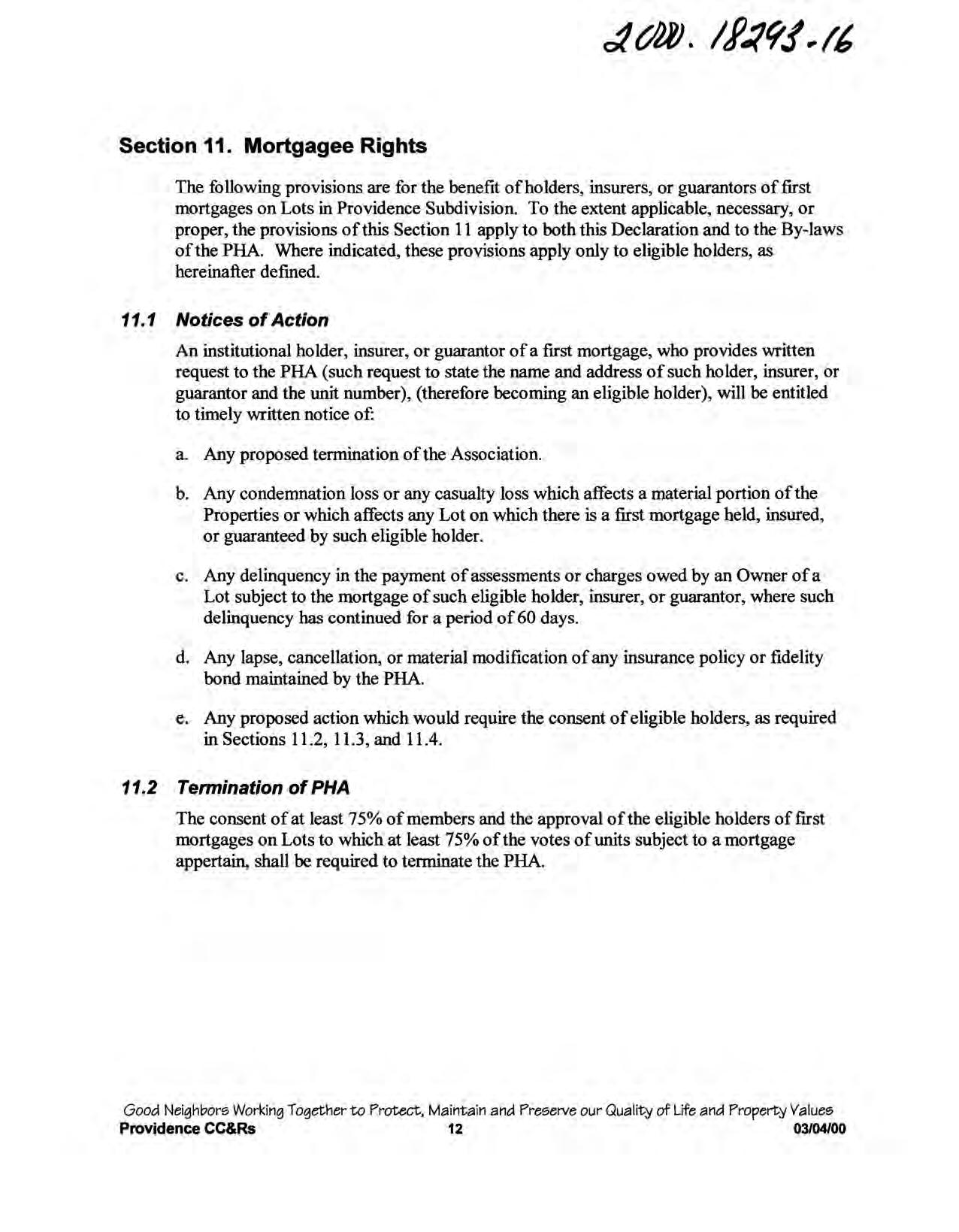 Providence, Phase 8 - CC&R's