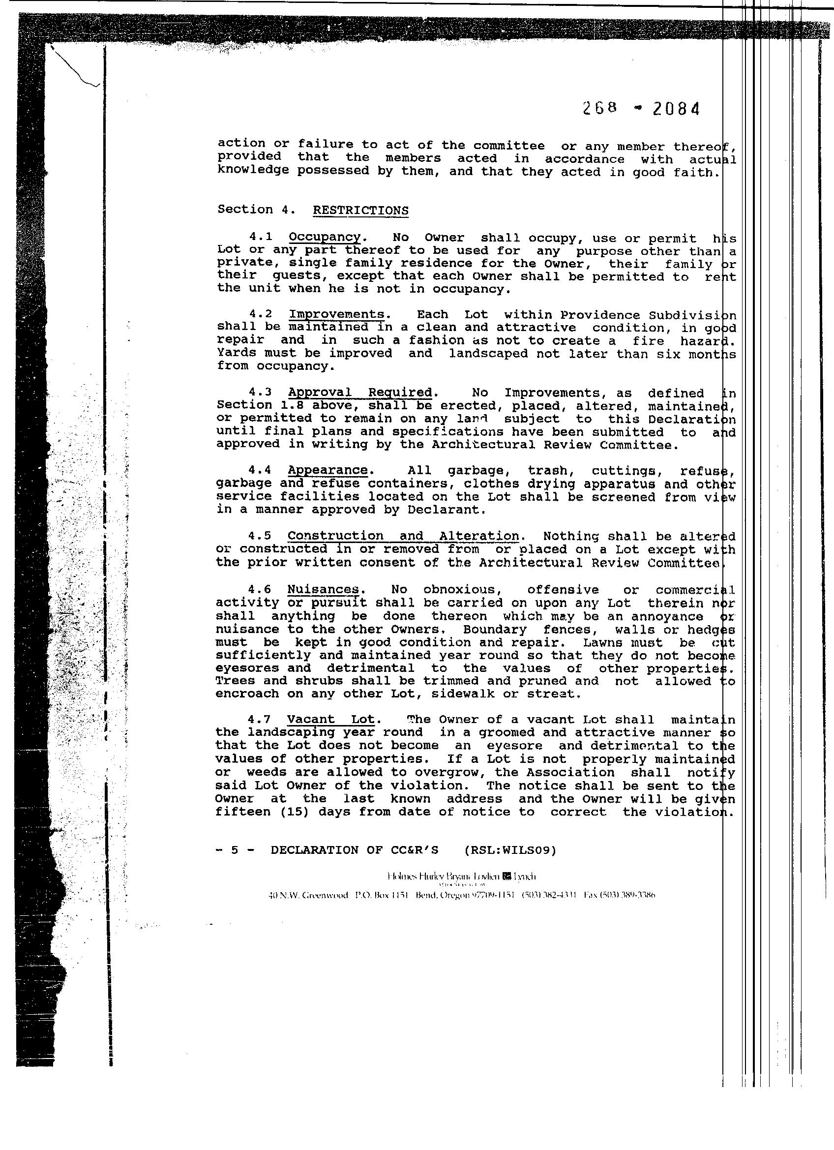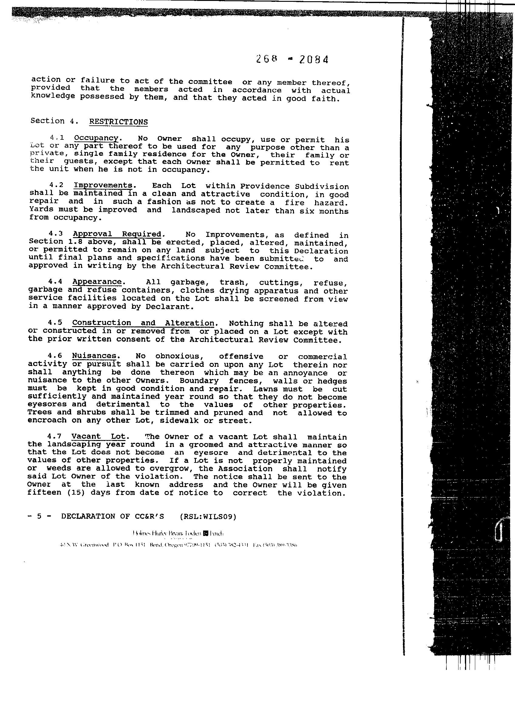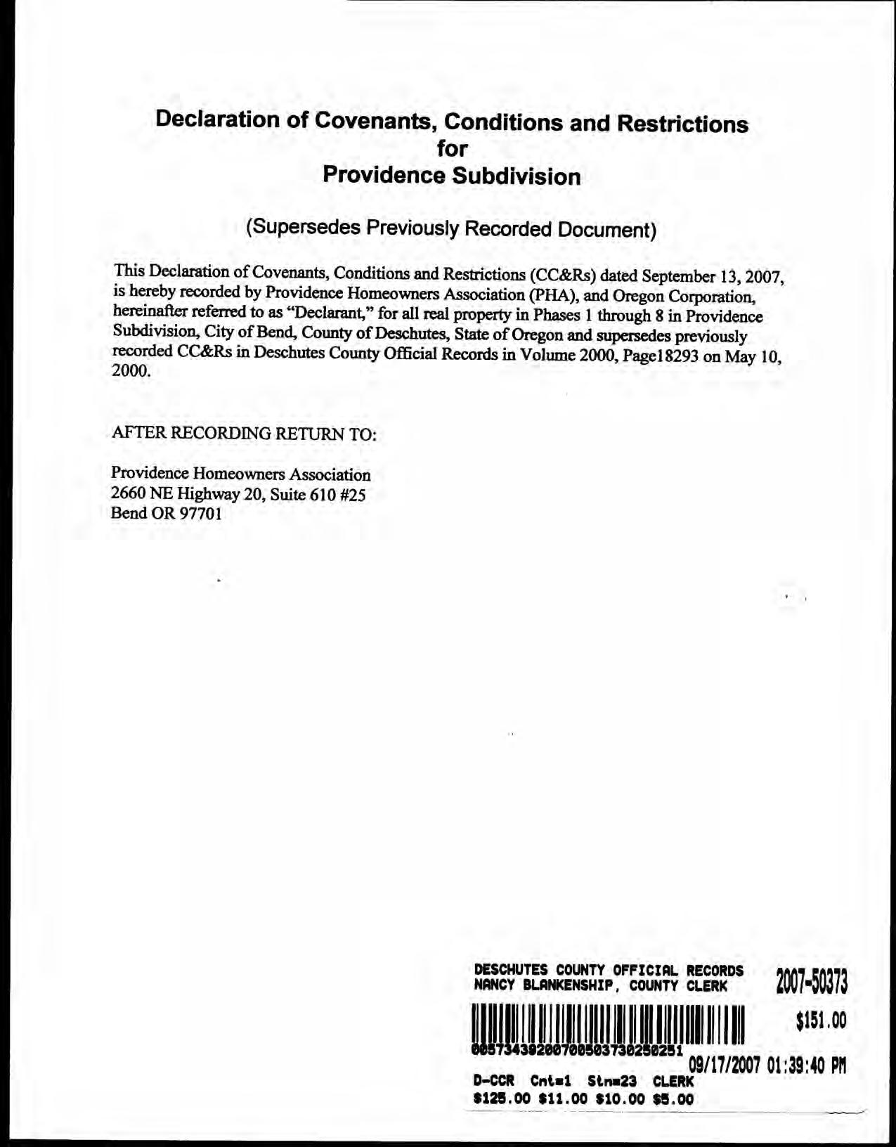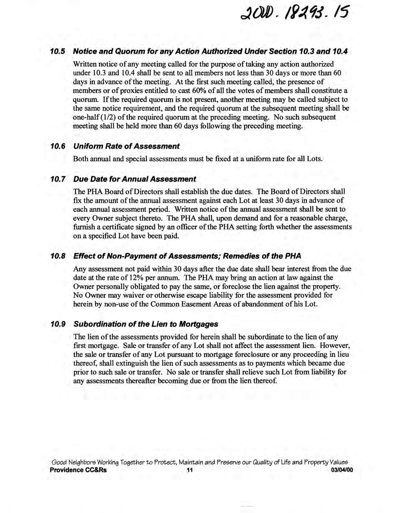 Providence, Phase 8 - CC&R's