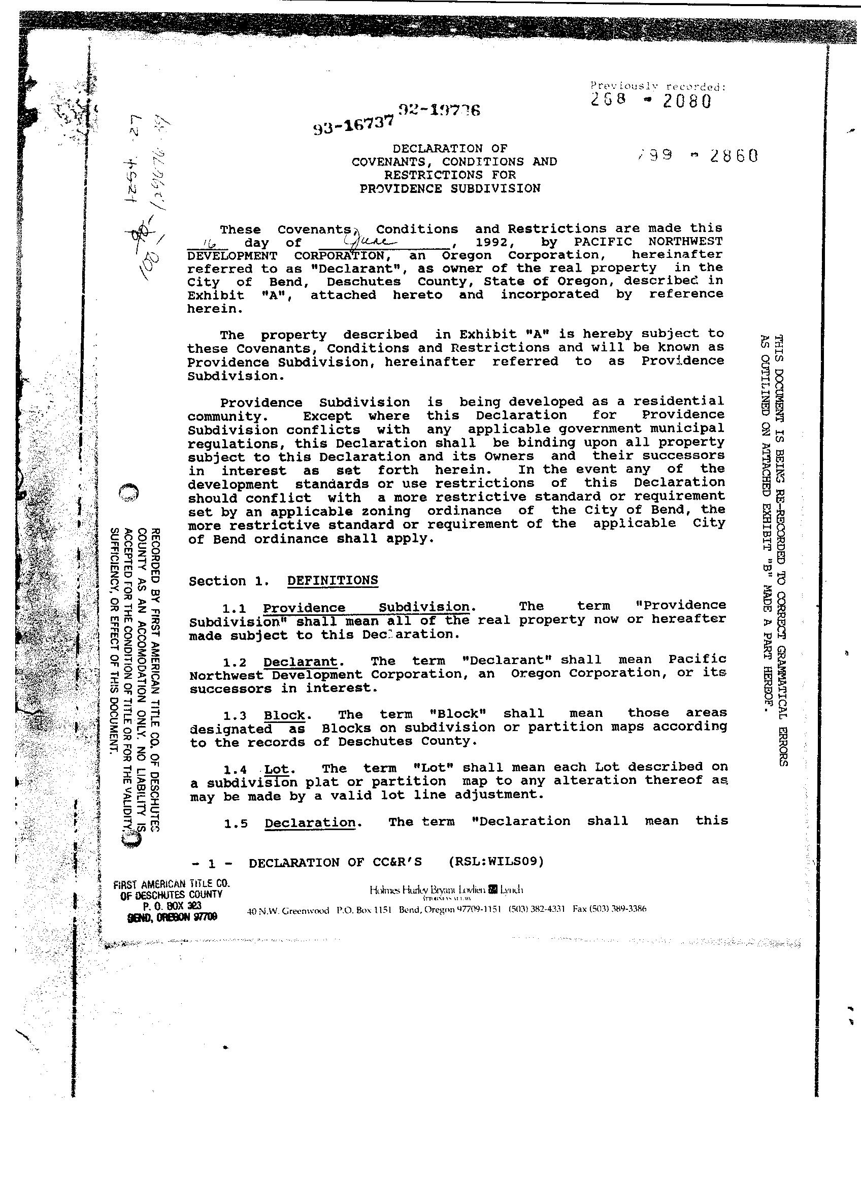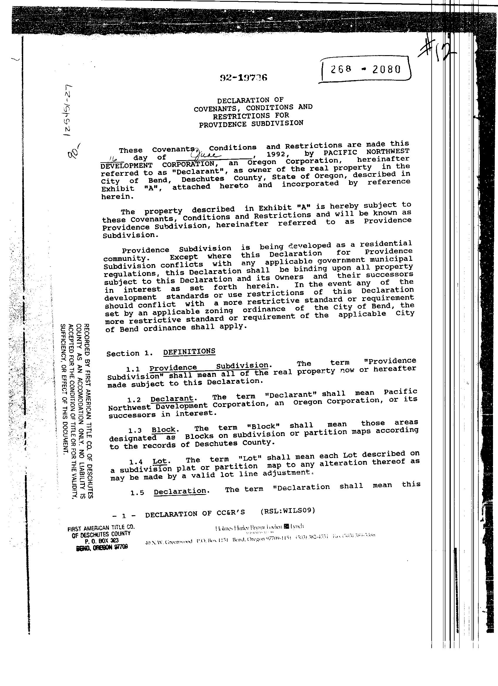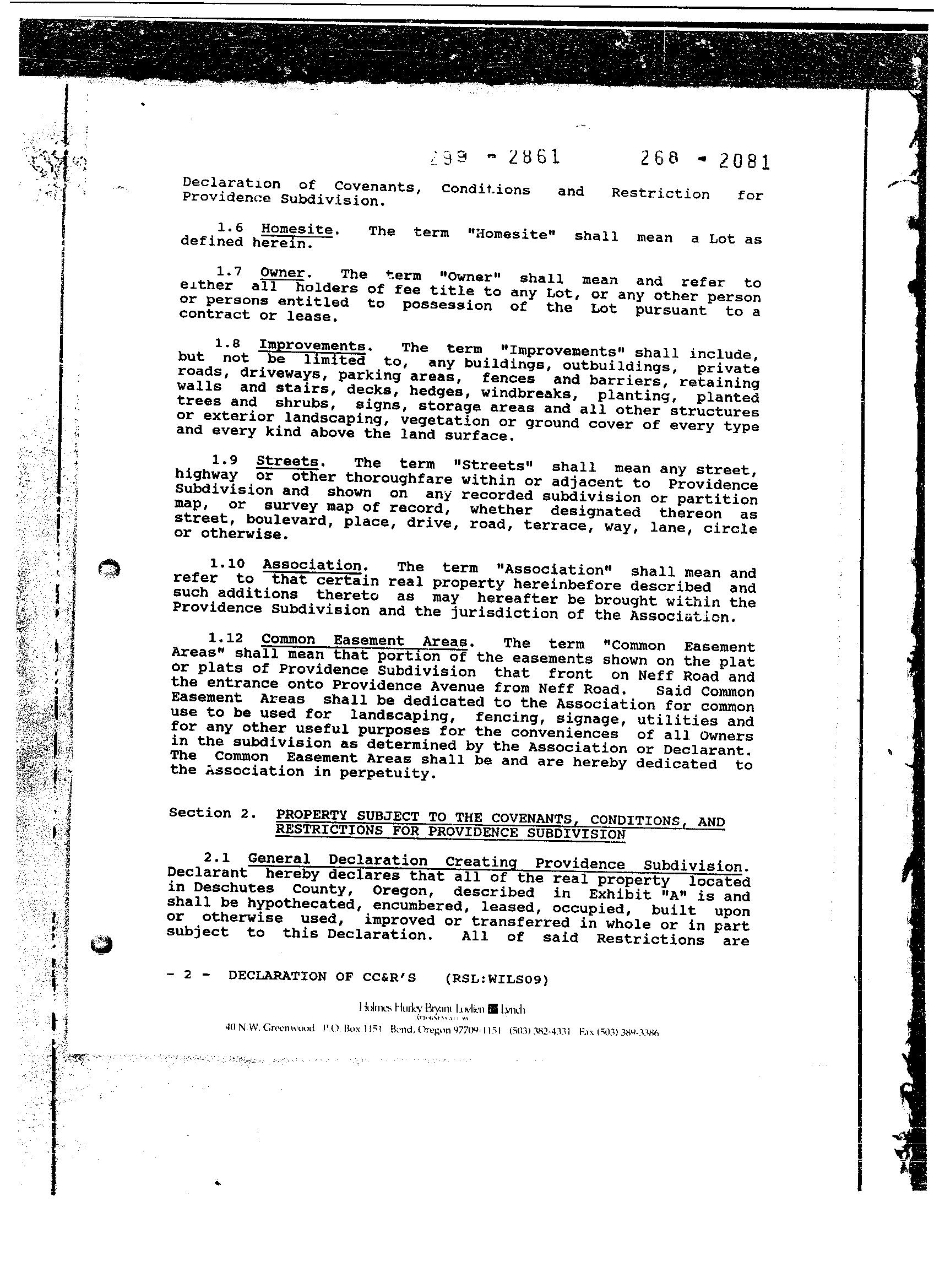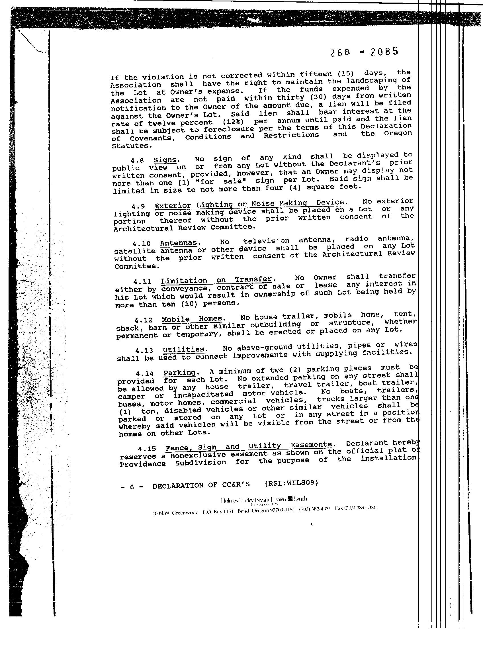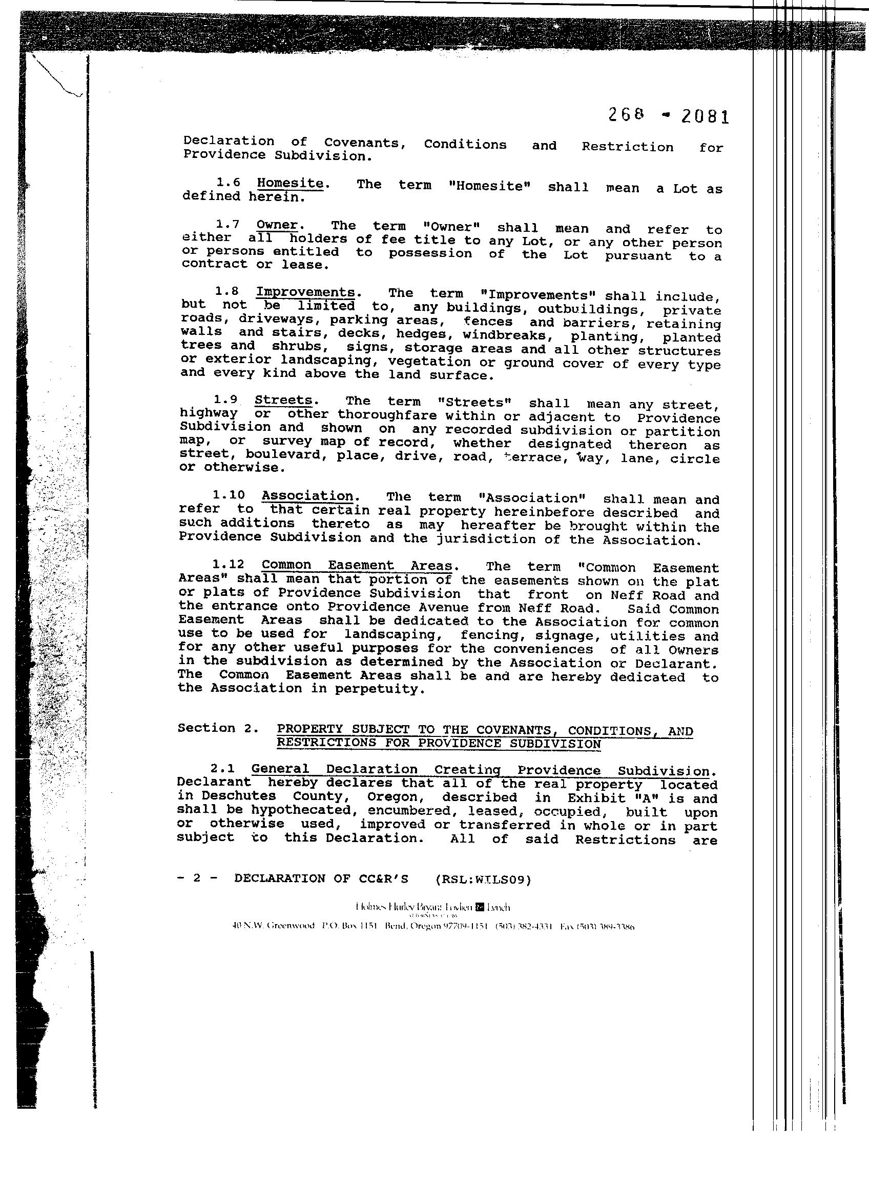 Providence, Phase 8 - CC&R's